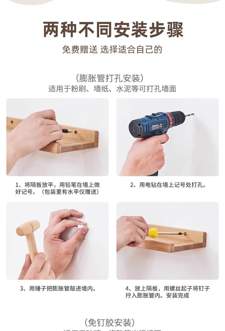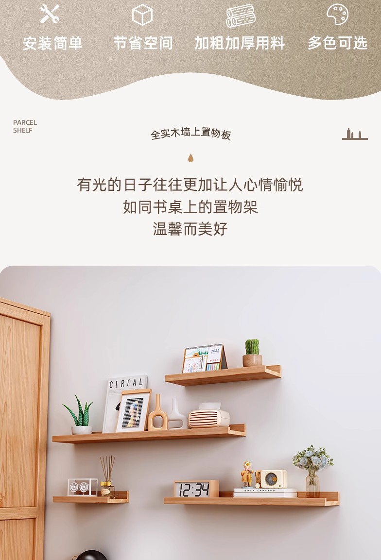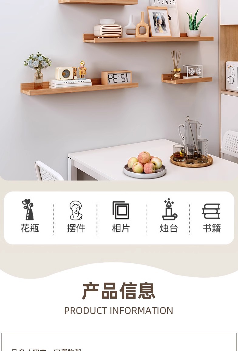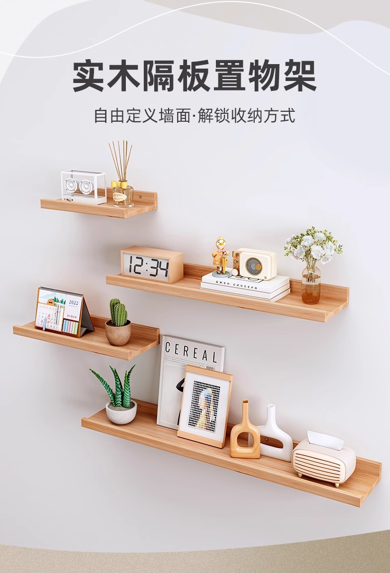 단단한 나무 벽 저장 랙 다이어프램 주방 침실 거실 저장 벽 걸이 벽 책장 나무 선반스토어 가기
