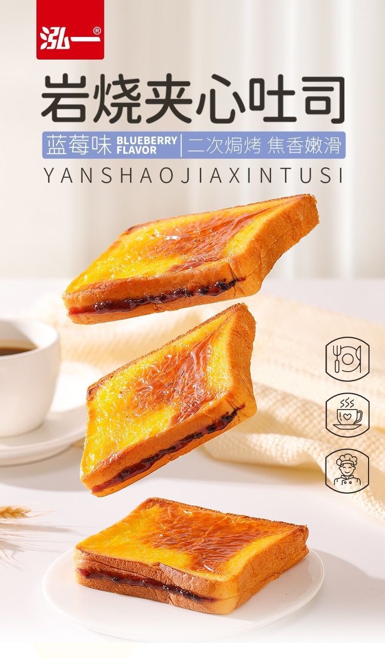 홍이 락 구운 치즈 토스트 빵 통 케이스 아침 식사 영양 양과자 치즈 블루베리 맛 샌드위치 레저 간식