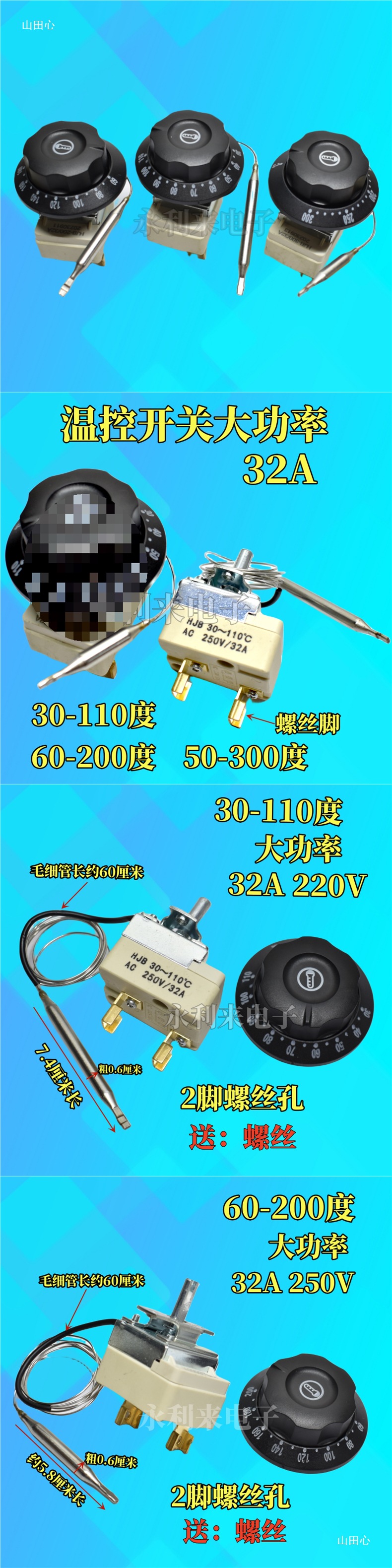 30-110 도 50-300 도 전기 오븐 프라이어 손잡이 온도 조절기 국수 수프 온도 조절 스위치 16A2/32A스토어 가기