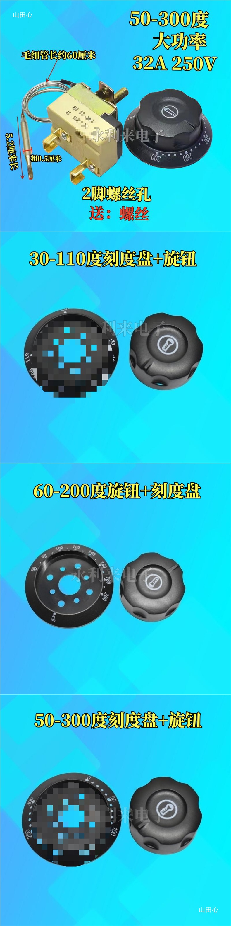 30-110 도 50-300 도 전기 오븐 프라이어 손잡이 온도 조절기 국수 수프 온도 조절 스위치 16A2/32A