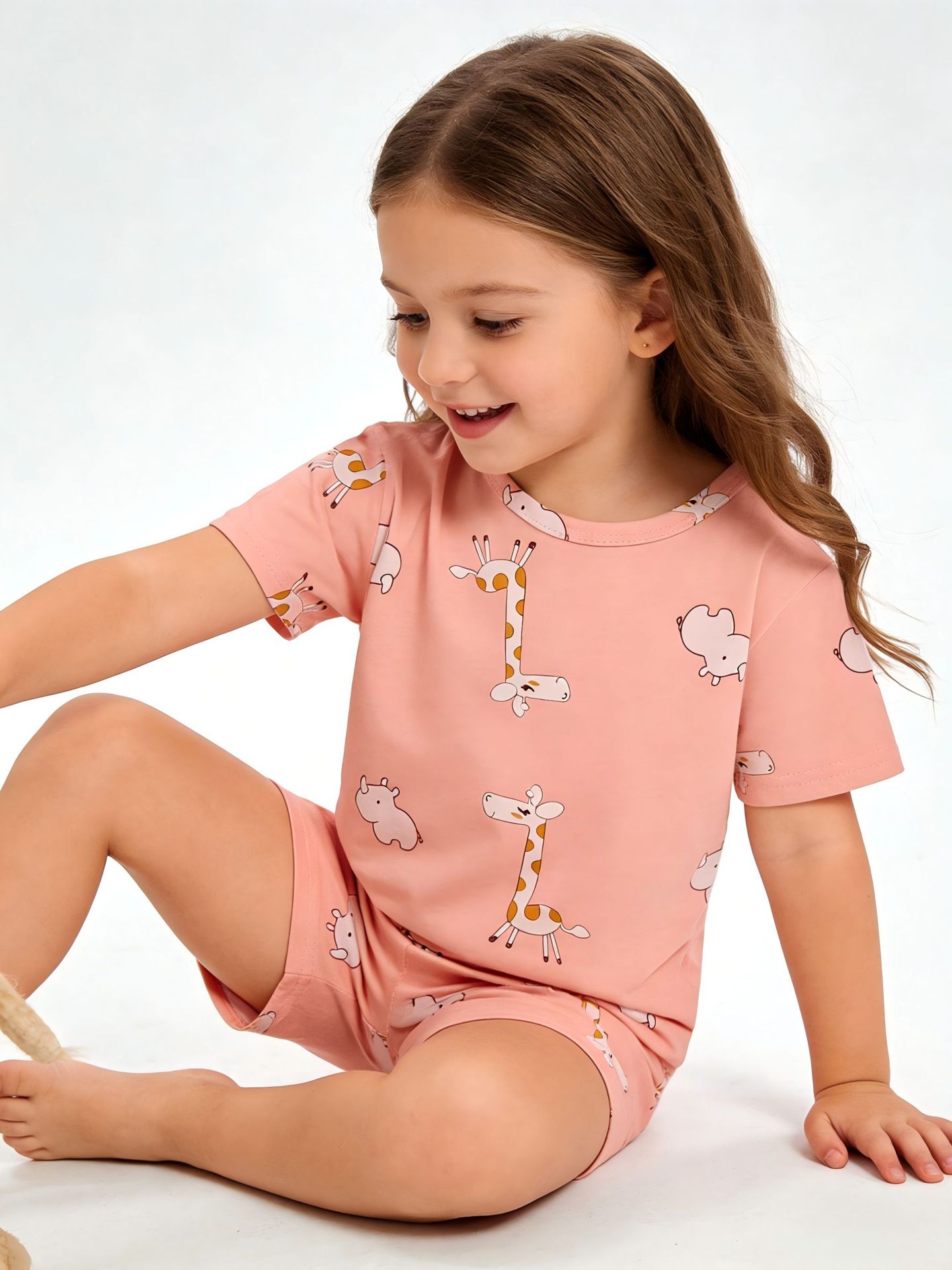 어린이 잠옷 B급 홈웨어 남녀공용 유아용 만화 캐릭터 여름 반팔 반바지 귀여운 속옷 세트