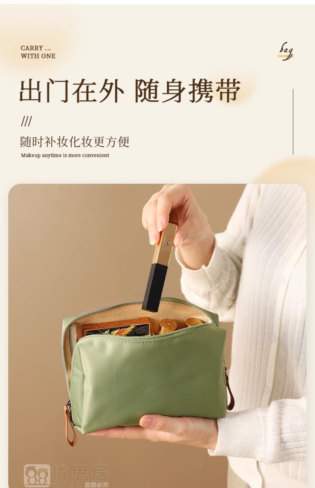 화장품 가방 여성 2024 새로운 휴대용 여행 스몰 사이즈 미니 화장품 립스틱 보관 가방 방수 천스토어 가기