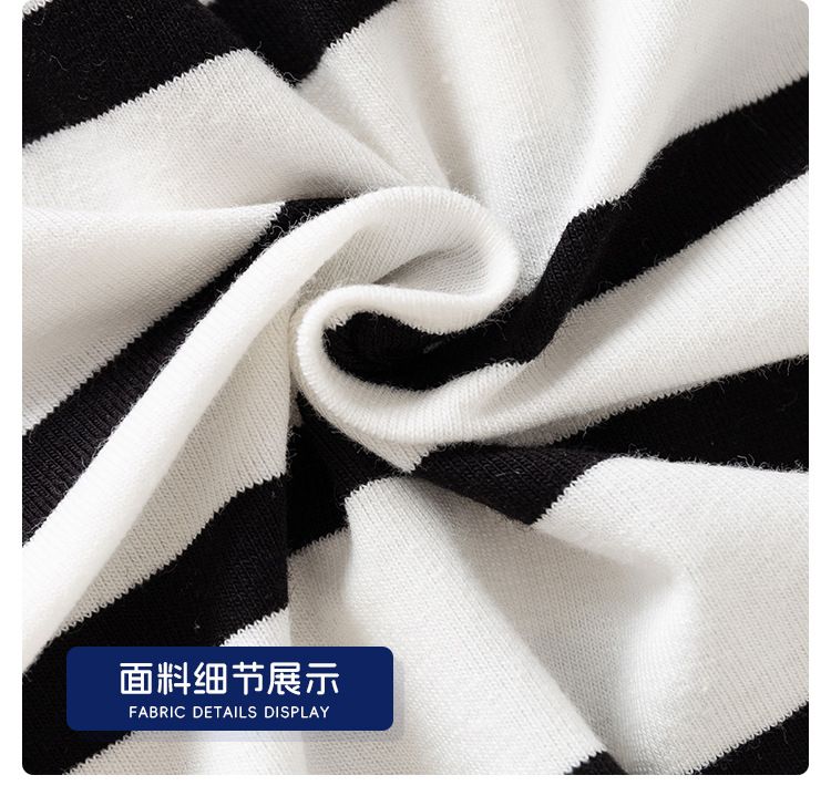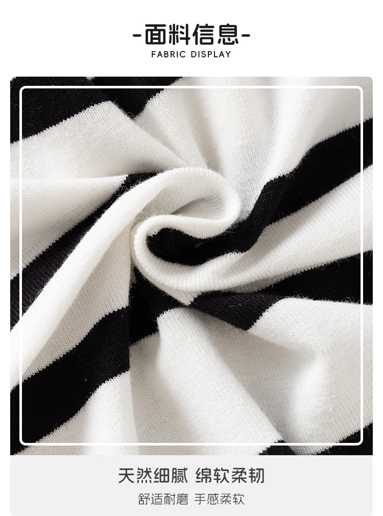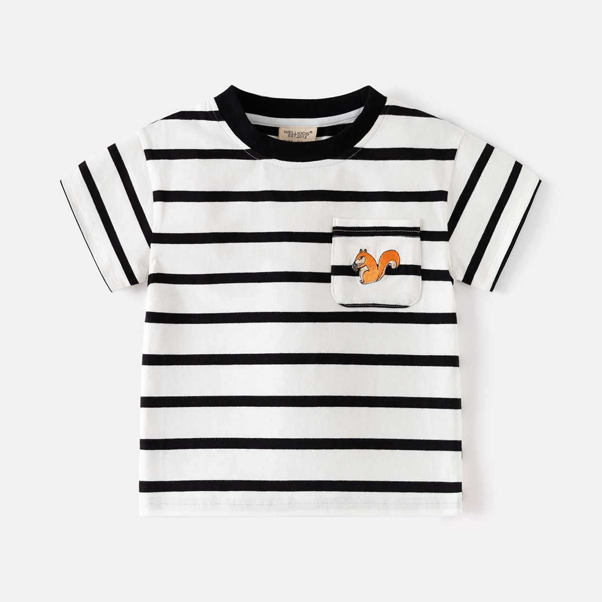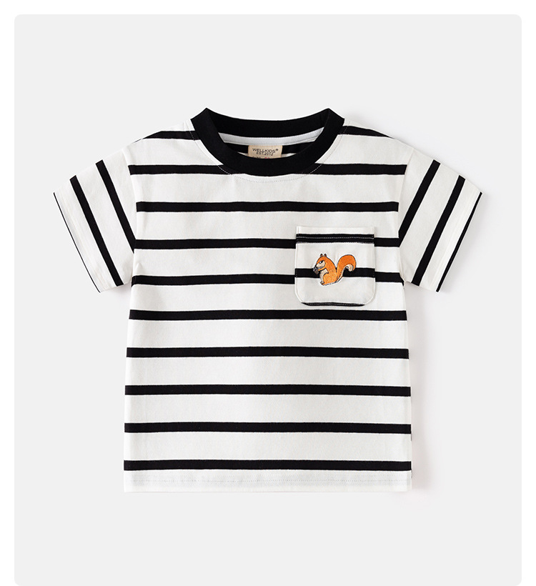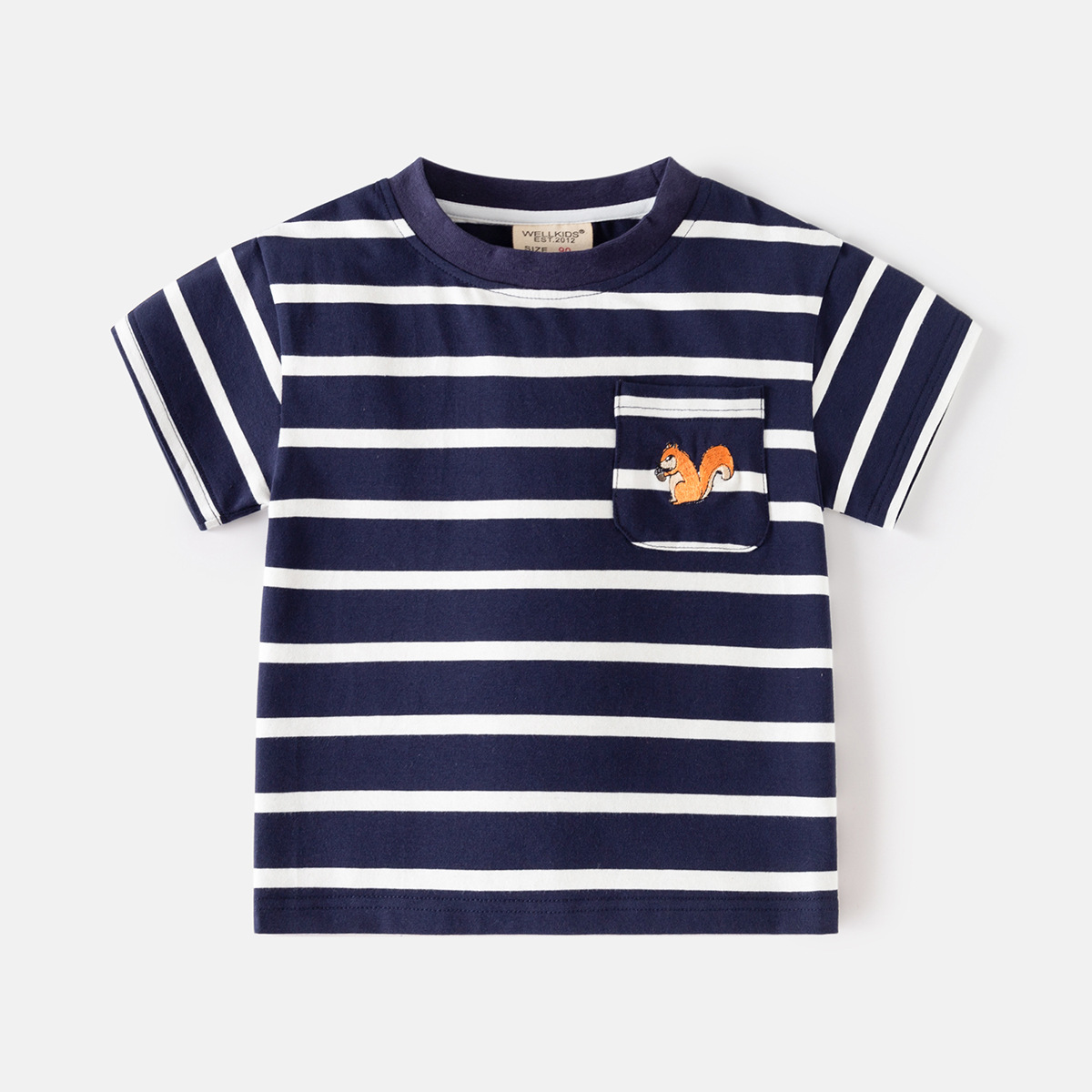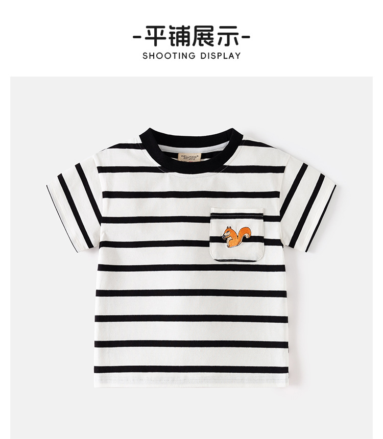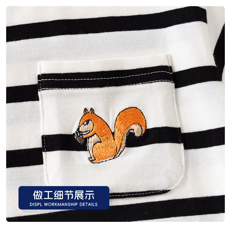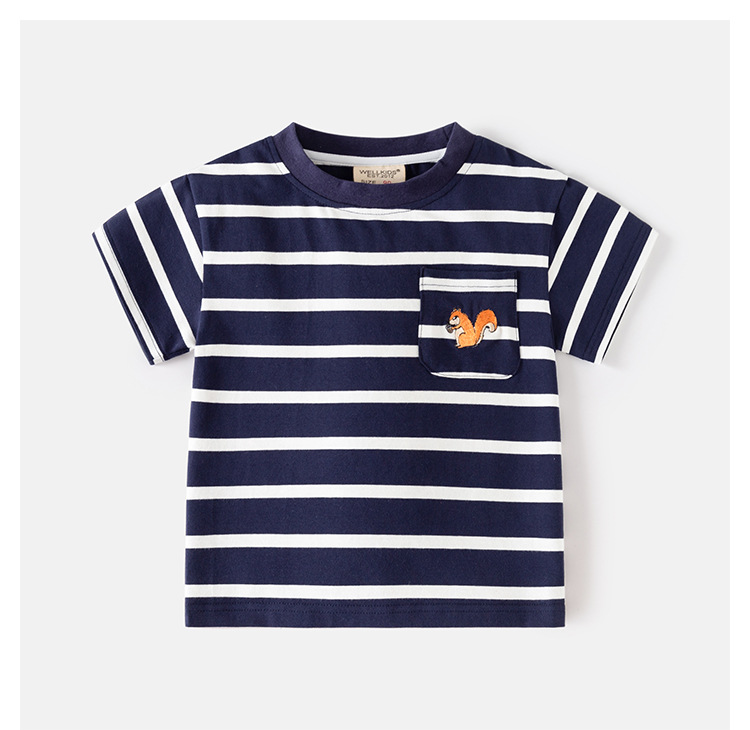 • 남색 바탕에 흰색 줄무늬 자수 다람쥐 반팔 티셔츠