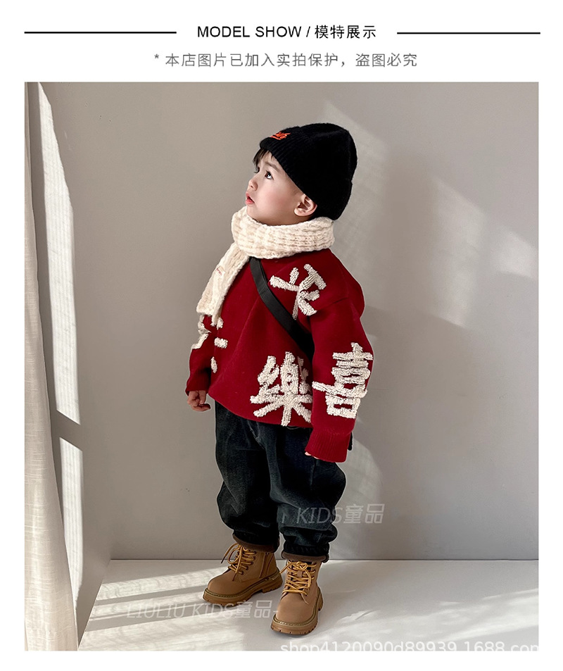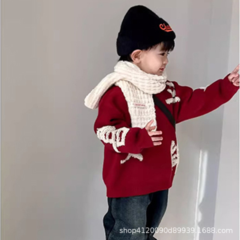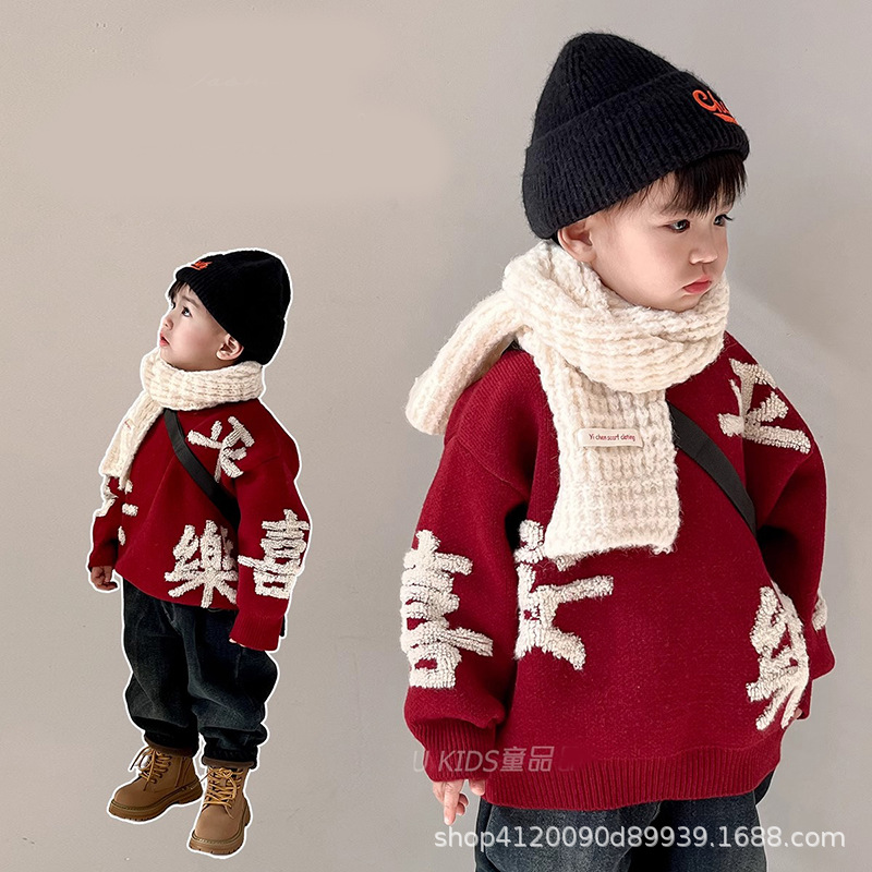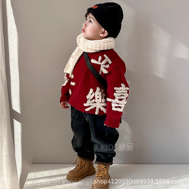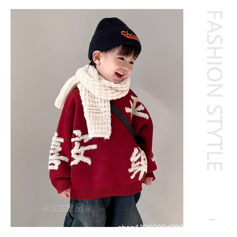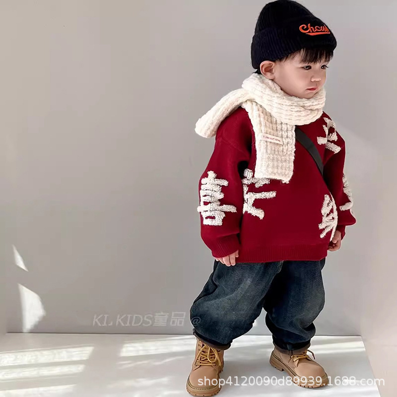 소년 소녀를위한 도매 어린이 스웨터 가을과 겨울 두꺼운 스웨터 뱀 겨울 의류의 붉은 축제 아기 년
