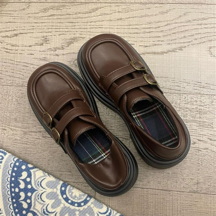 블랙 로퍼 여성 2024 새로운 가을과 겨울 두꺼운 밑창 기모 메리 제인 신발 통근 영국 스타일 가죽 신발스토어 가기
