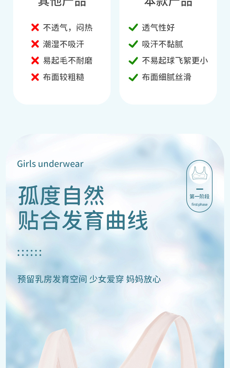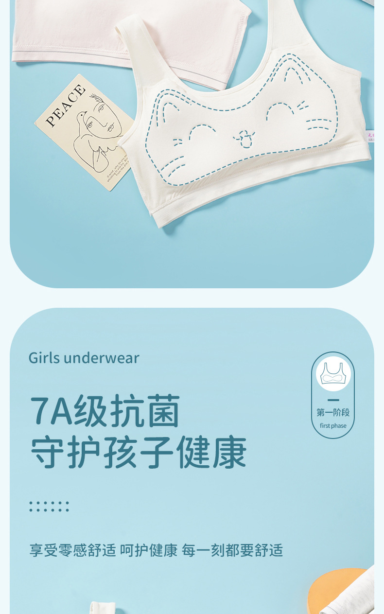 원활한 소녀 단계 I 학생 개발 고정 컵 클래스 7A 항균 알몸 피부 친절한 편안한 통기성 브래지어스토어 가기