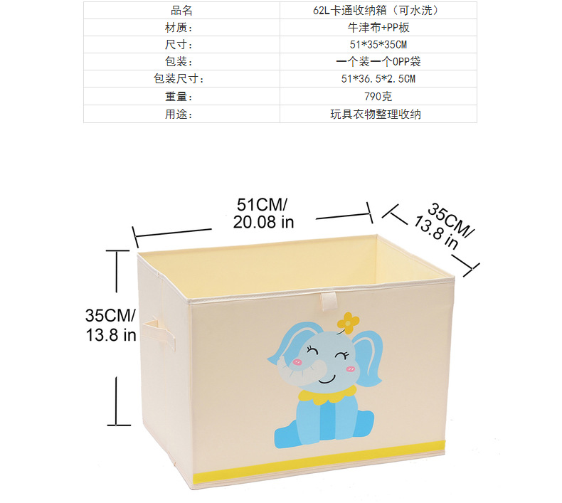 옥스포드 천 62 L 대용량 어린이 장난감 보관 상자 홈 의류 마감 보관 상자 세척 가능한 만화