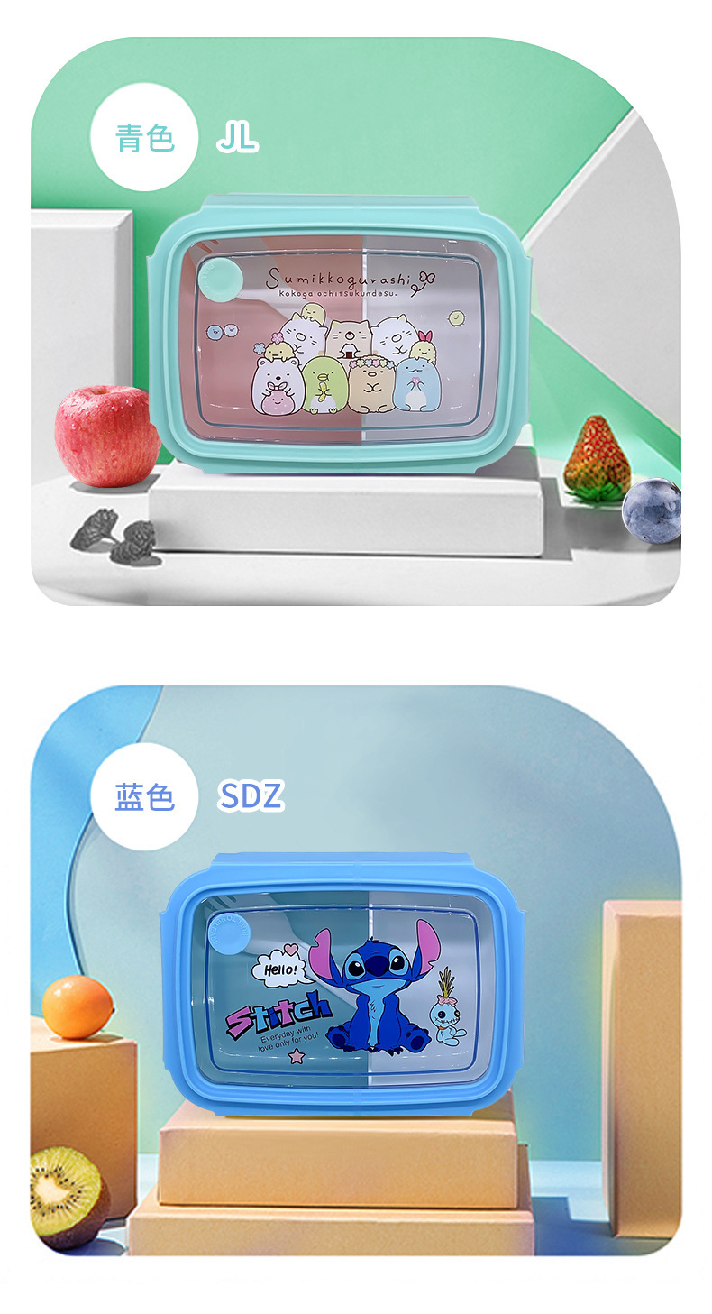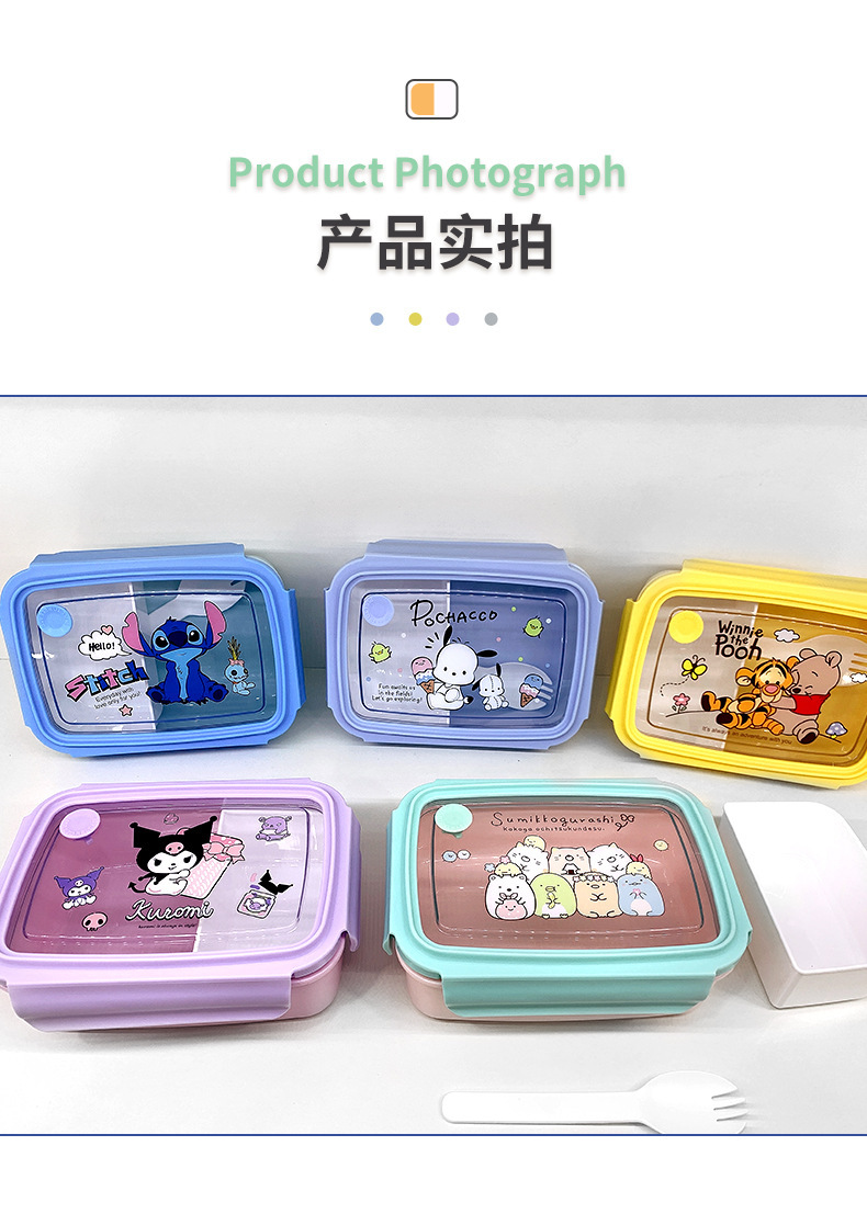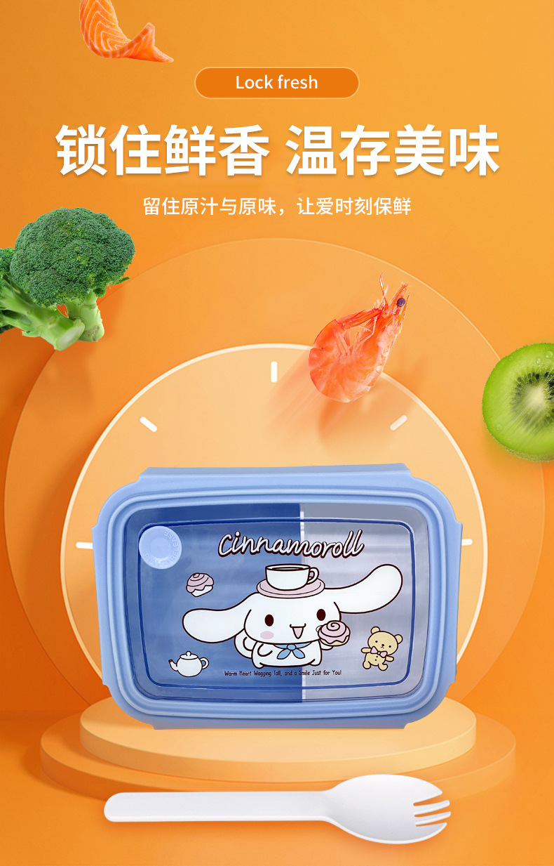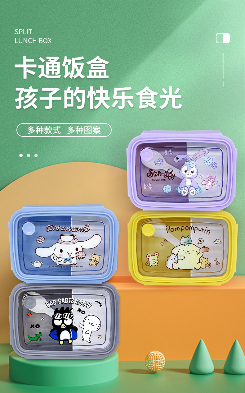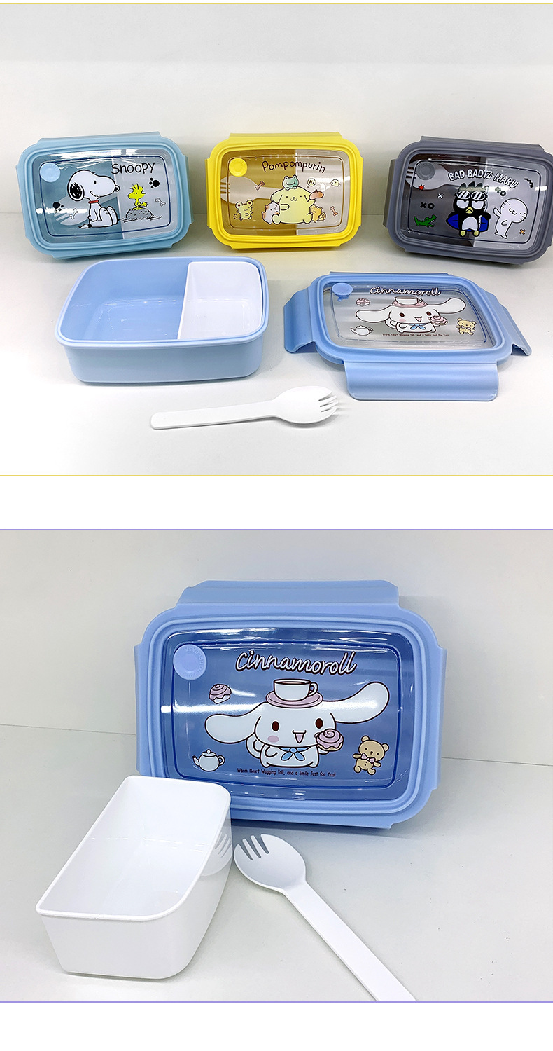 만화 Kulomi 어린이 플라스틱 도시락 전자 레인지 난방 도시락 직사각형 과일 상자 여성용 식기스토어 가기
