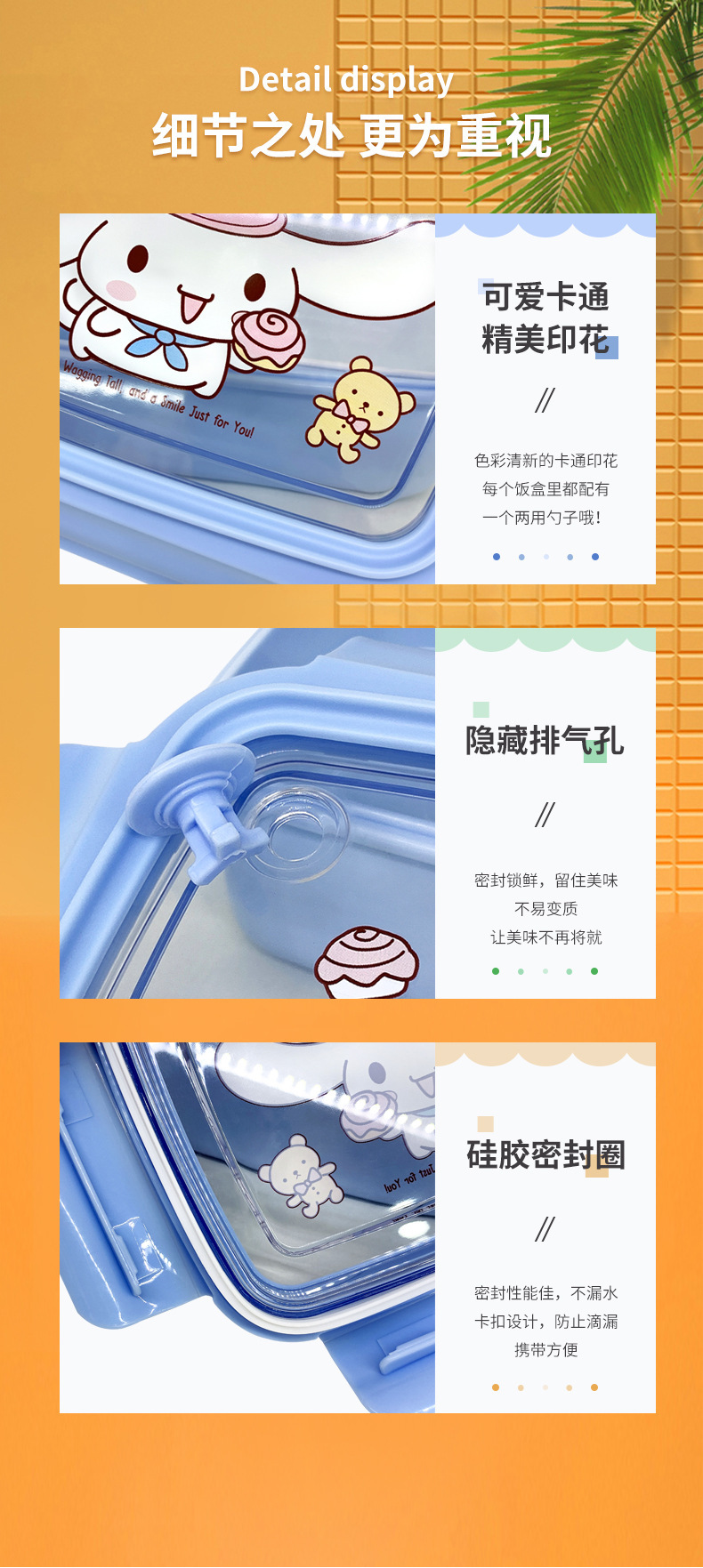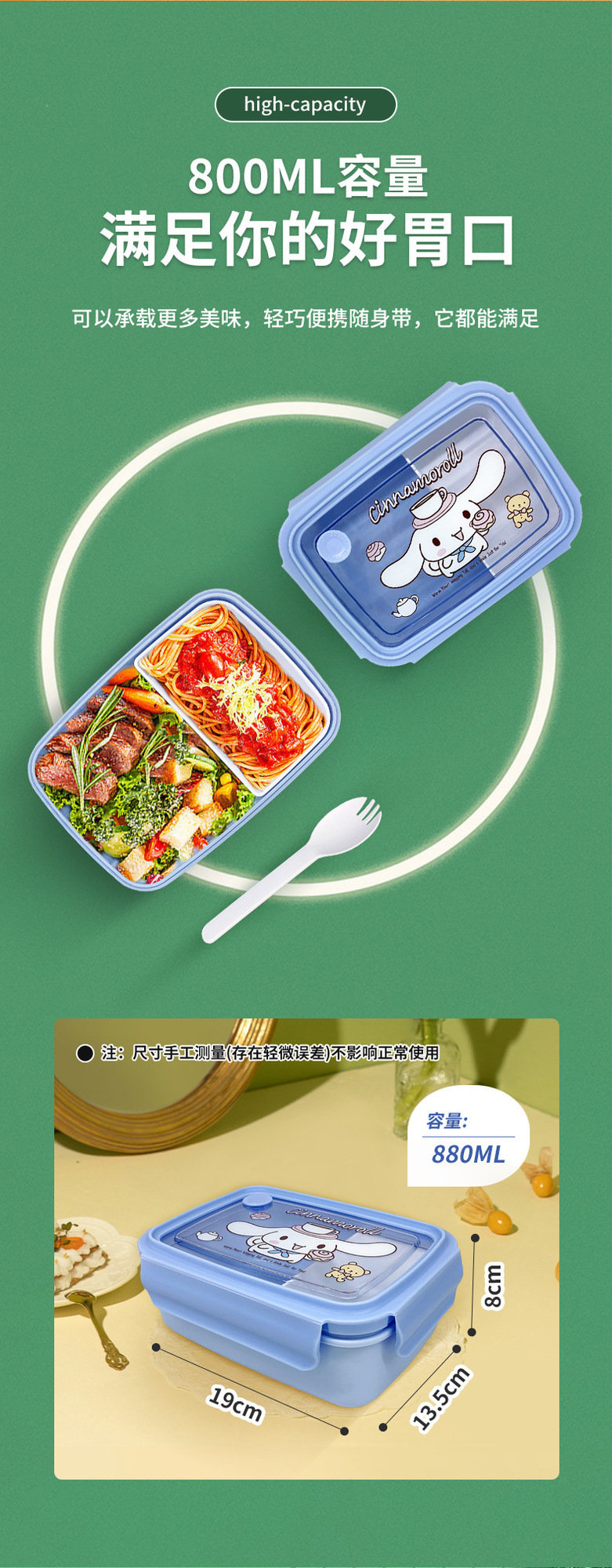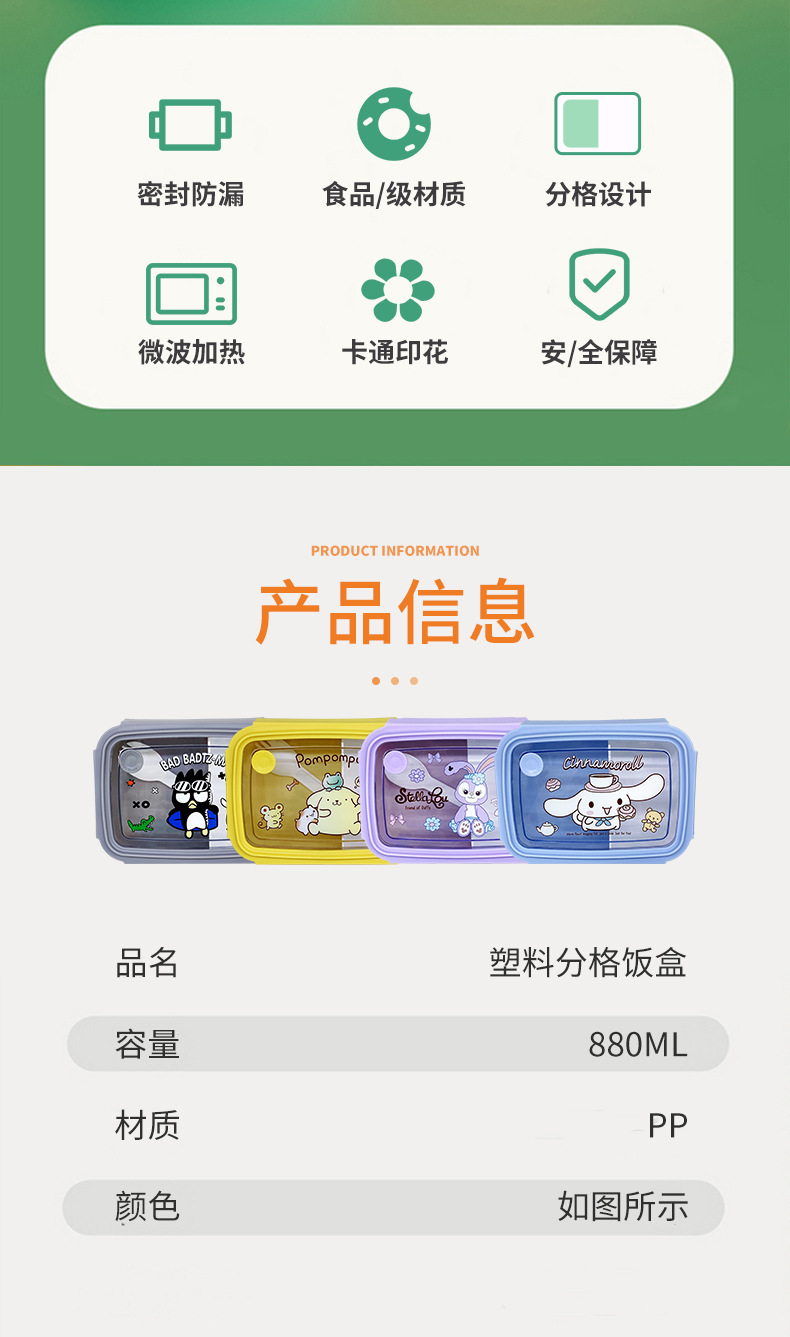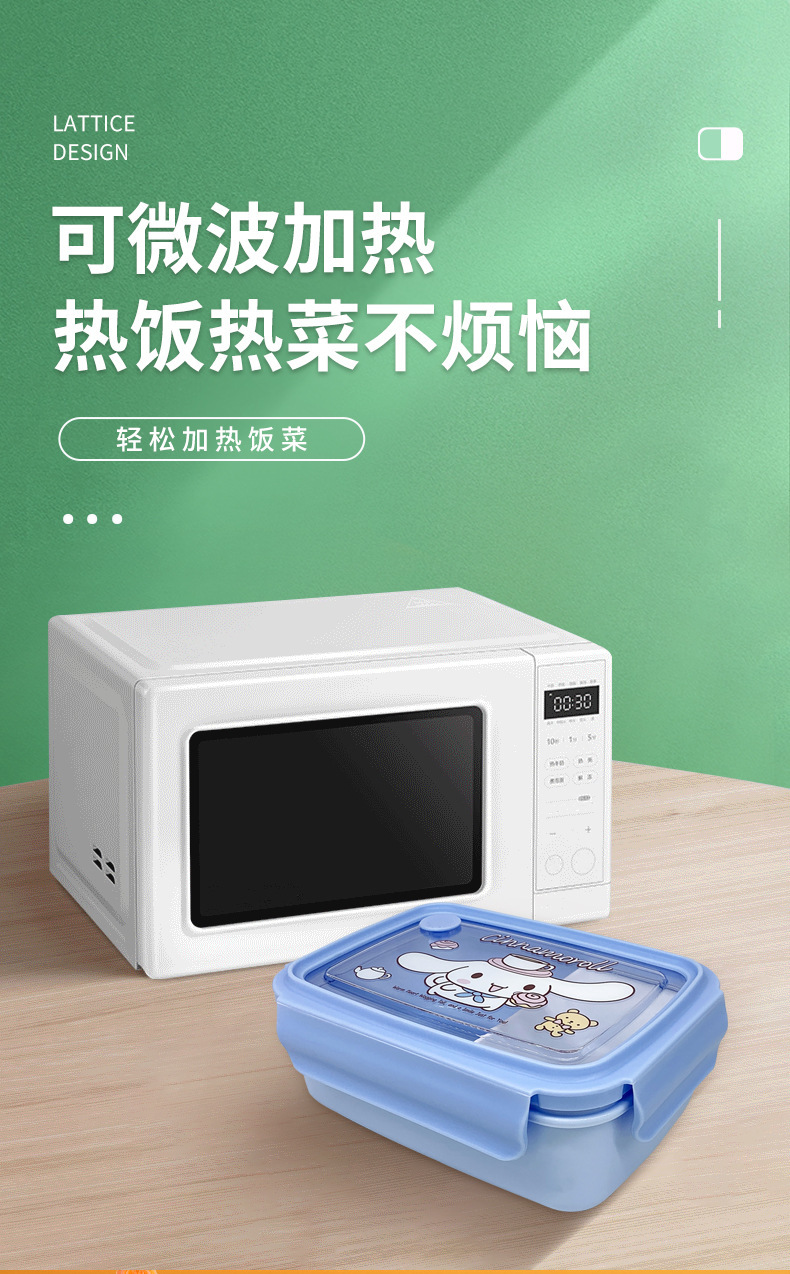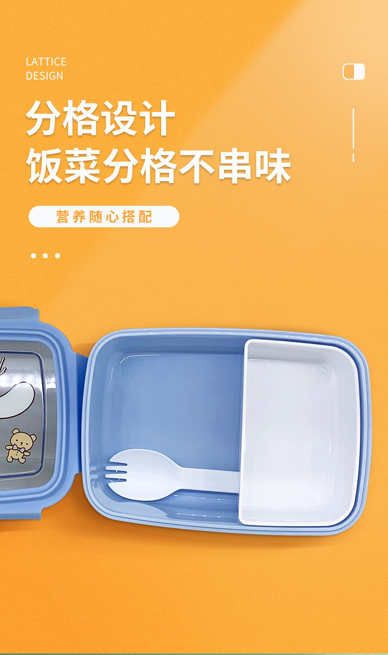 만화 Kulomi 어린이 플라스틱 도시락 전자 레인지 난방 도시락 직사각형 과일 상자 여성용 식기스토어 가기