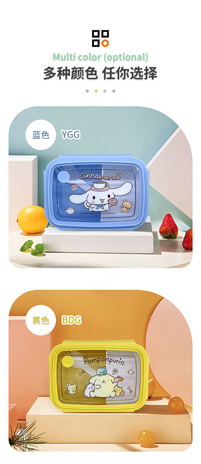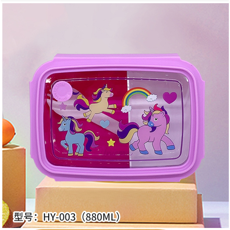만화 Kulomi 어린이 플라스틱 도시락 전자 레인지 난방 도시락 직사각형 과일 상자 여성용 식기