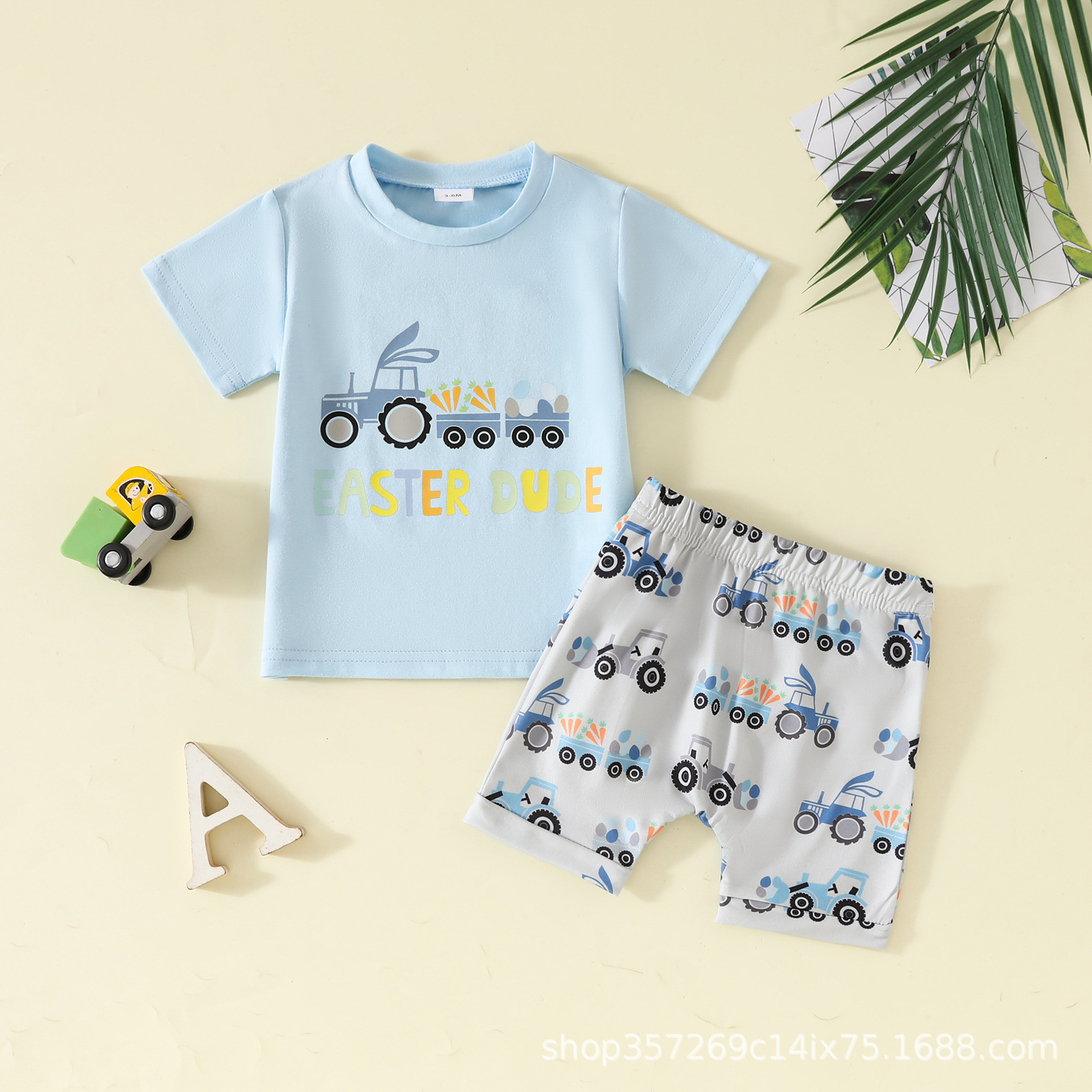 아기 소년의 어린이 착용 유럽과 미국 인쇄 풀오버 아마존 어린이 여름 패션 둥근 목 단색 짧은 소매 반바지스토어 가기