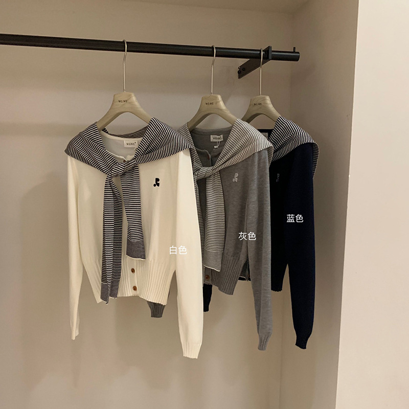 세나 한 리 한치 이른 가을 새로운 니트 카디건 재킷 여성 줄무늬 목도리 외부 재킷