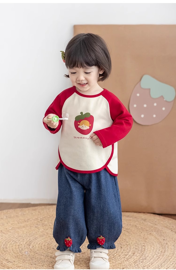 [스트로베리걸] 유아용 2026 봄 배색 편안한 베이스 레이어 부드럽고 피부 친화적인 긴팔 상의