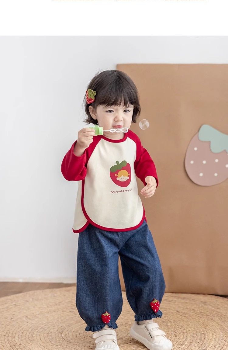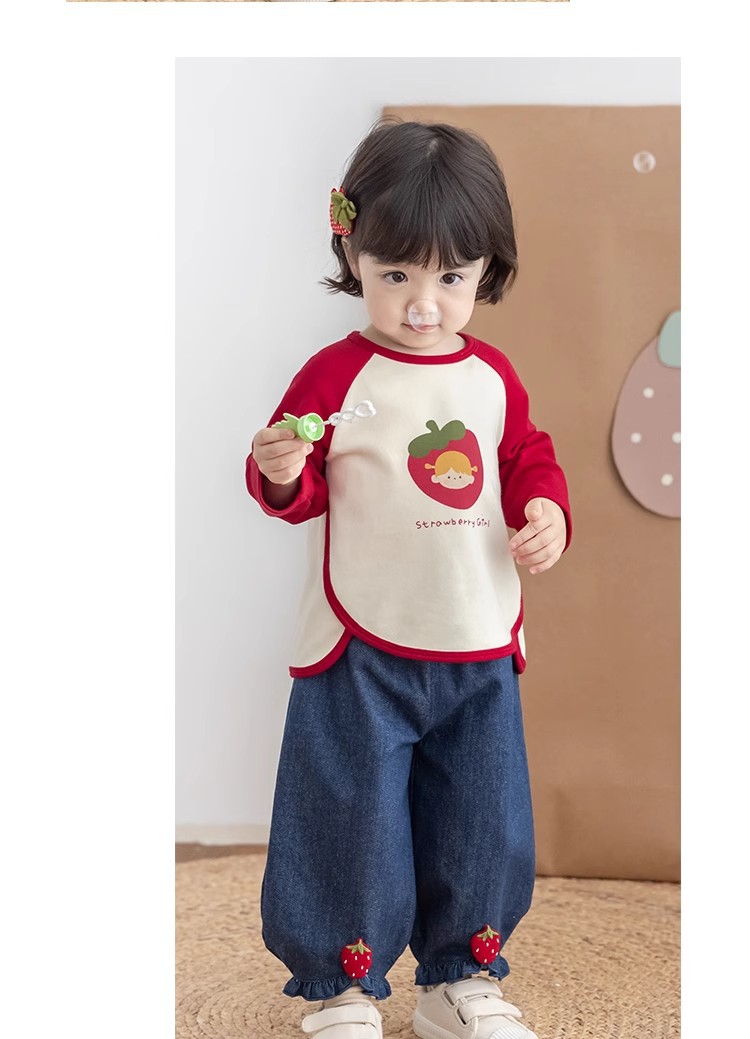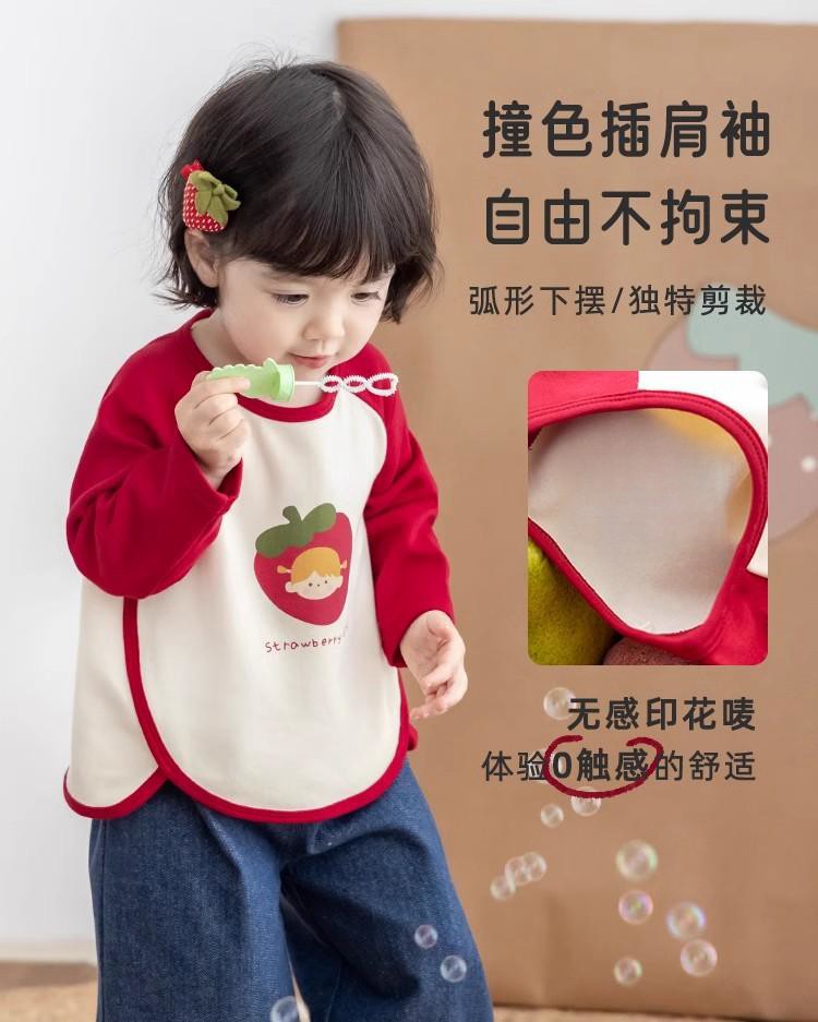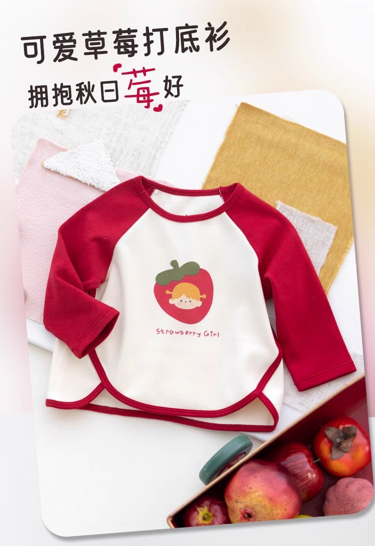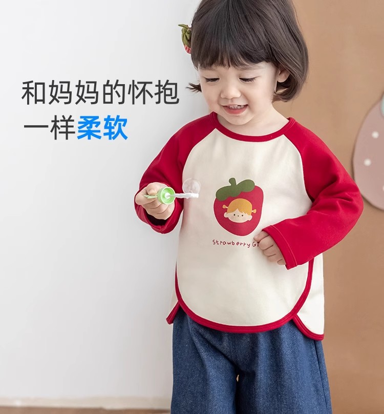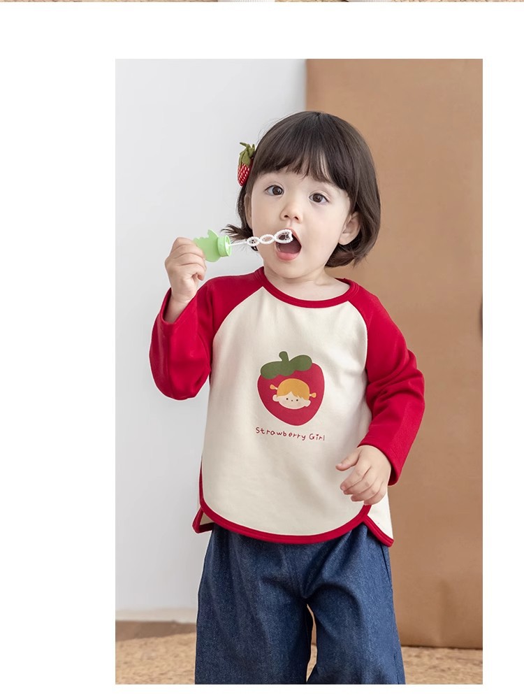 [스트로베리걸] 유아용 2026 봄 배색 편안한 베이스 레이어 부드럽고 피부 친화적인 긴팔 상의스토어 가기