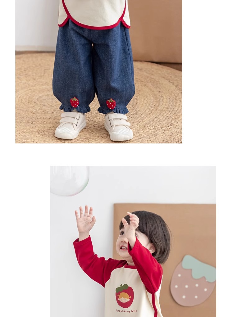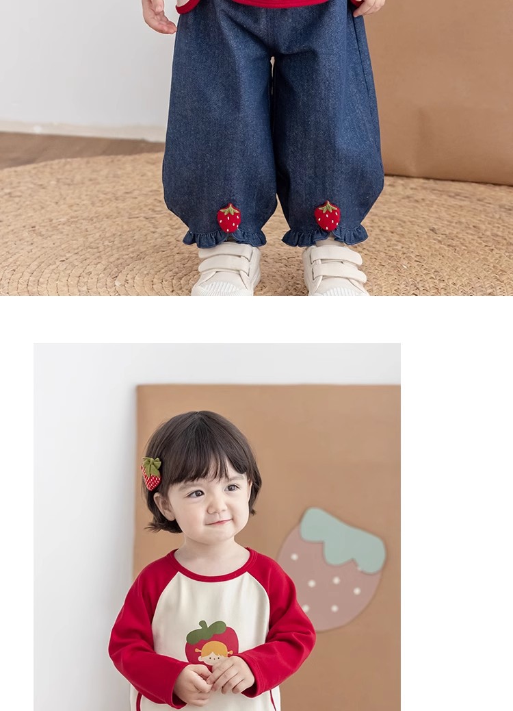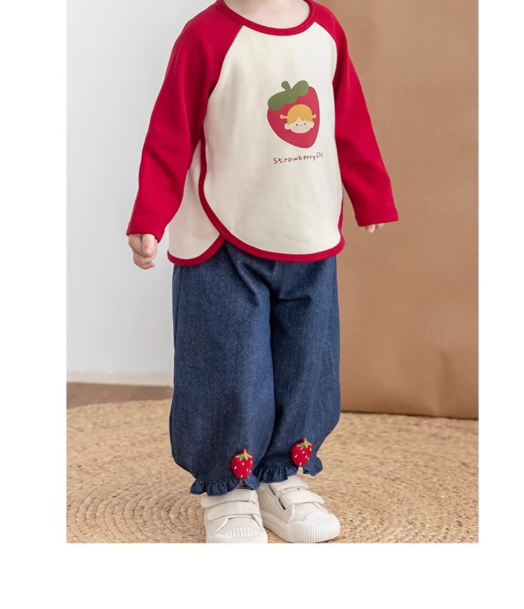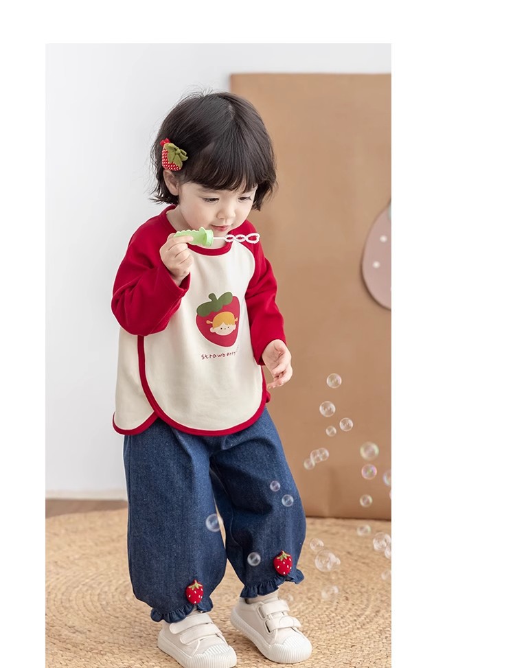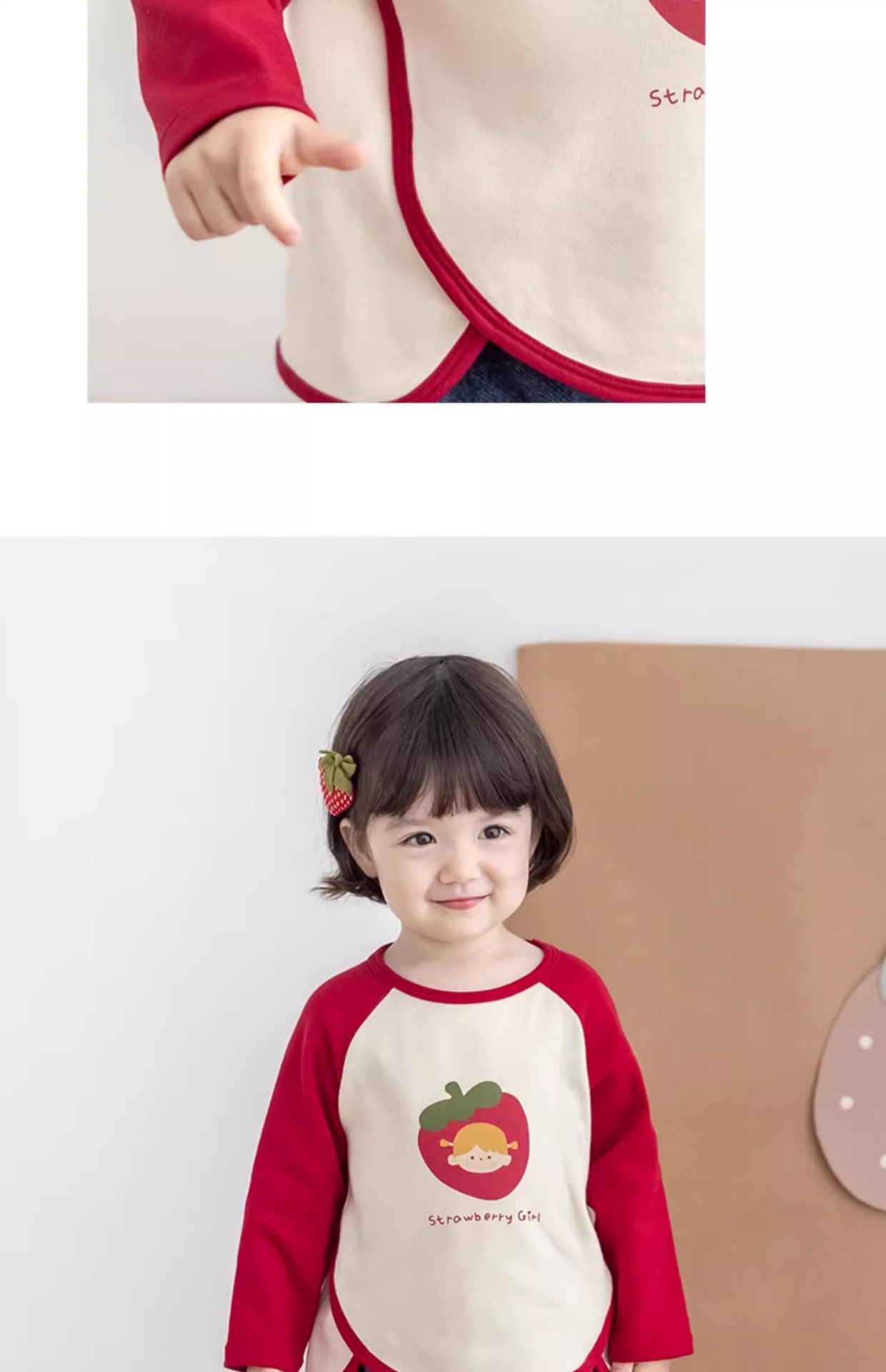 [스트로베리걸] 유아용 2026 봄 배색 편안한 베이스 레이어 부드럽고 피부 친화적인 긴팔 상의스토어 가기