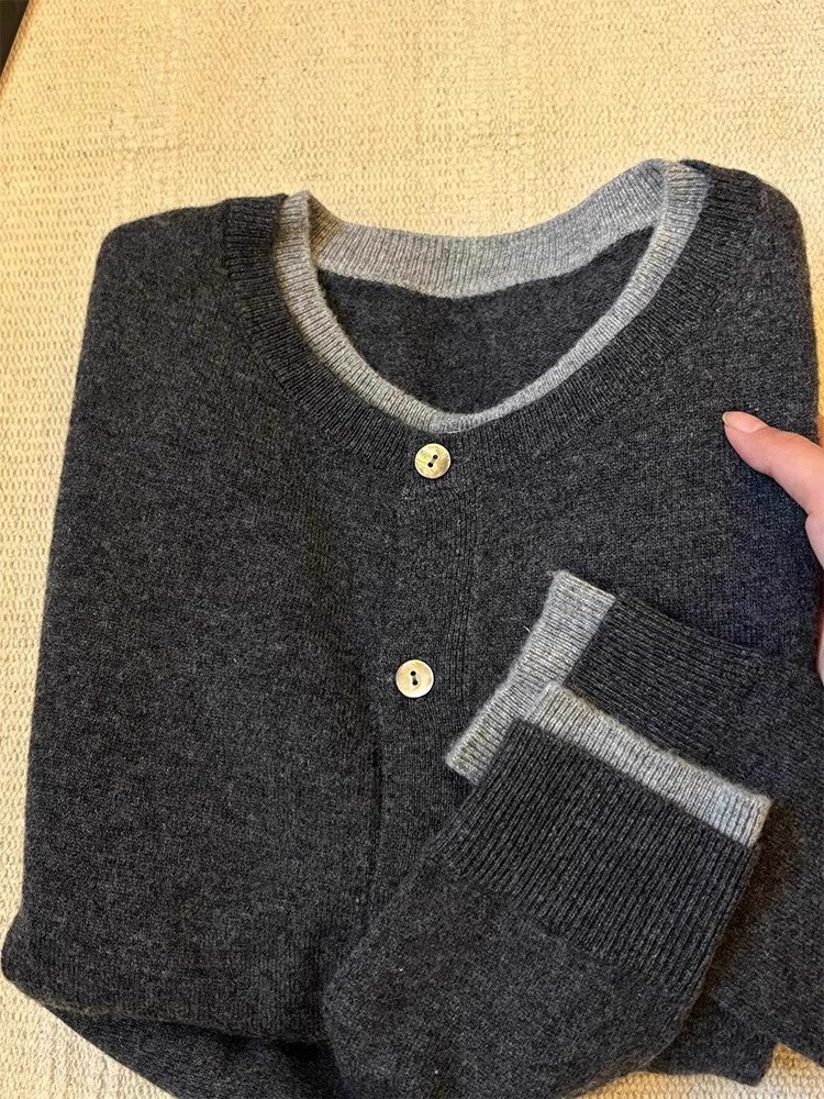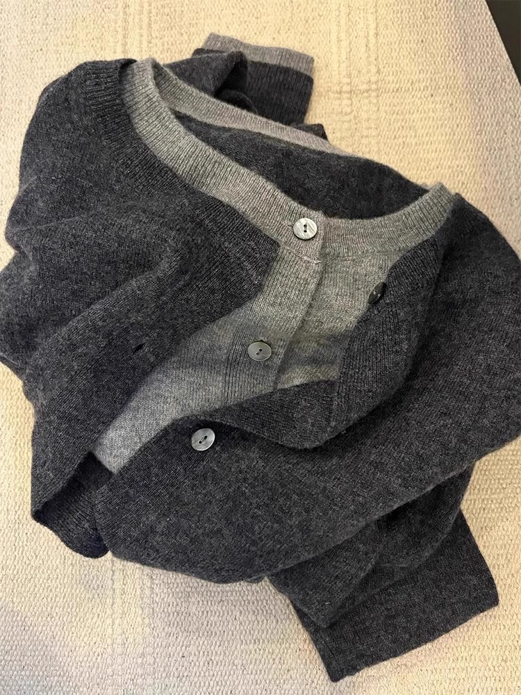 이른 가을 뉴 에이지 감소 문학 팬 스태킹 캐시미어 스웨터 재킷 니트 카디건 여성 대비 가짜 투피스 탑스토어 가기