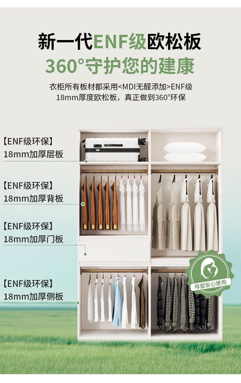 ENF 클래스 핸들이 없는 솔리드 우드 옷장 홈 침실 새로운 스타일 탑 투 탑 세그먼트 간단한 현대 대형 옷장스토어 가기