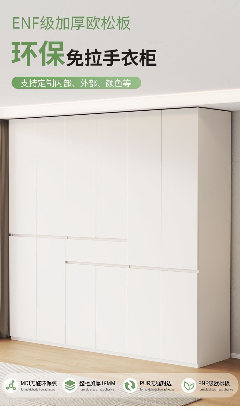 ENF 클래스 핸들이 없는 솔리드 우드 옷장 홈 침실 새로운 스타일 탑 투 탑 세그먼트 간단한 현대 대형 옷장