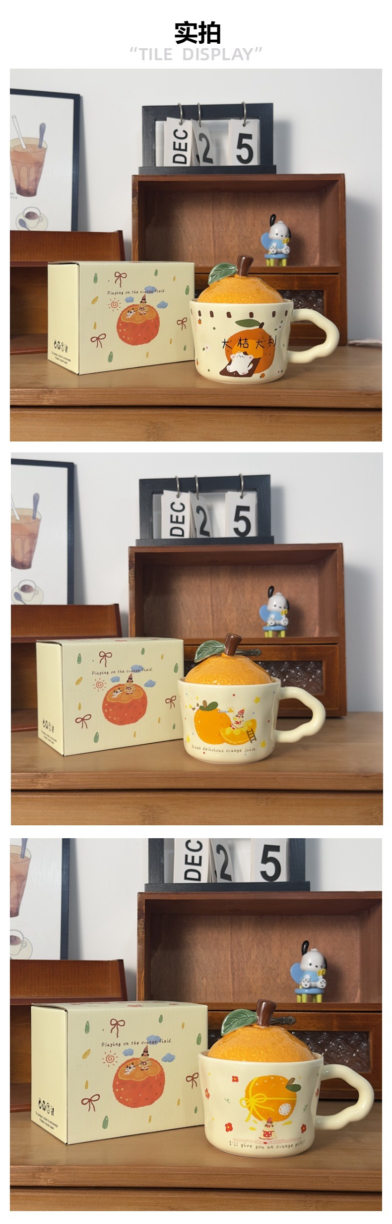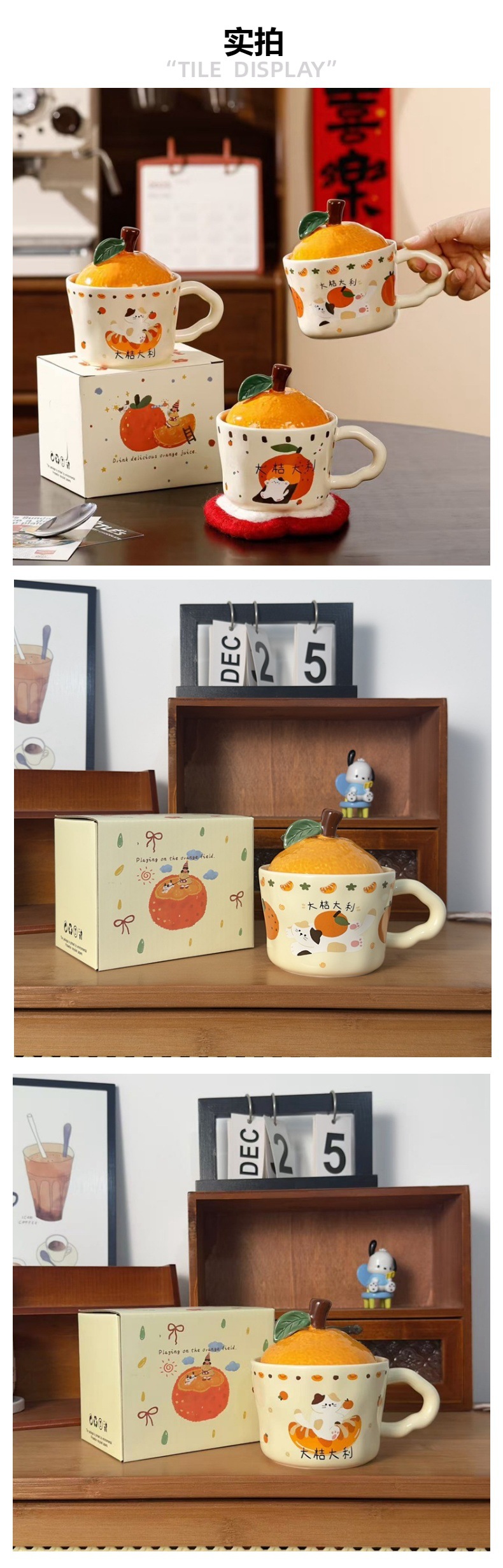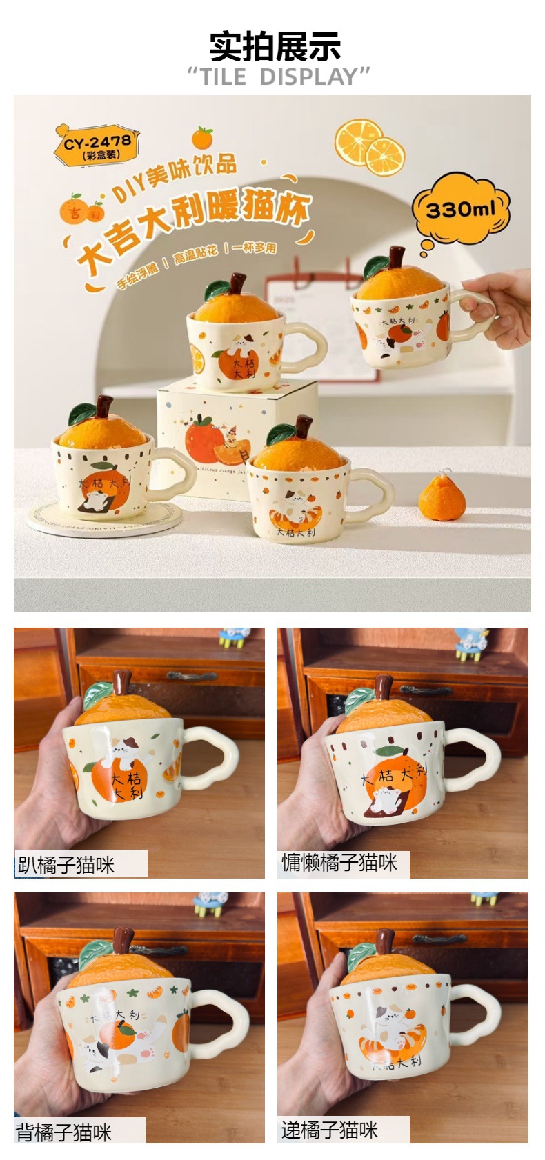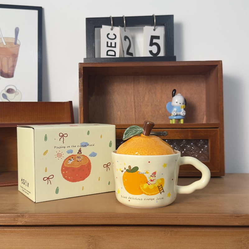큰 Gittali 오렌지 세라믹 컵 뚜껑 귀여운 고양이 찻잔 새해 선물 커피 컵 사무실 물 컵스토어 가기
