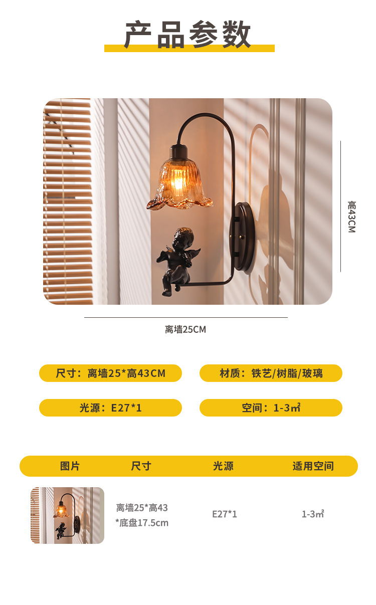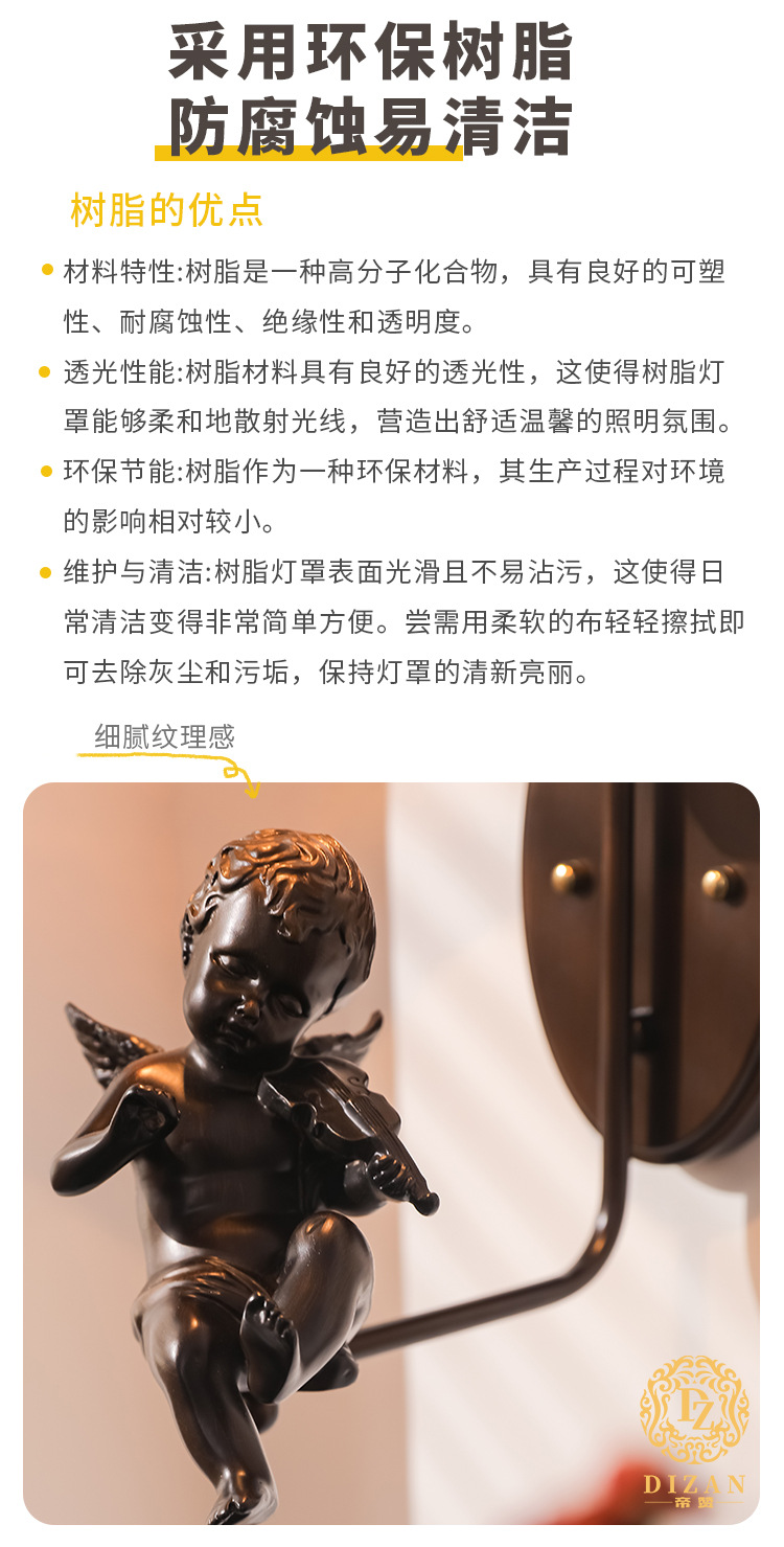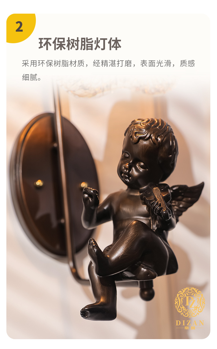 골동품 프랑스 분위기 작은 천사 벽 램프 복고풍 미국 방 침대 옆 침실 램프 아트 계단 램프