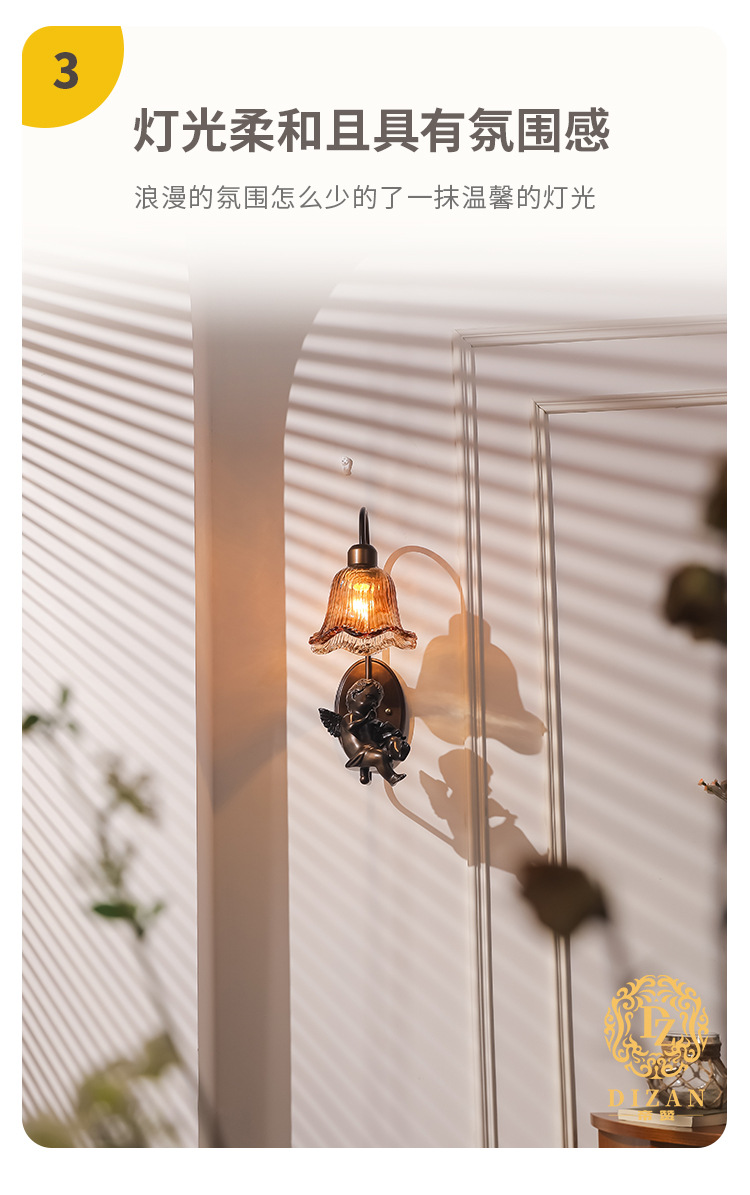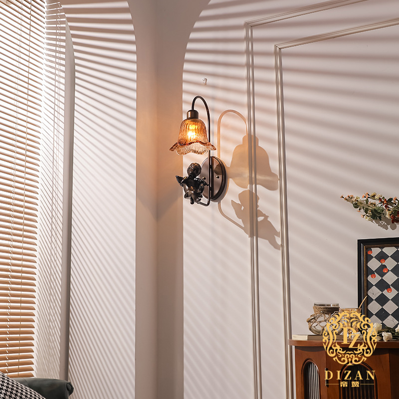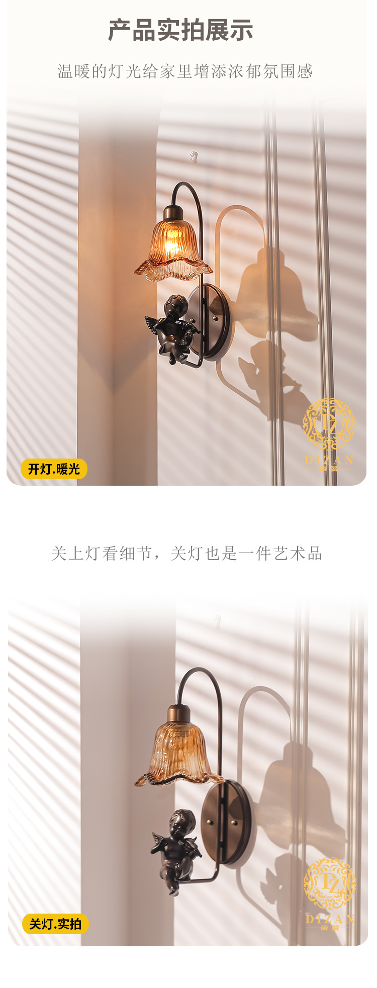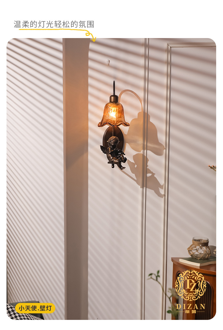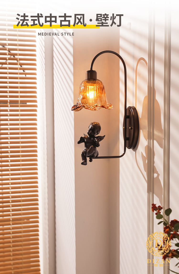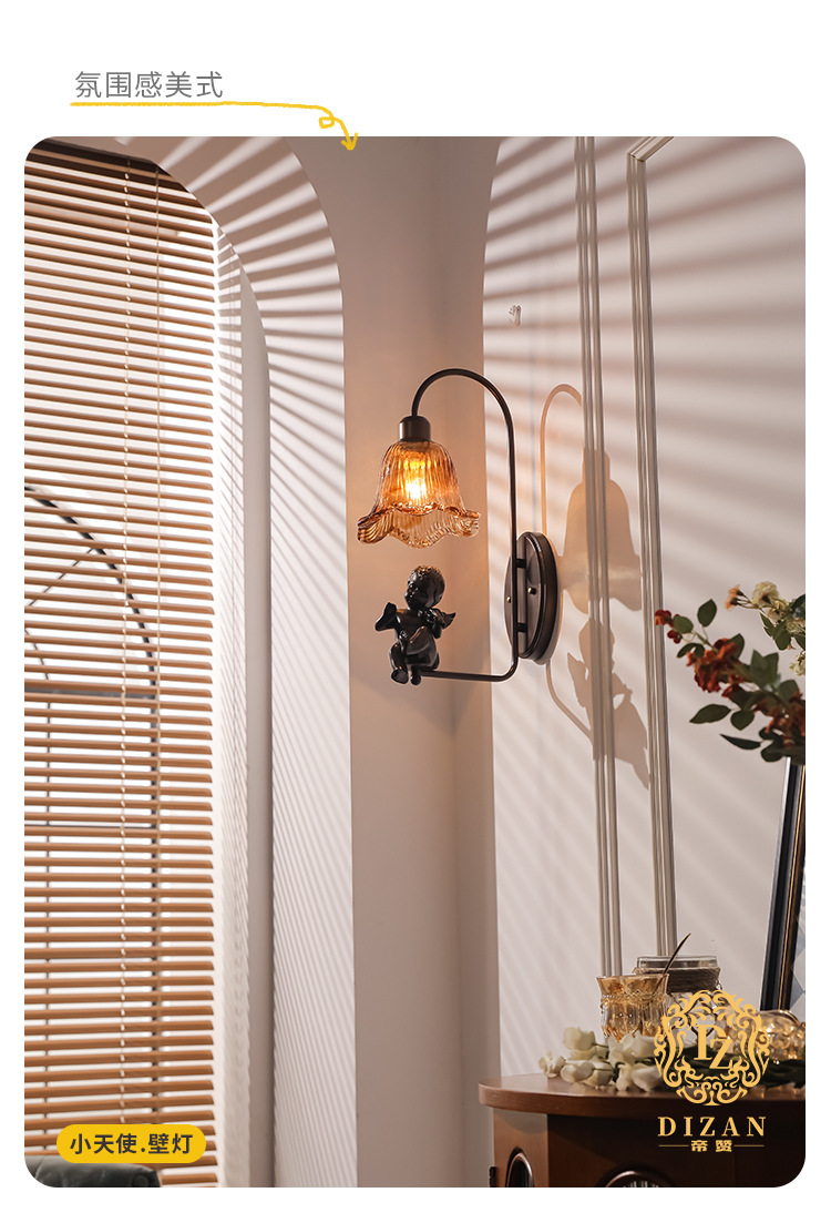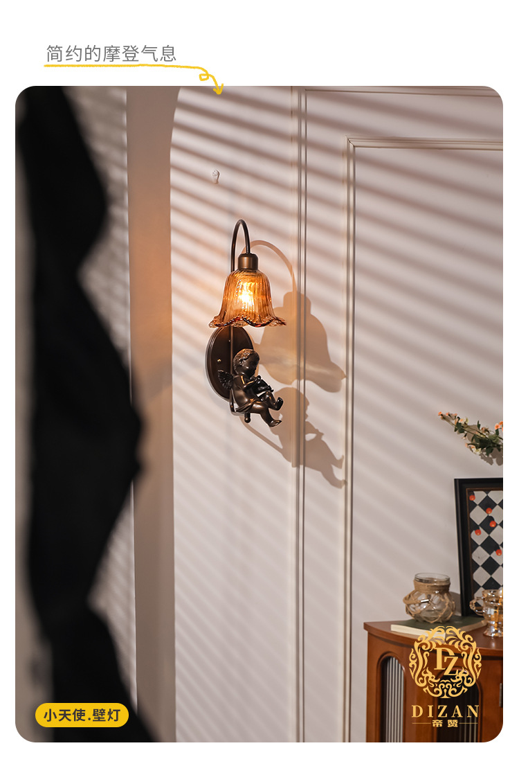 골동품 프랑스 분위기 작은 천사 벽 램프 복고풍 미국 방 침대 옆 침실 램프 아트 계단 램프스토어 가기