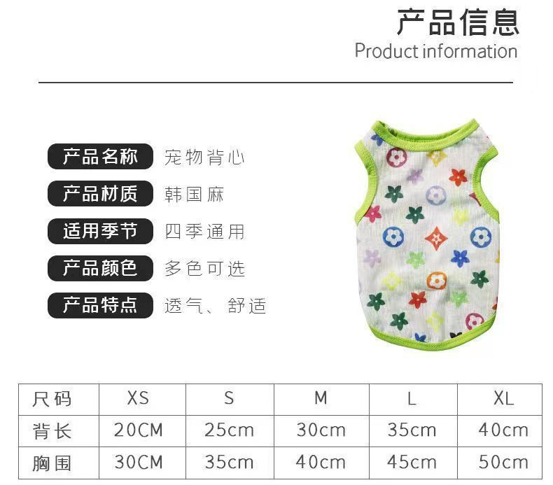 국경 간 폭발 애완 동물 중소 개 테디 빅시 옹 개 옷 봄과 여름 시원한 조끼 고양이 선 스크린 옷스토어 가기