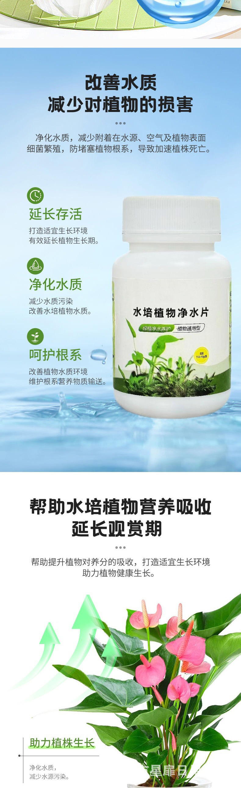 수경재배 식물용 정수제, 탈취제, 풍성한 대나무 그릇 수련 전용 정수제, 물질을 깨끗하게 하고 꽃을 신선하게 유지하는 정수제스토어 가기