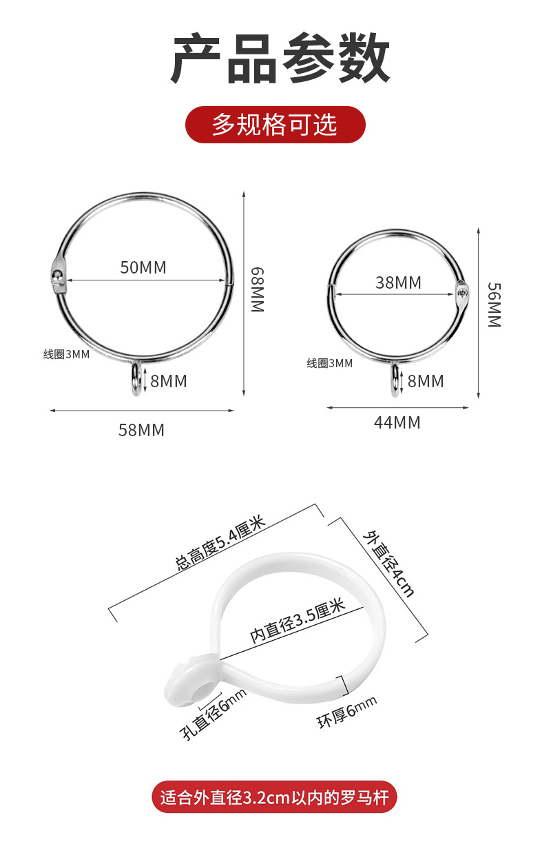 금속 걸이 고리, 스테인리스 클립, 커튼 링, 로마봉 액세서리, 걸이 고리, 오픈링, 도어 커튼, 탈부착 가능