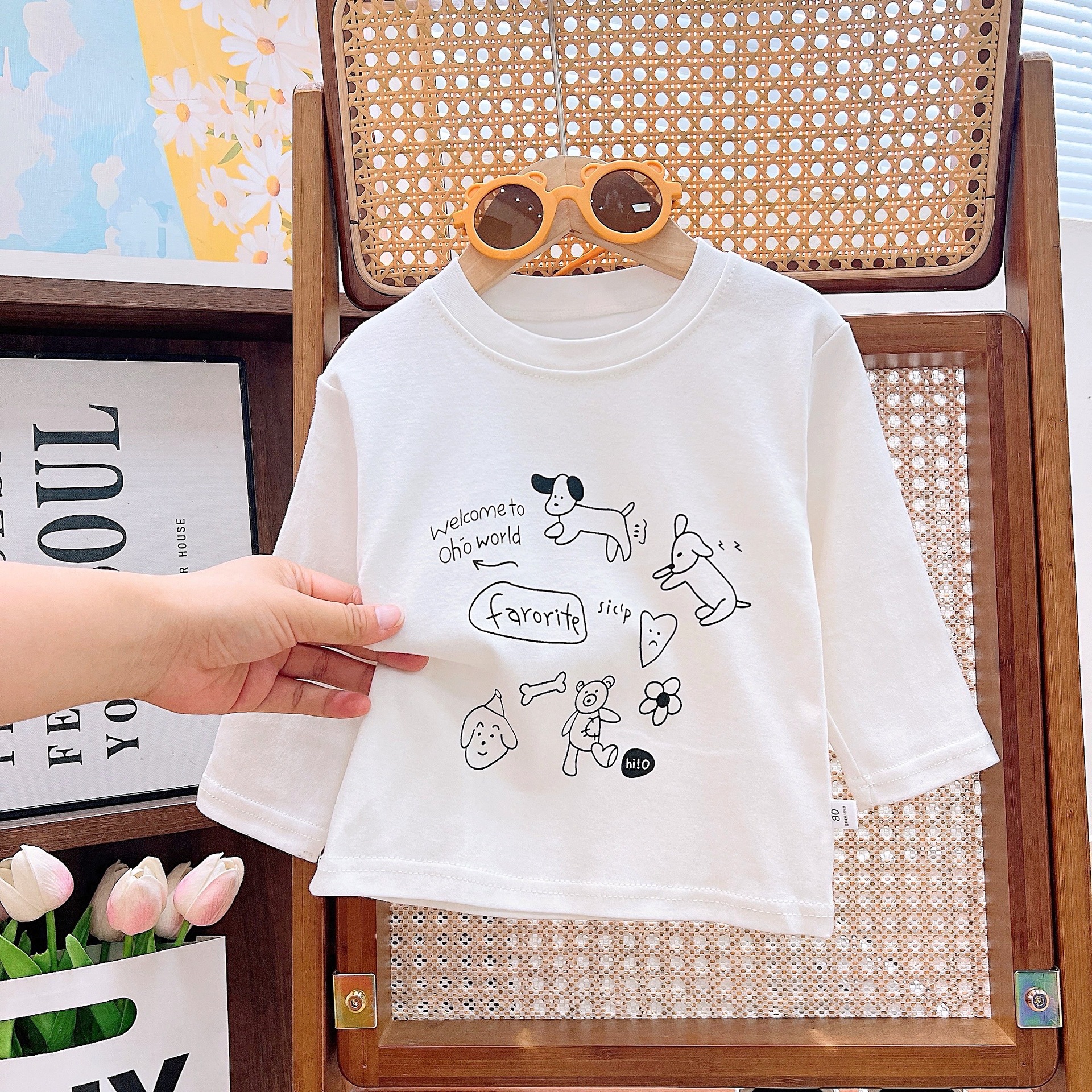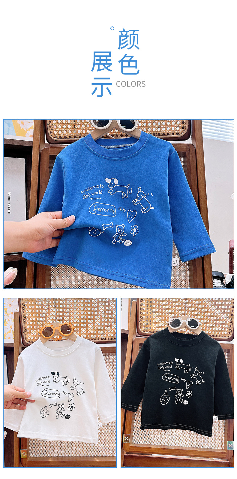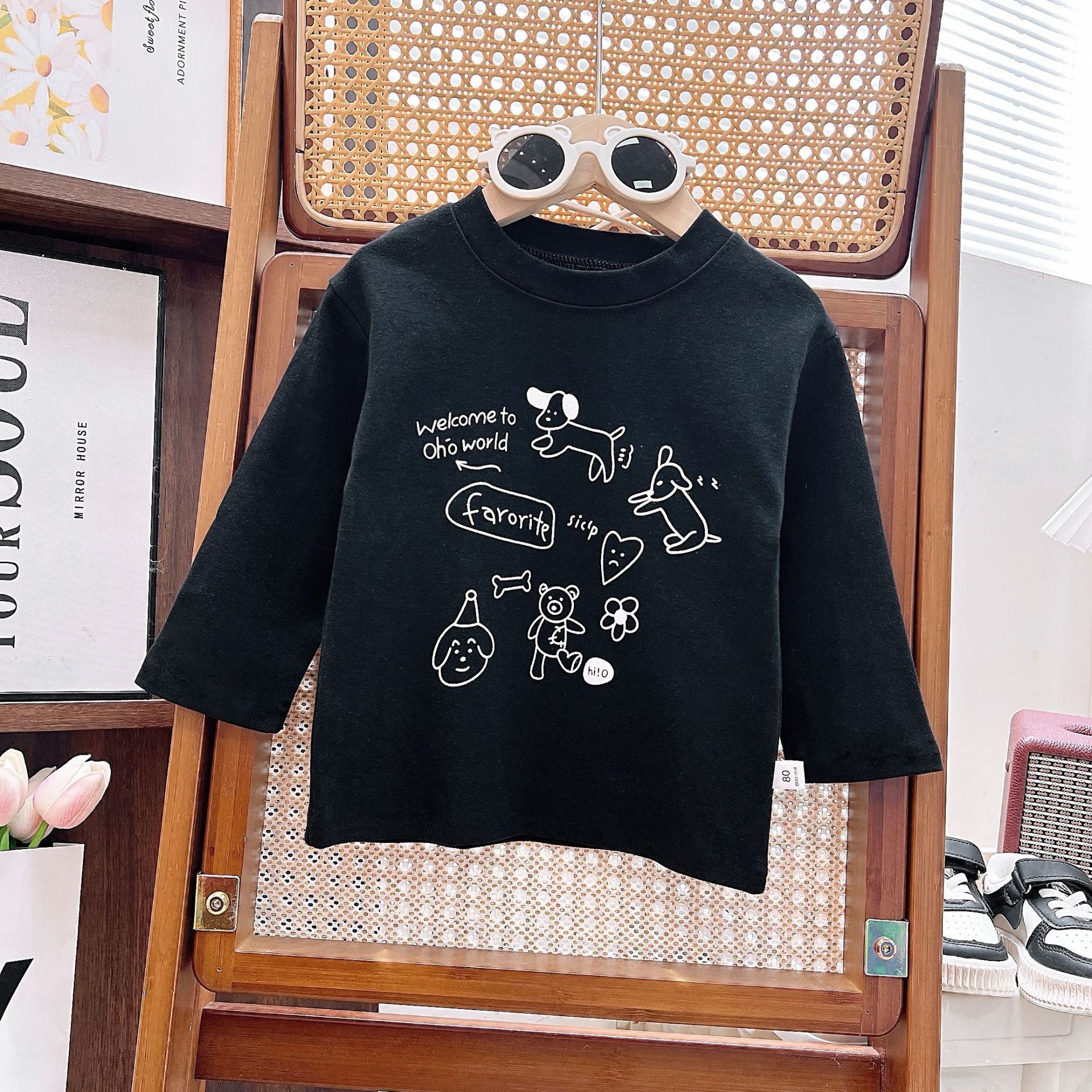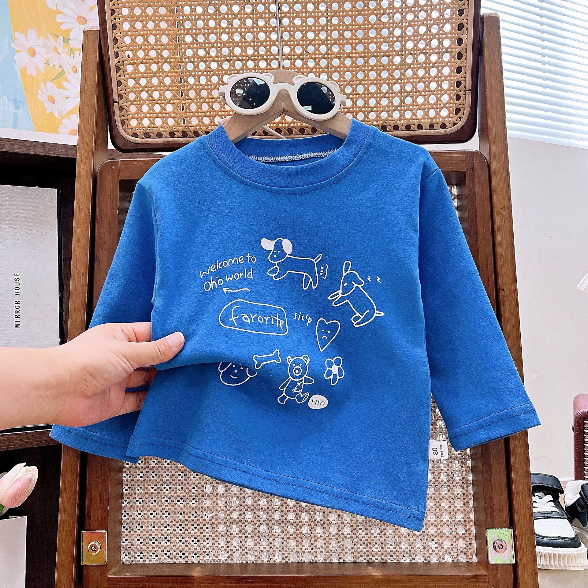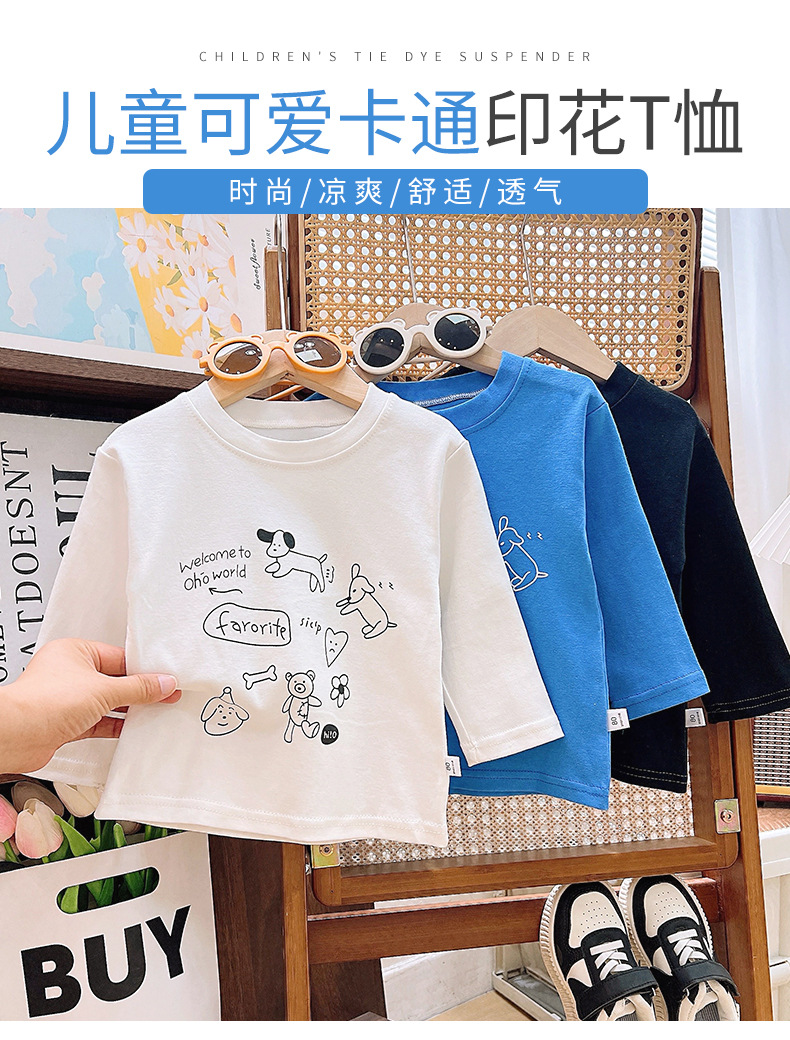 맞춤형 어린이 봄, 가을 순면 긴팔 티셔츠 새로운 어린이 카테고리 A 겉옷 남성과 여성의 보물 만화 인쇄 다용도스토어 가기