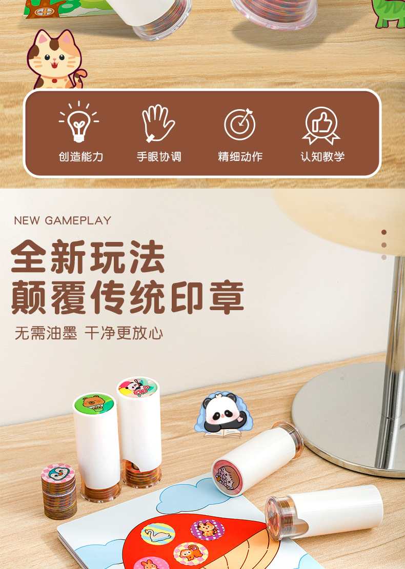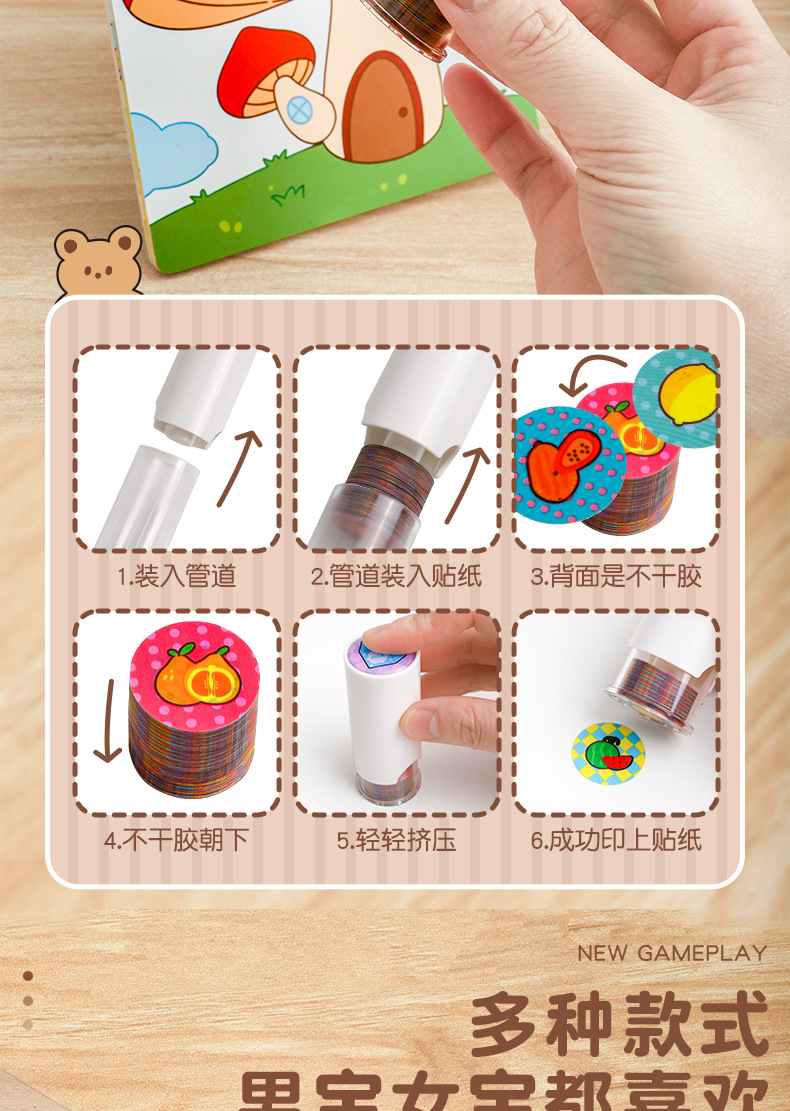 어린이 우표 기계 스티커 만화 프레스 매직 조기 교육 라운드 우표 상 스티커 기계 재고 도매스토어 가기