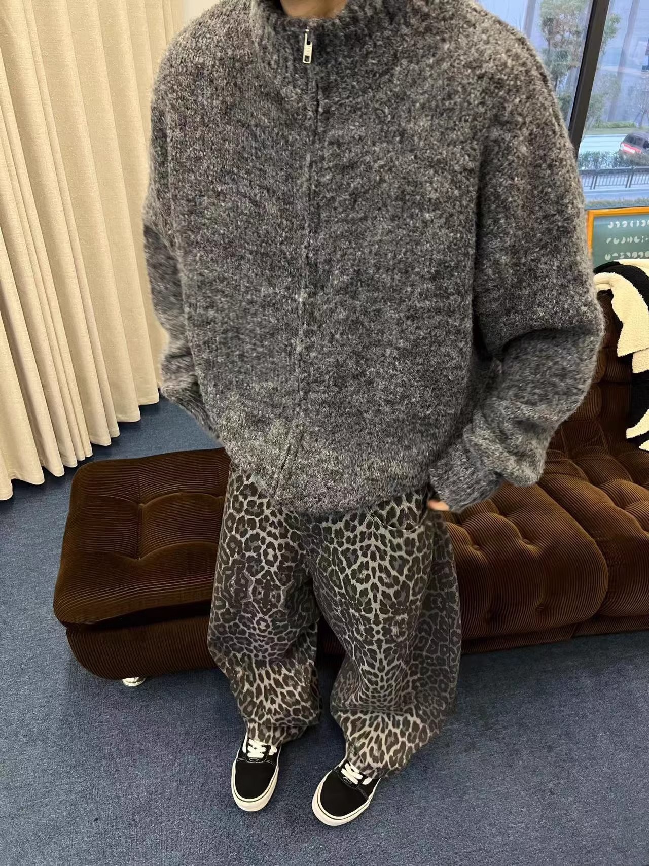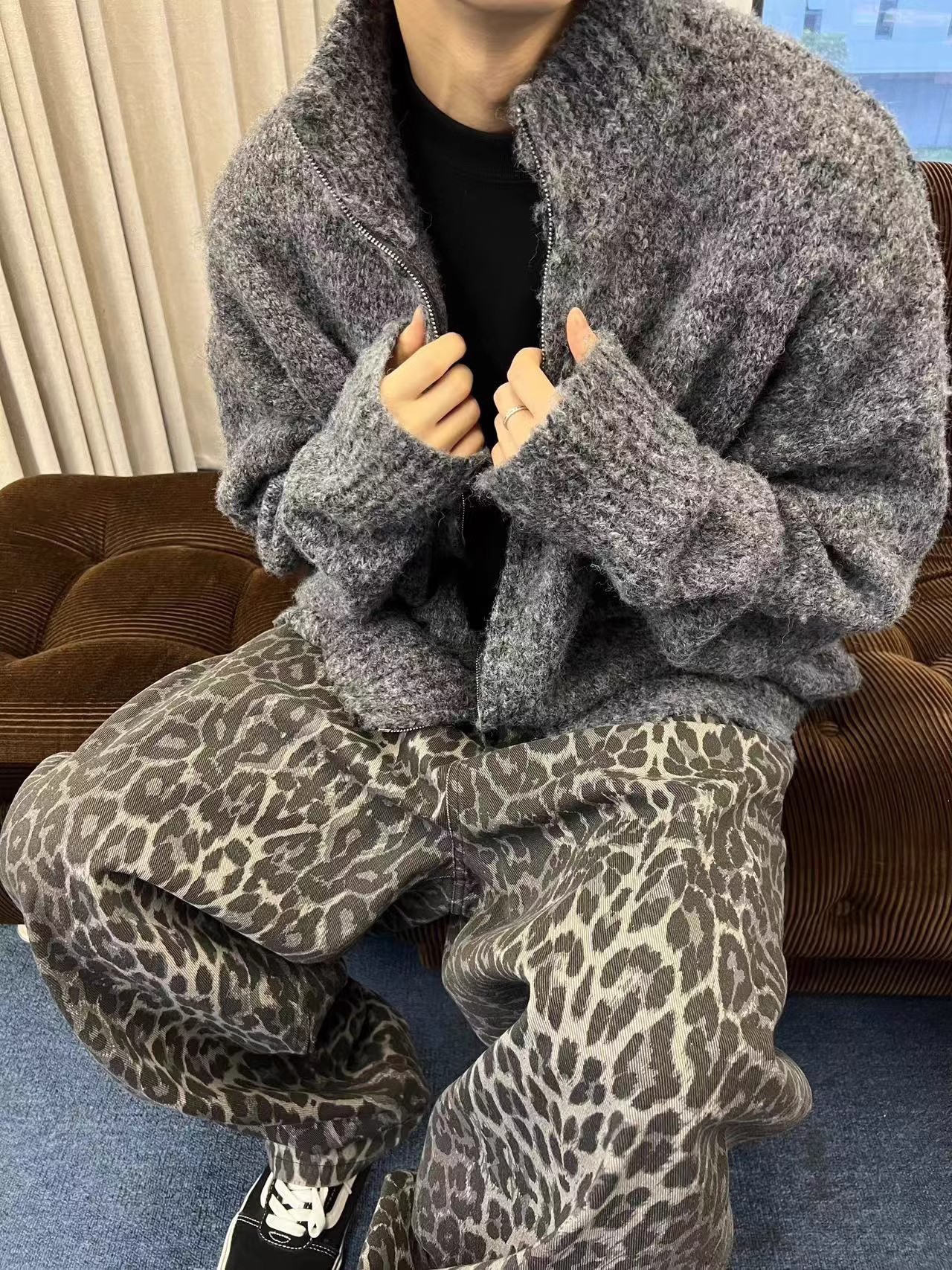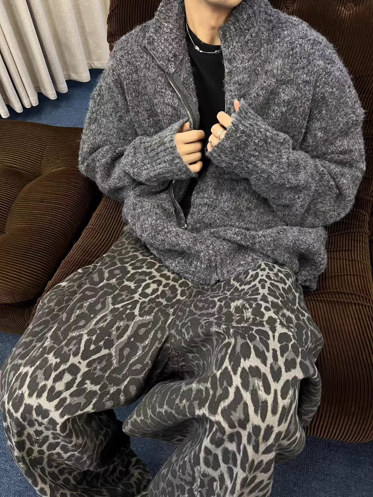 가을과 겨울 게으른 레트로 다크 그레이 느슨한 지퍼 스웨터 재킷 남자 INS 고급 수직 칼라 새로운 스타일 잘 생긴 올 매치 카디건스토어 가기