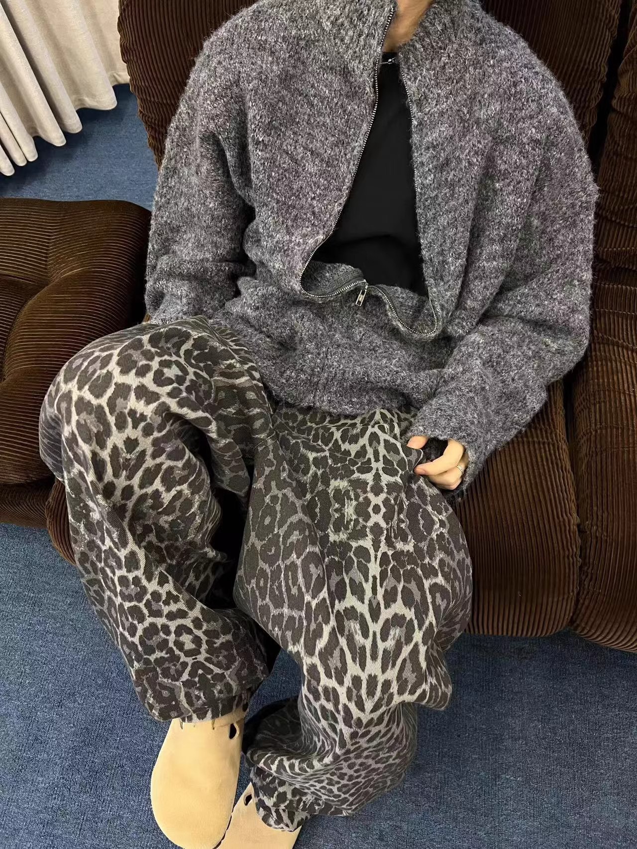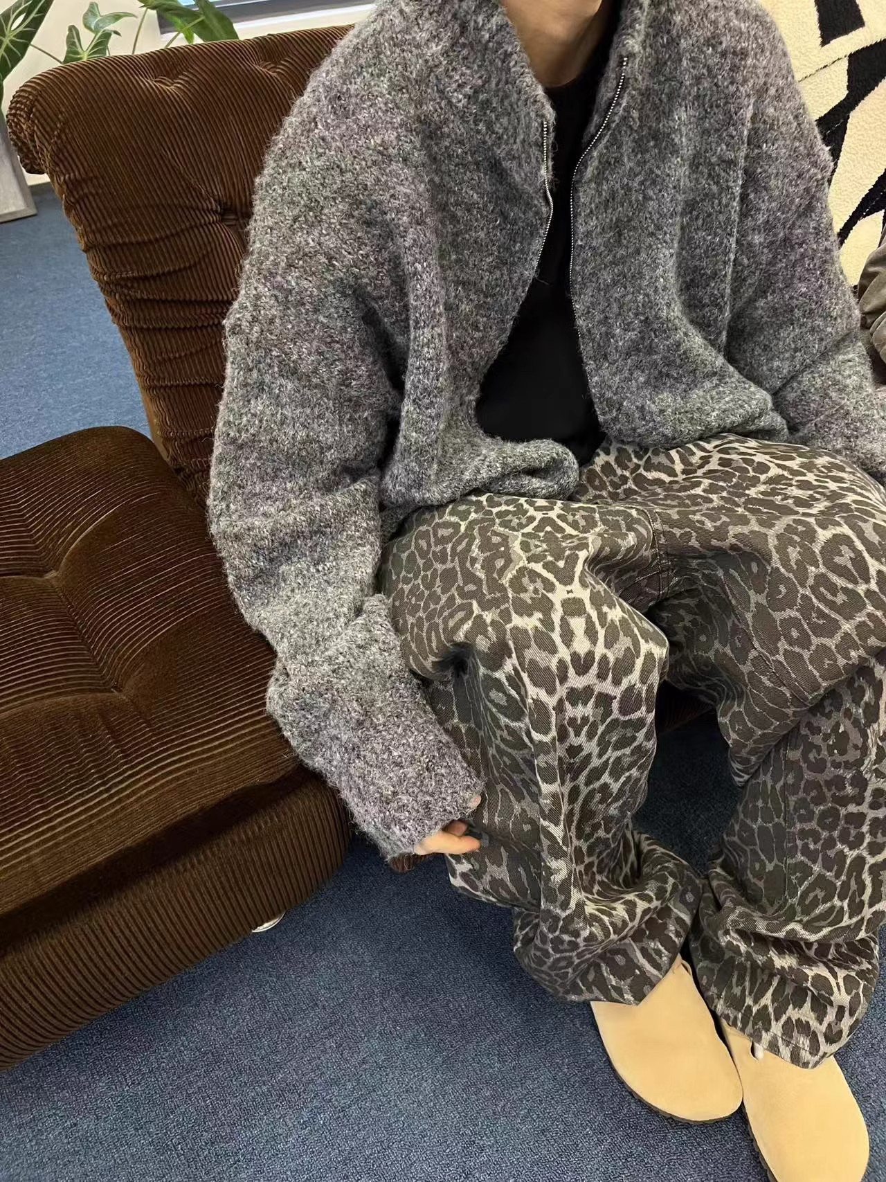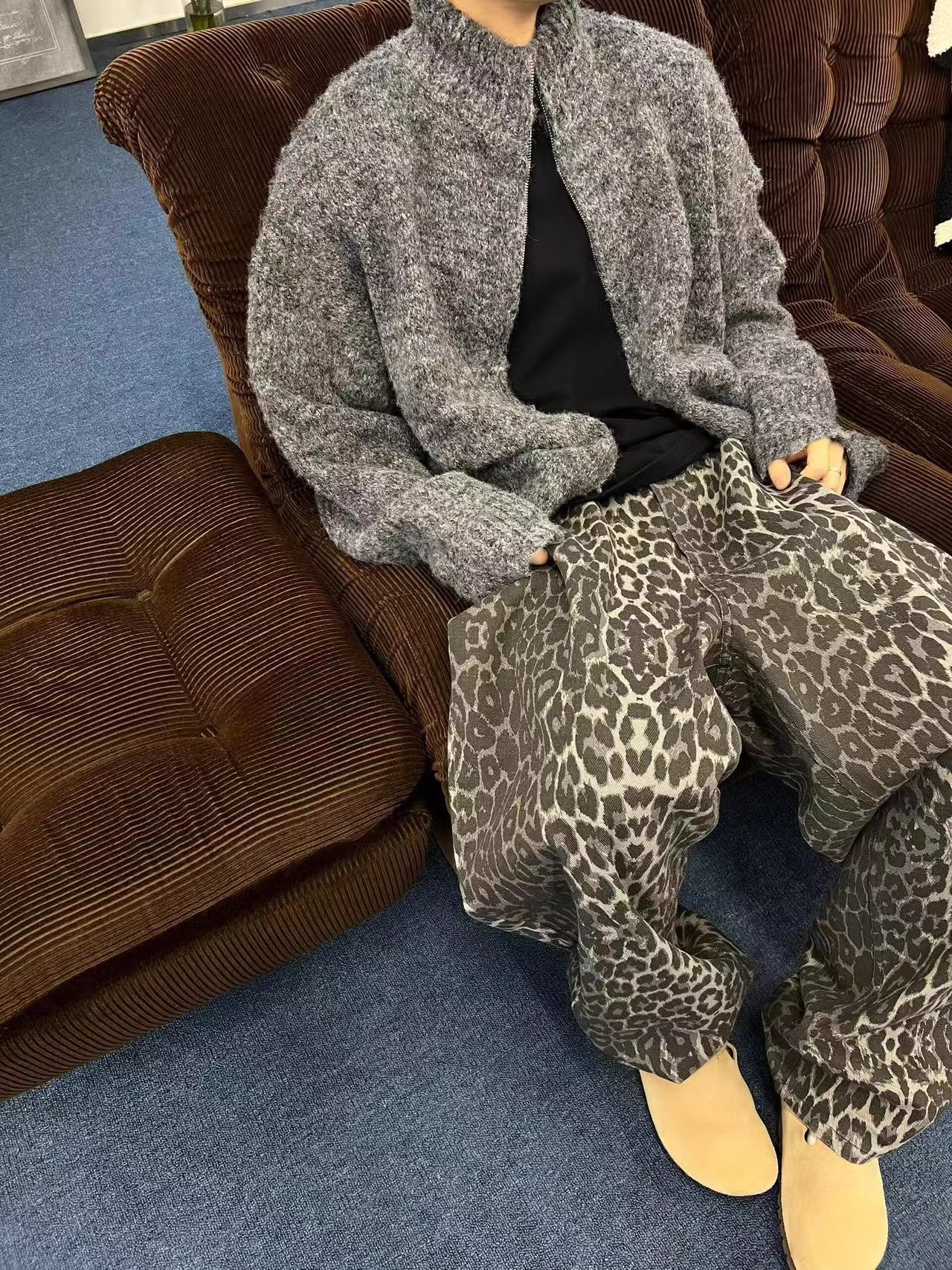 가을과 겨울 게으른 레트로 다크 그레이 느슨한 지퍼 스웨터 재킷 남자 INS 고급 수직 칼라 새로운 스타일 잘 생긴 올 매치 카디건스토어 가기