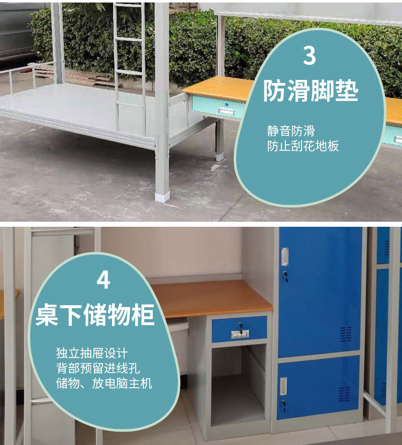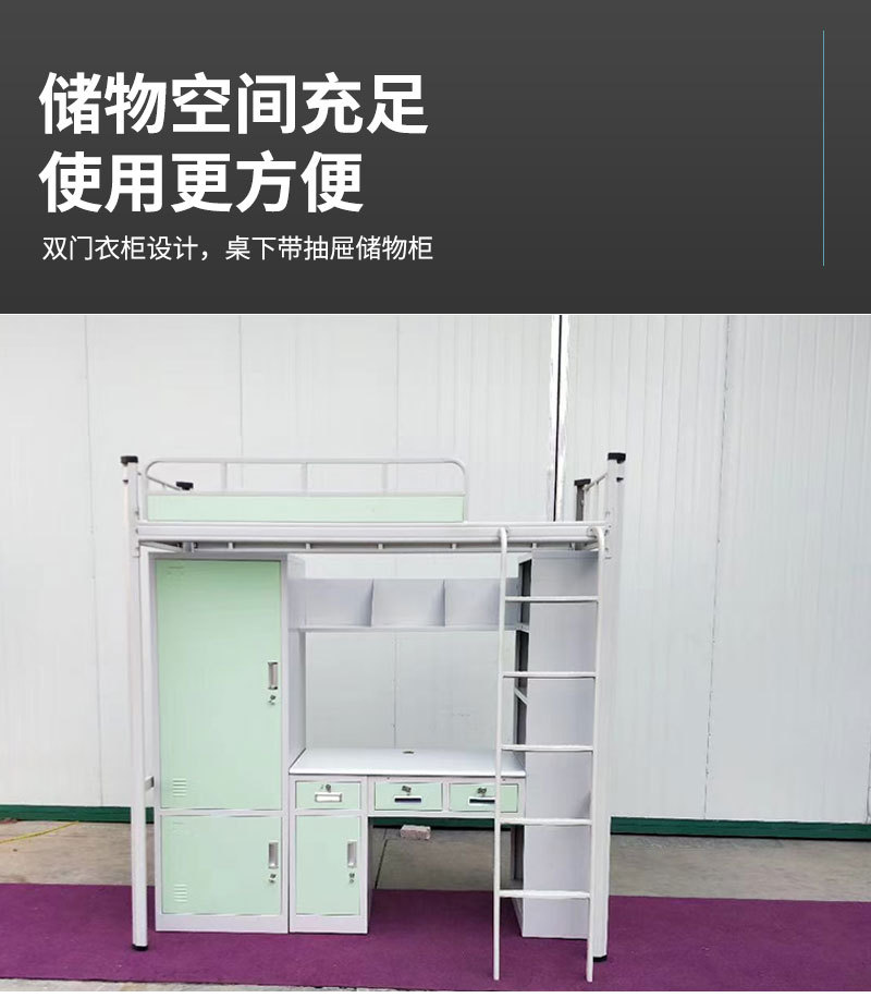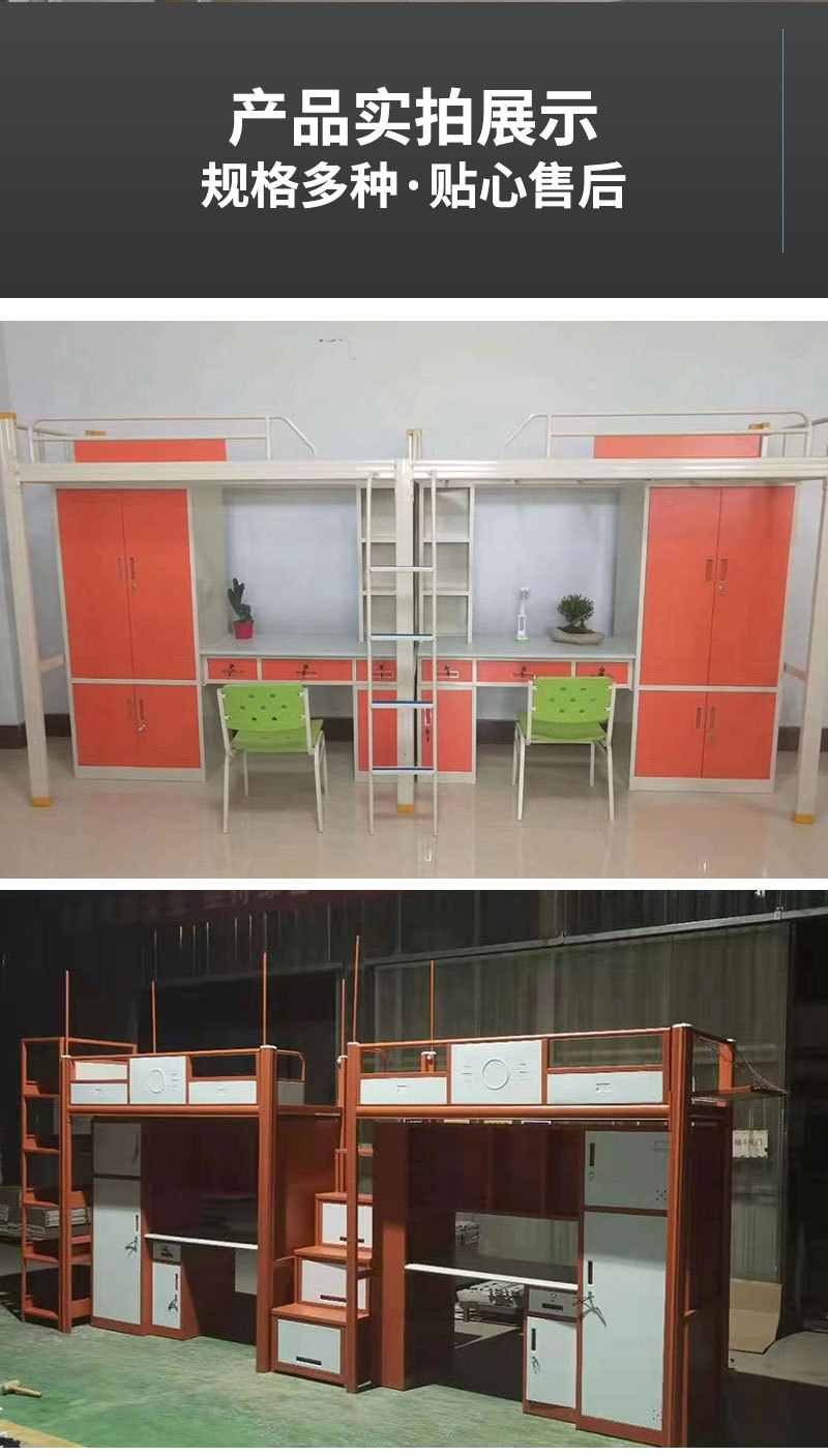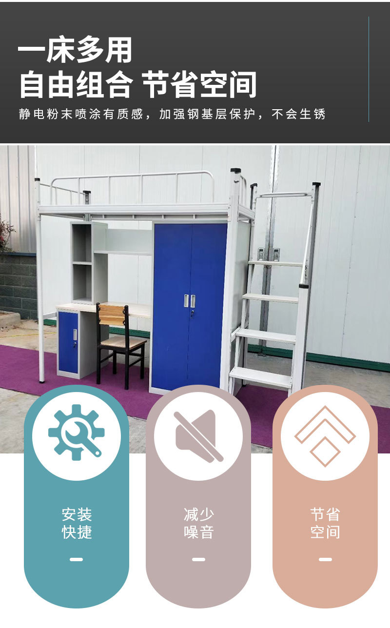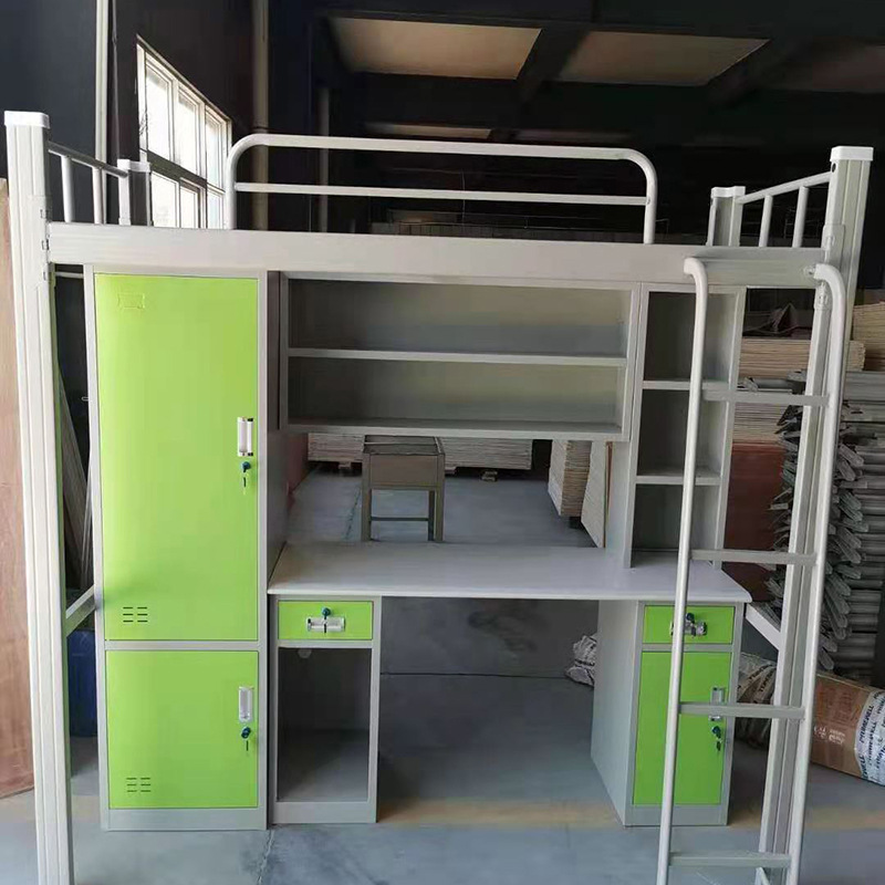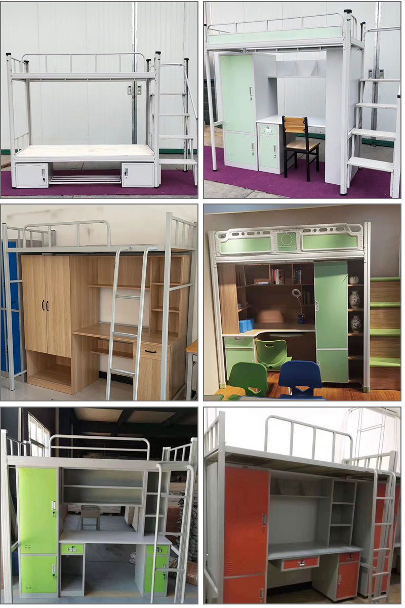 학교 기숙사 상층 침대 아파트 옷장 책꽂이 콤비네이션 철 프레임 침대를 가진 침대 싱글 침대 낮은 테이블스토어 가기