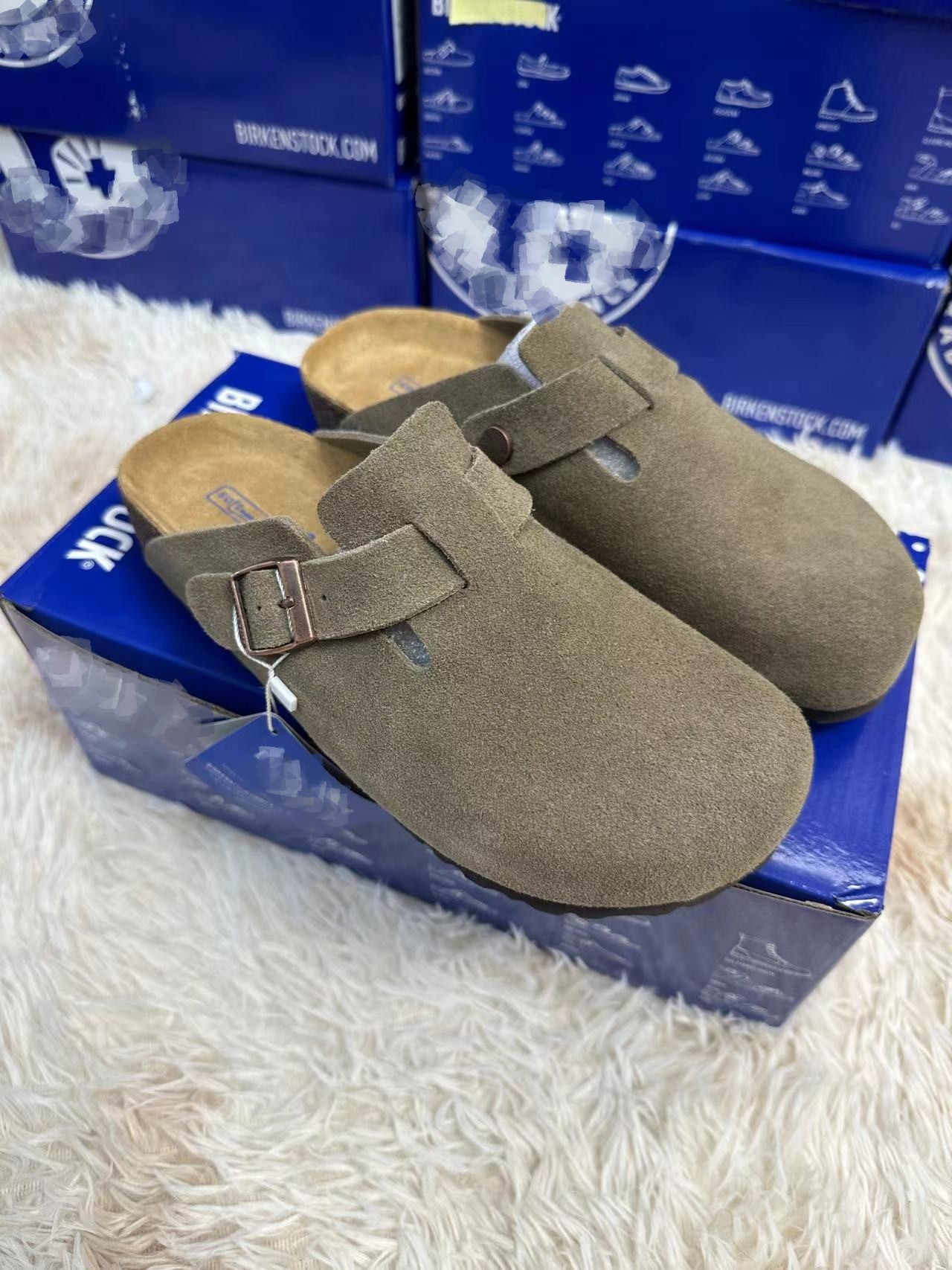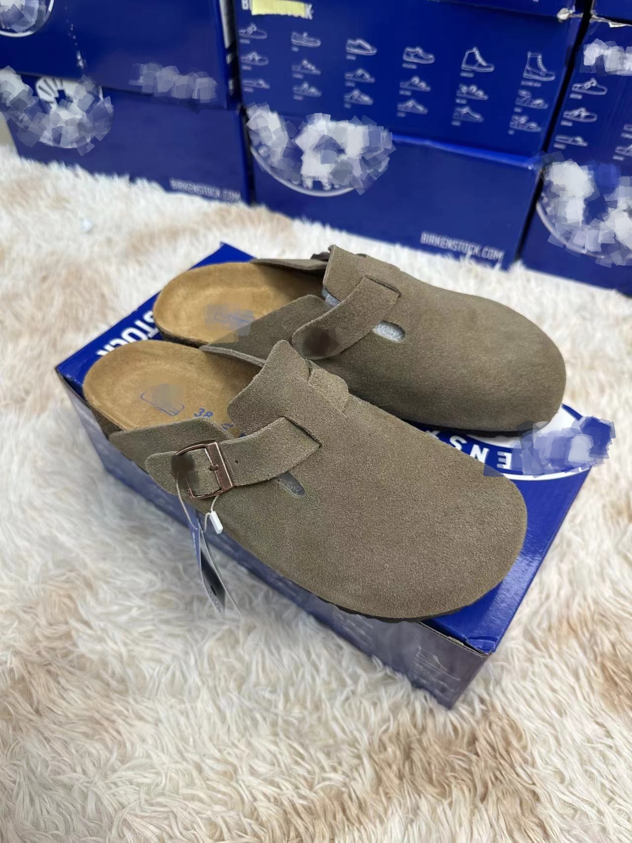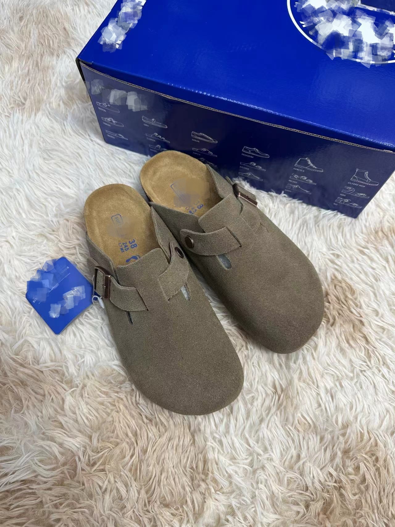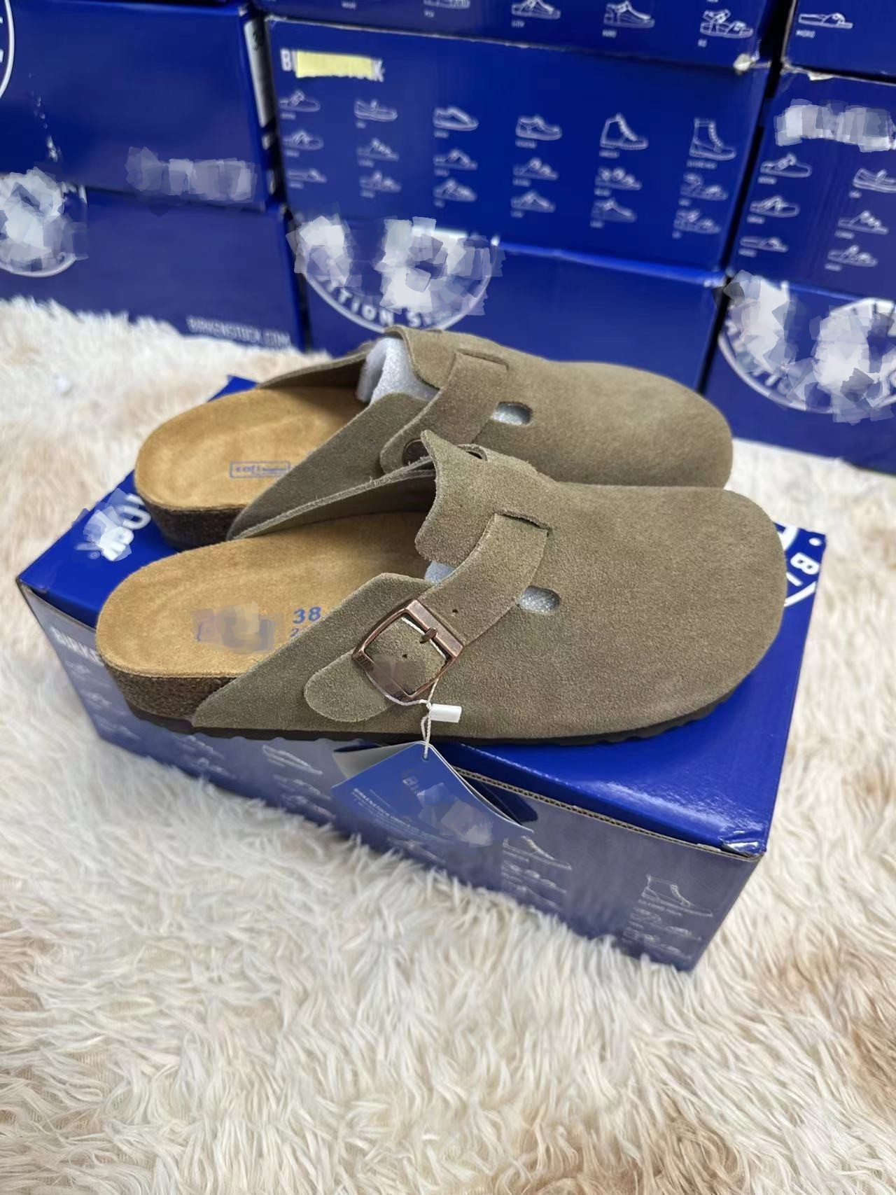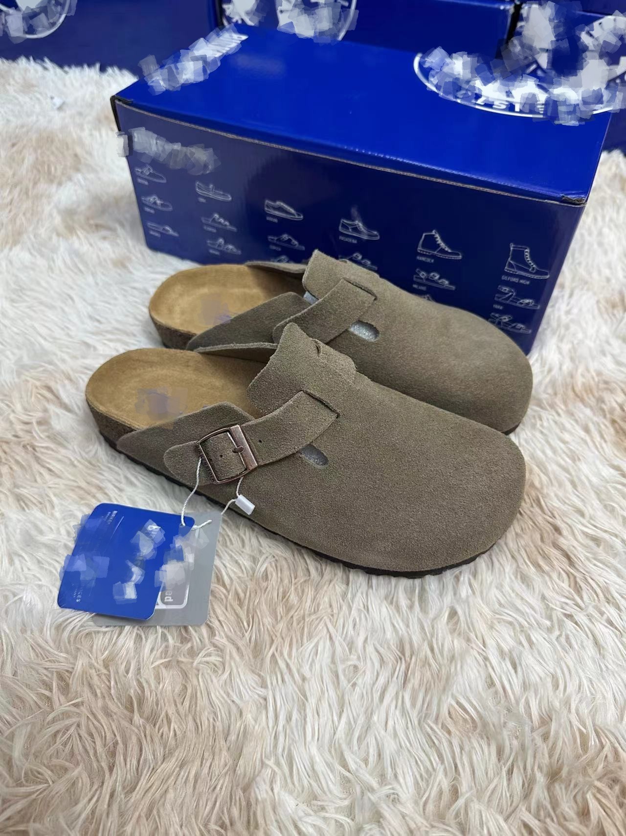 남자 BK 재고 정품 가죽 버켄탈 신발 순수 오리지널 뉴 스타일 올 매치 아웃웨어 레트로 남자 하프 토우 버켄탈 신발