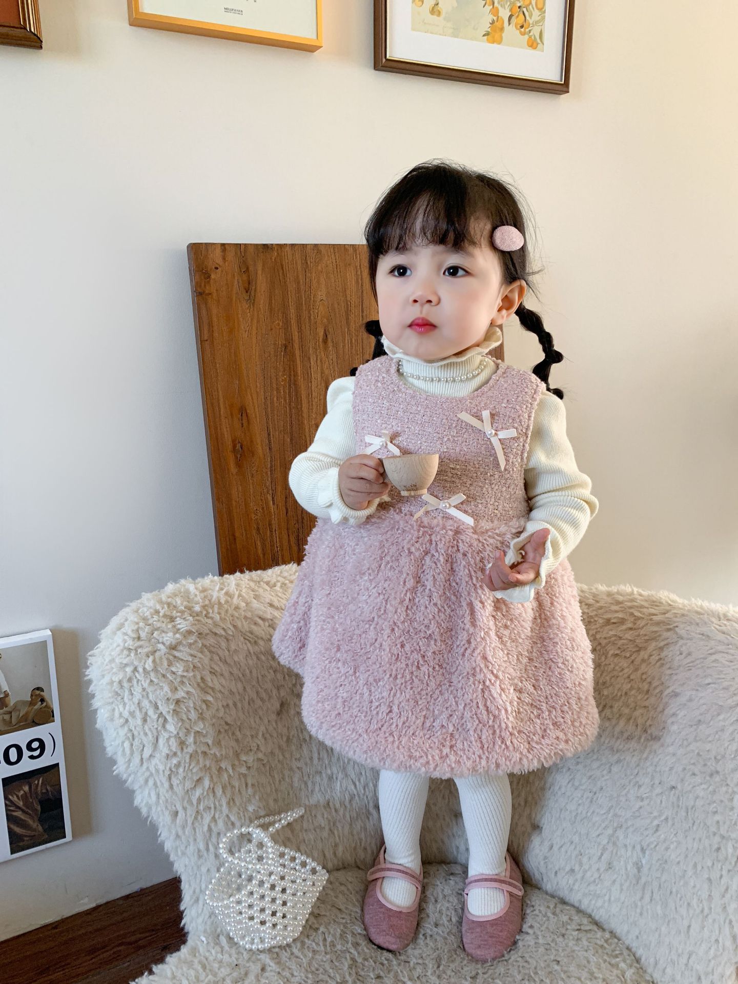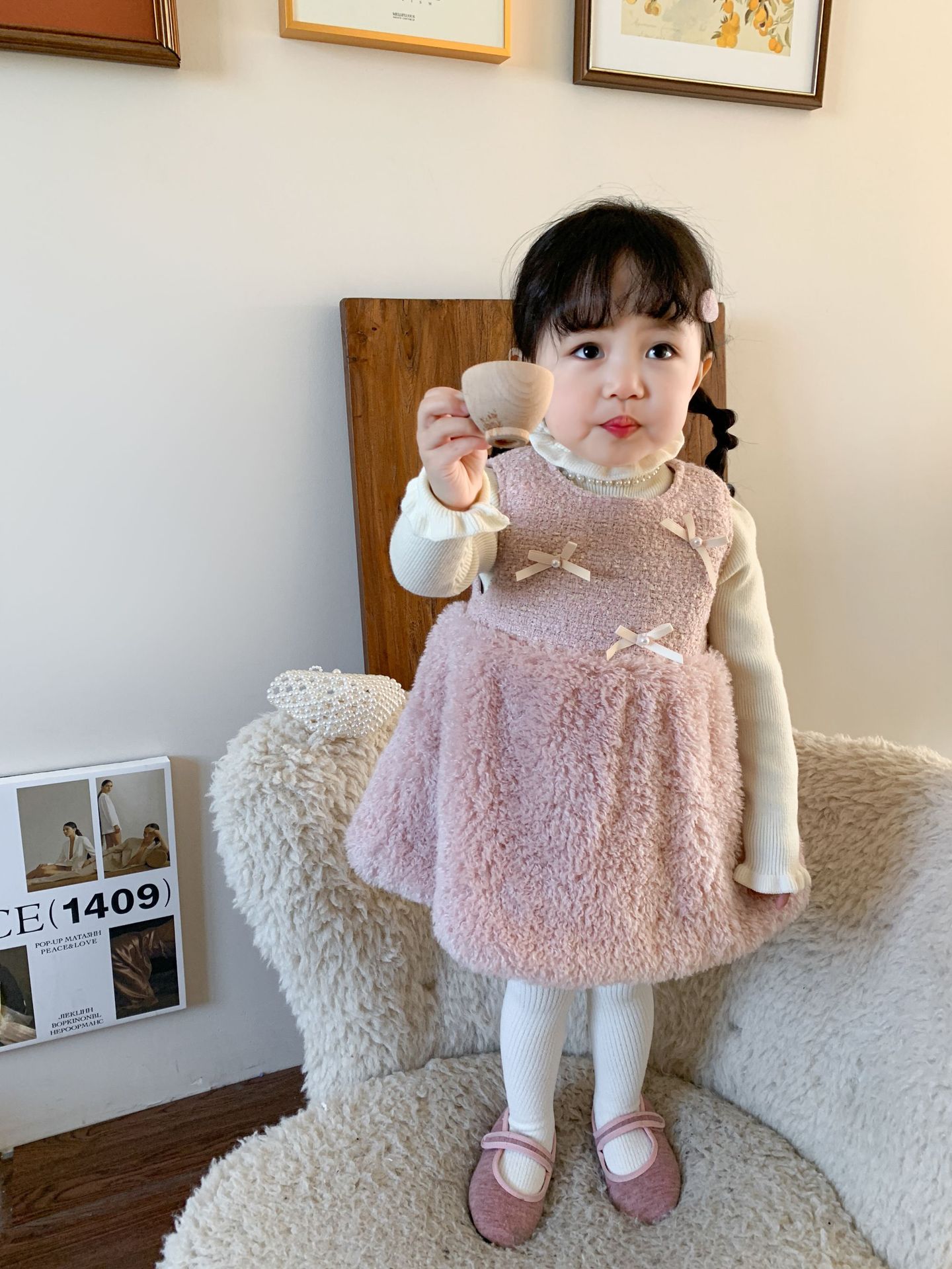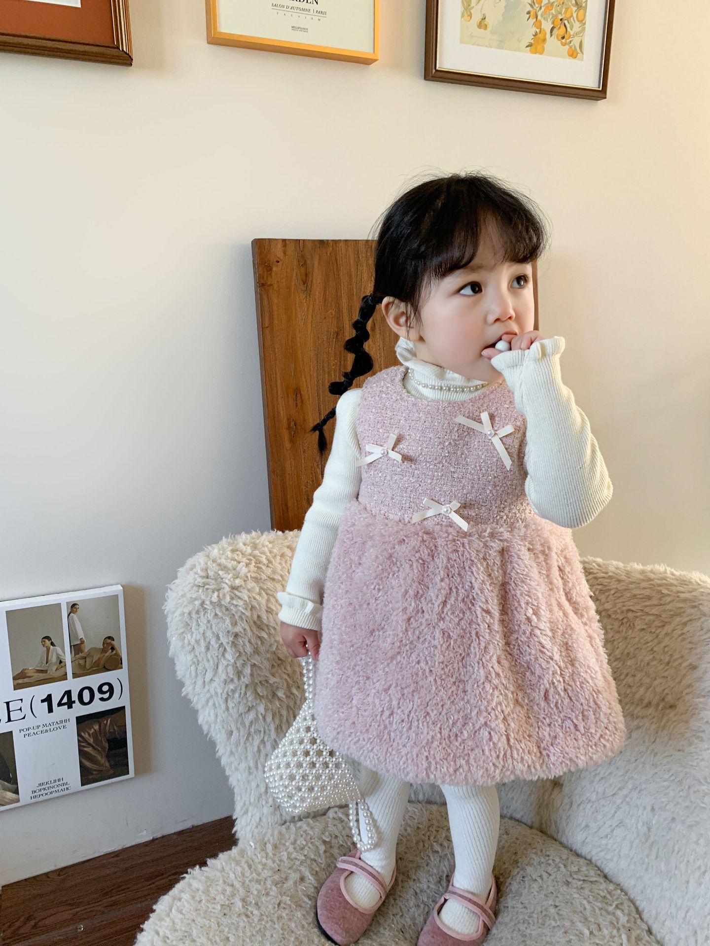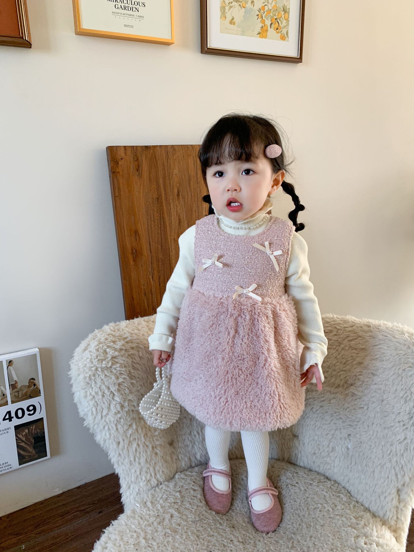사탕수수 원단 여아 공주 조끼 원피스, 겨울용 누빔 두꺼운 아동 원피스, 작은 프랑스 스타일 아기 원피스스토어 가기