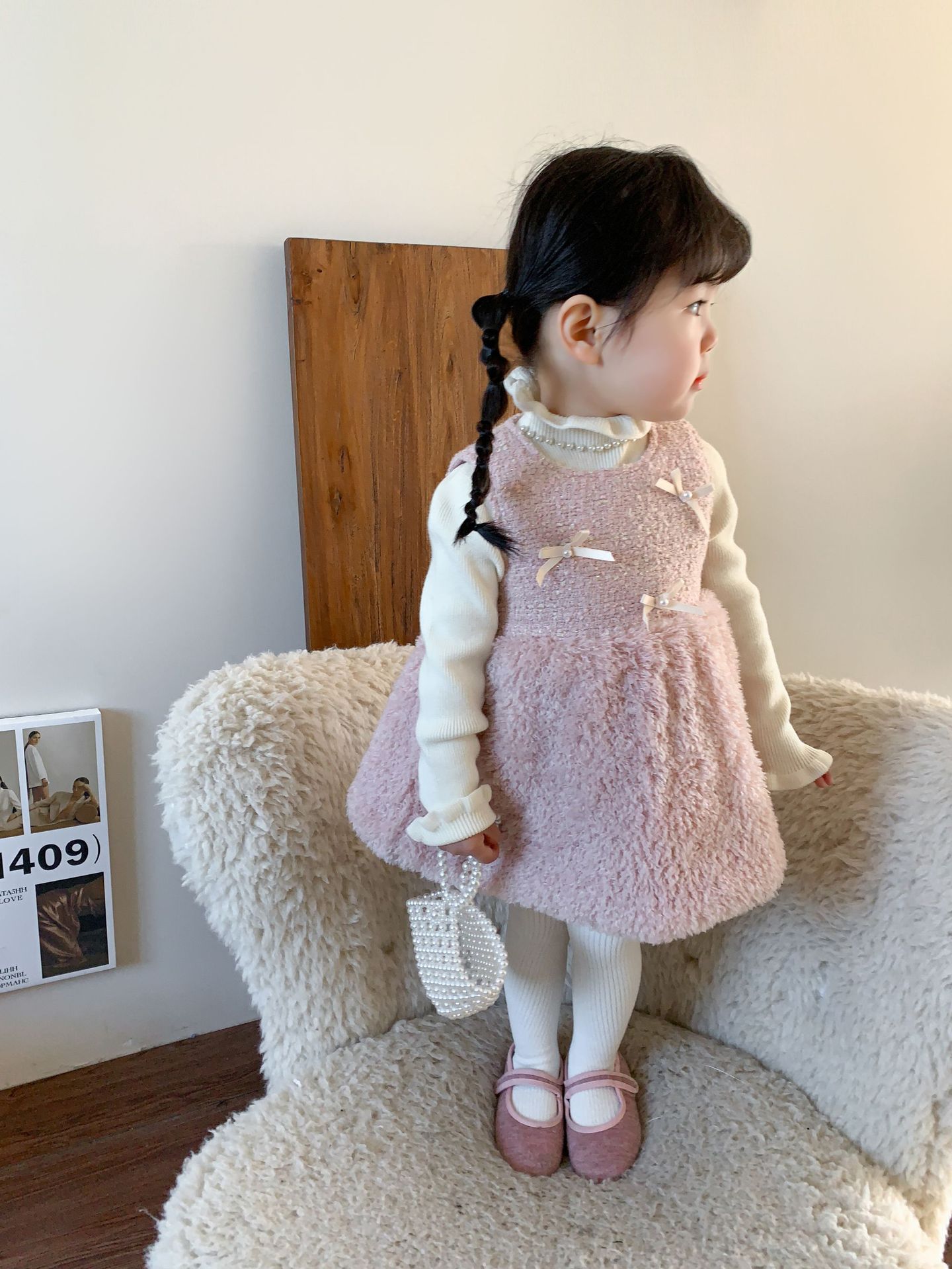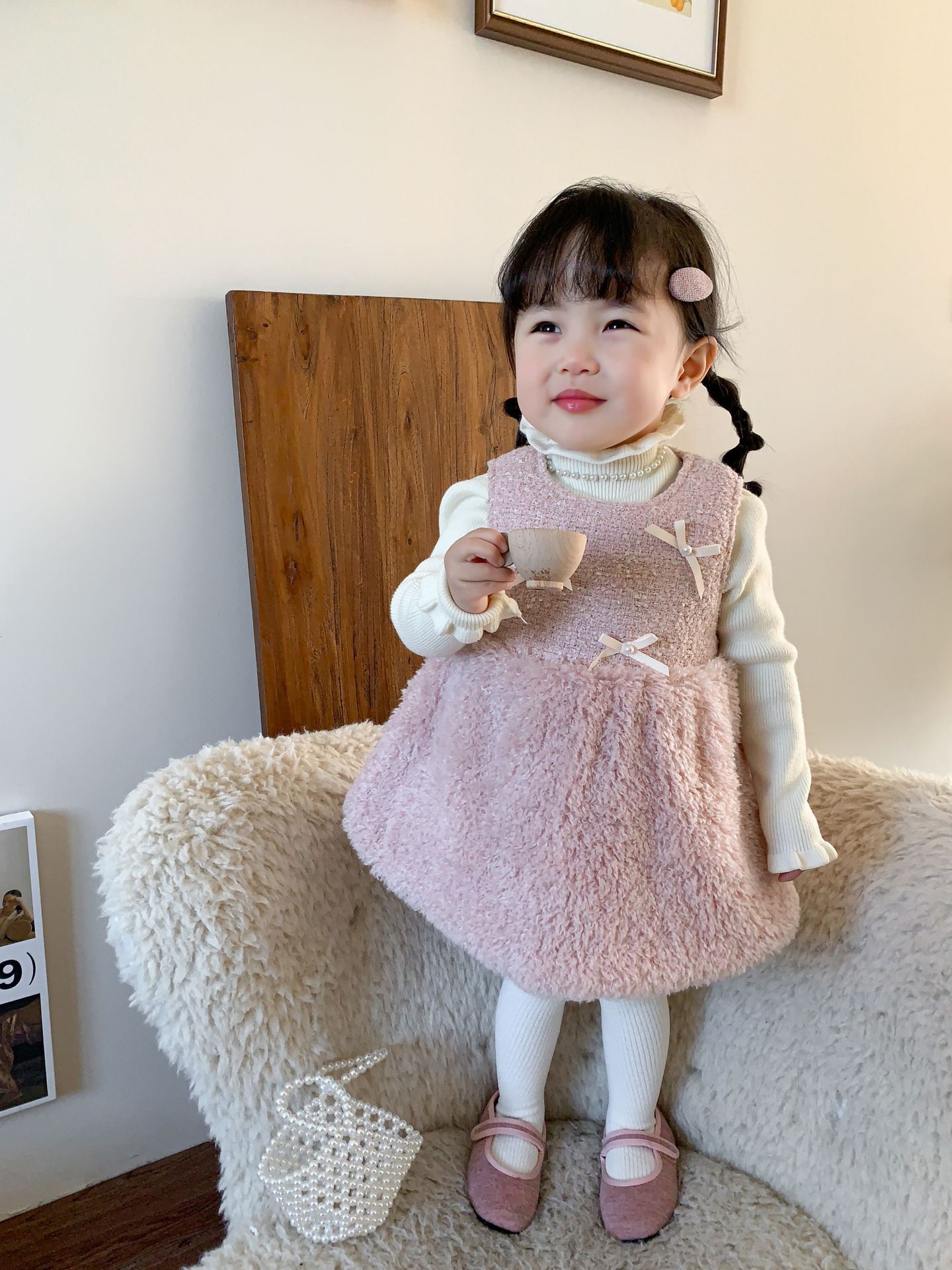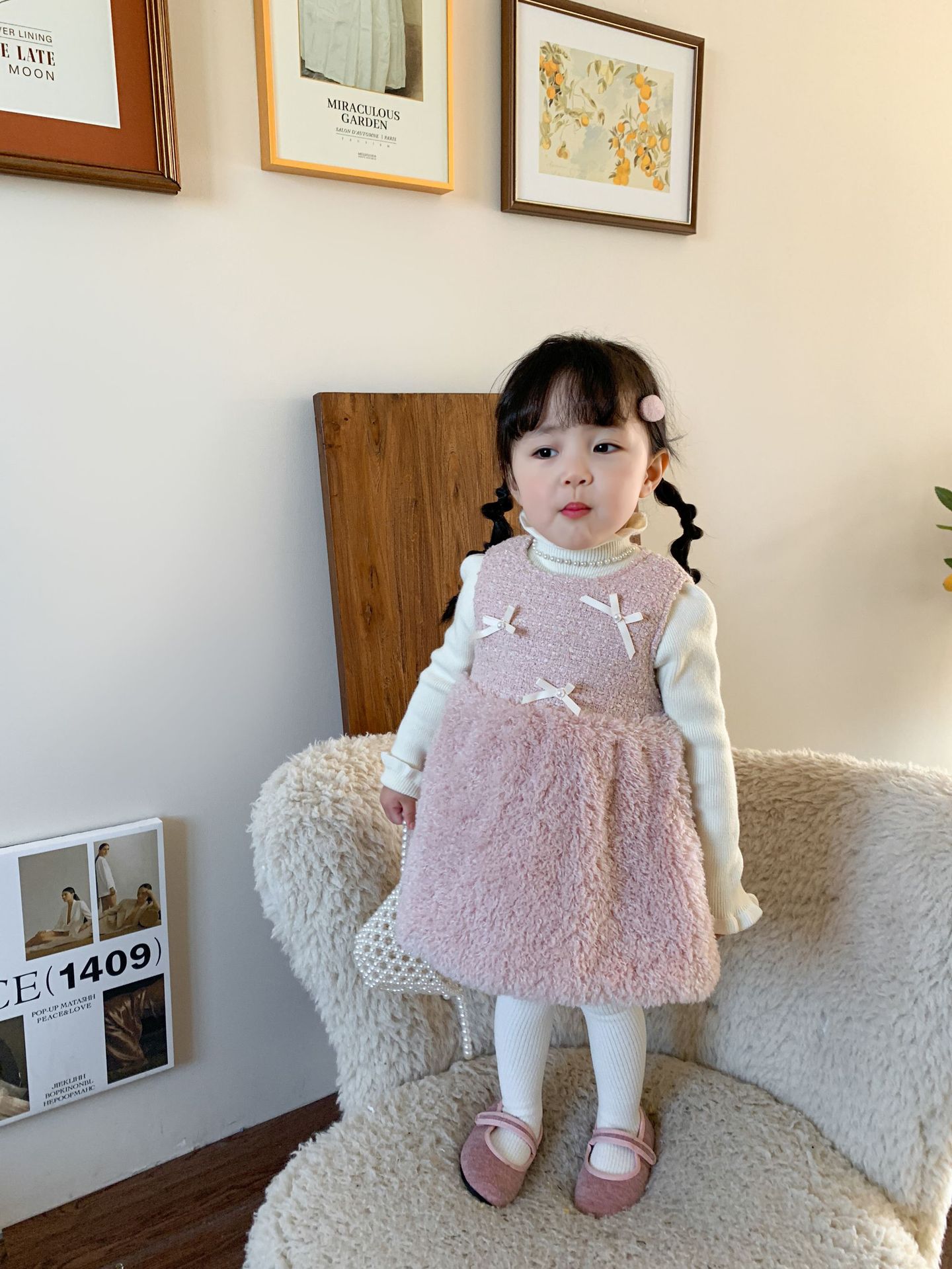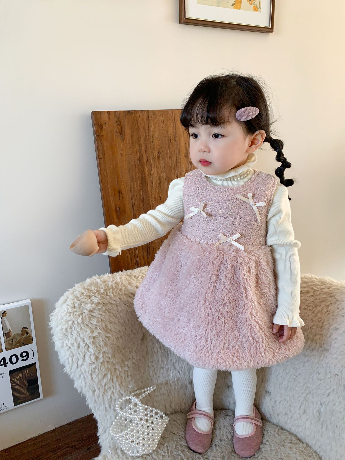 사탕수수 원단 여아 공주 조끼 원피스, 겨울용 누빔 두꺼운 아동 원피스, 작은 프랑스 스타일 아기 원피스스토어 가기
