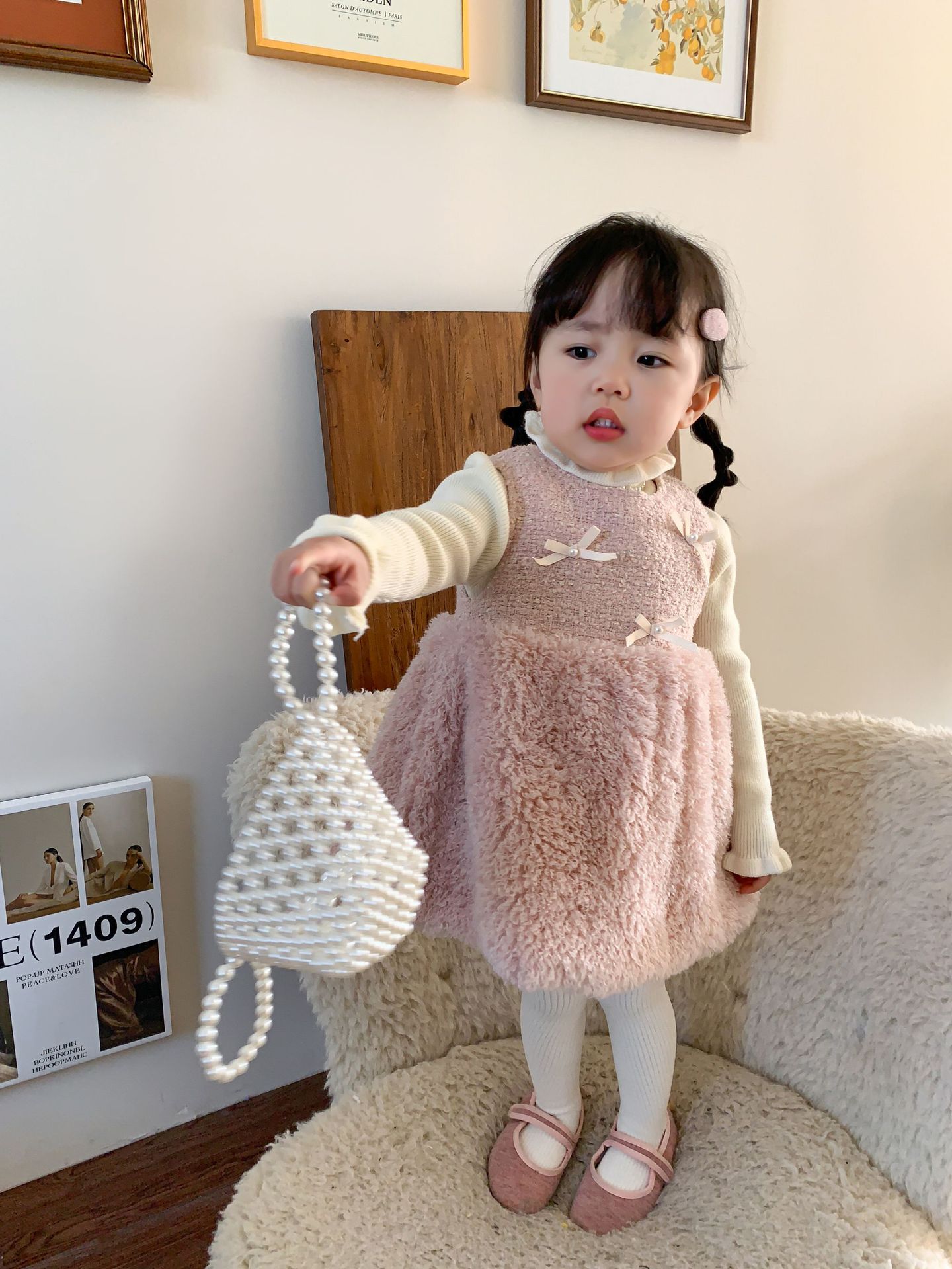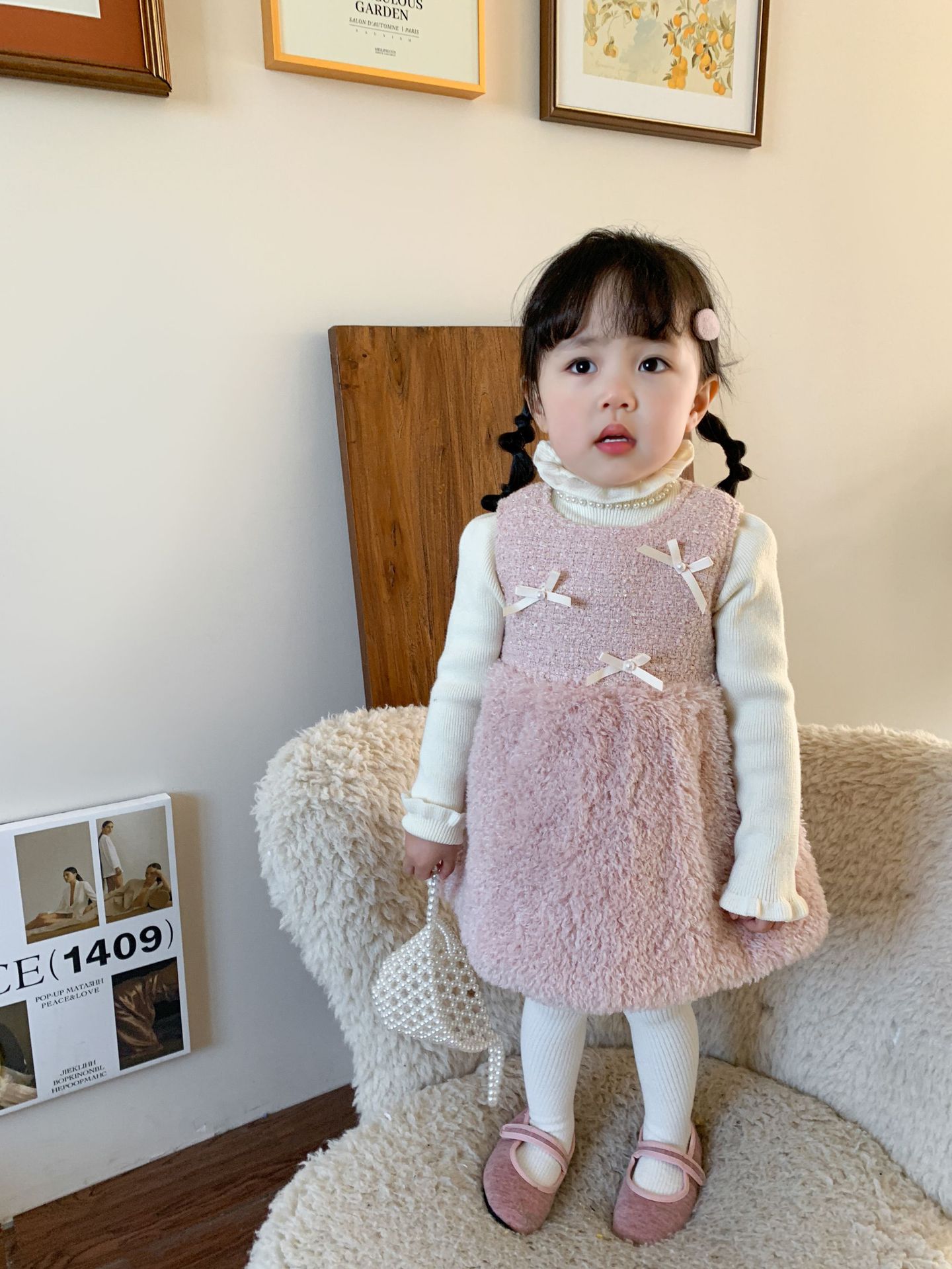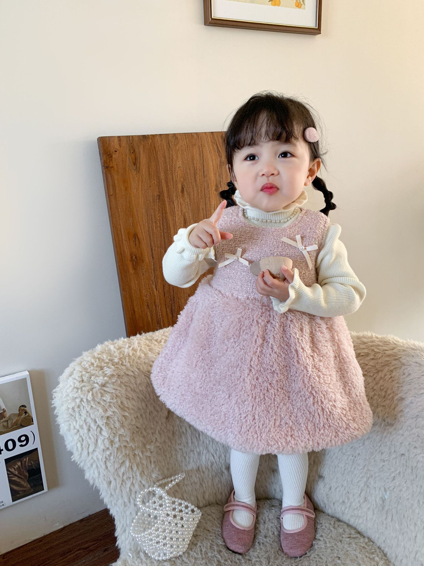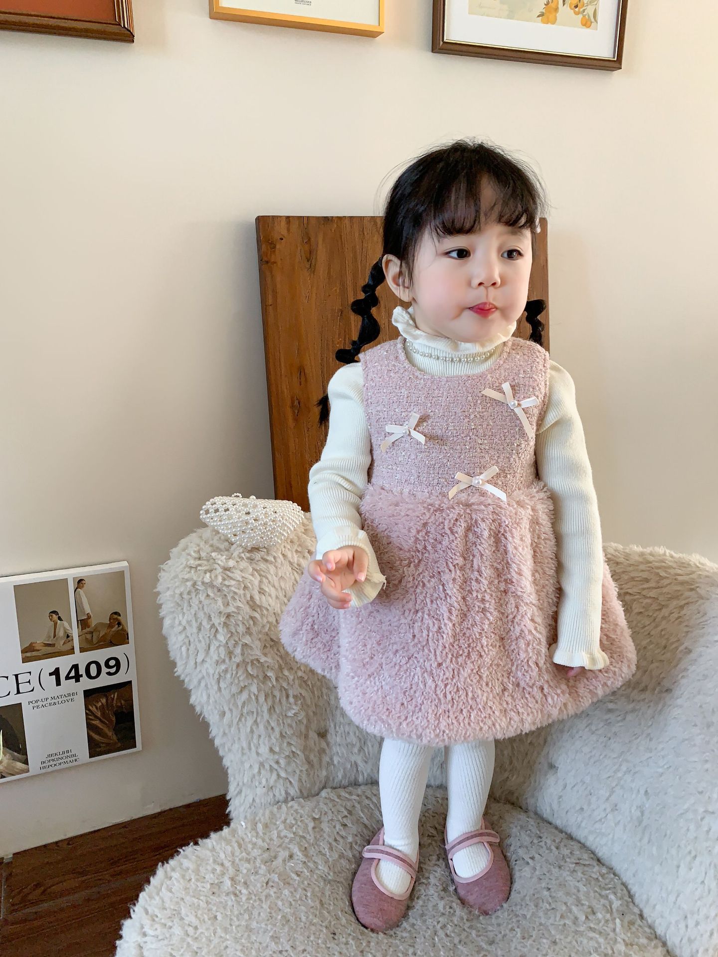 사탕수수 원단 여아 공주 조끼 원피스, 겨울용 누빔 두꺼운 아동 원피스, 작은 프랑스 스타일 아기 원피스스토어 가기
