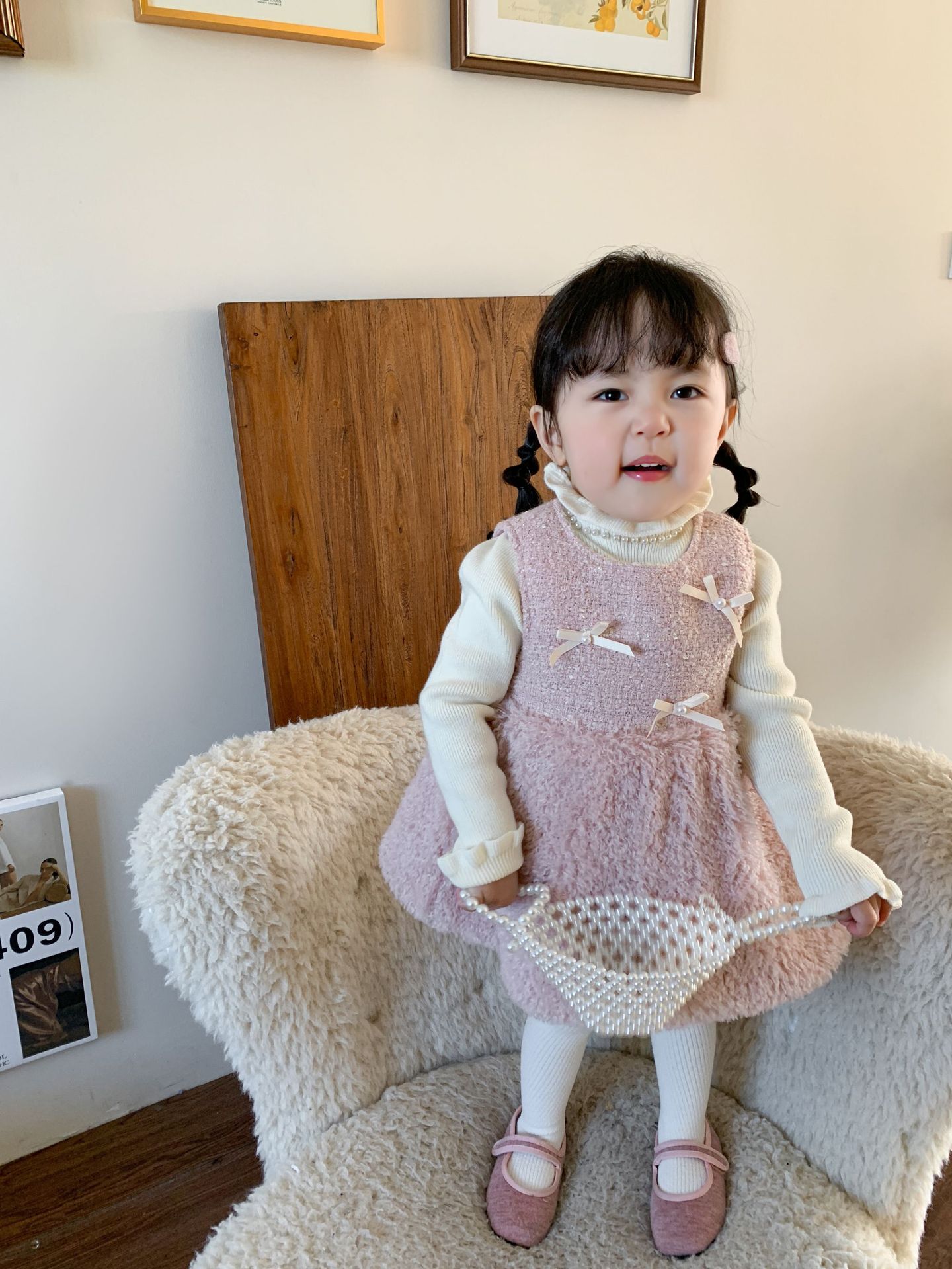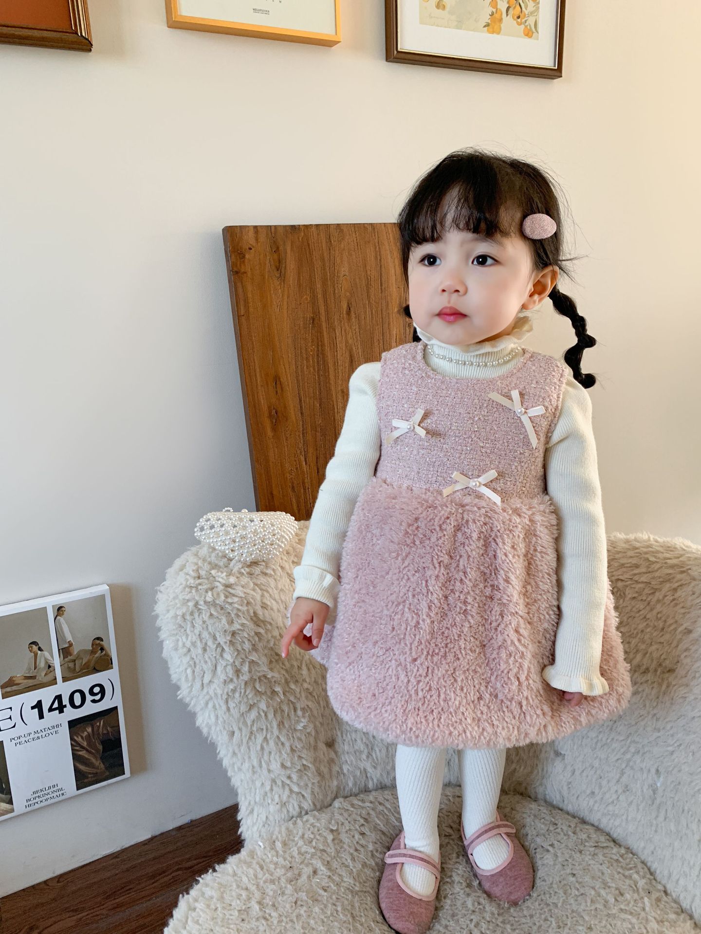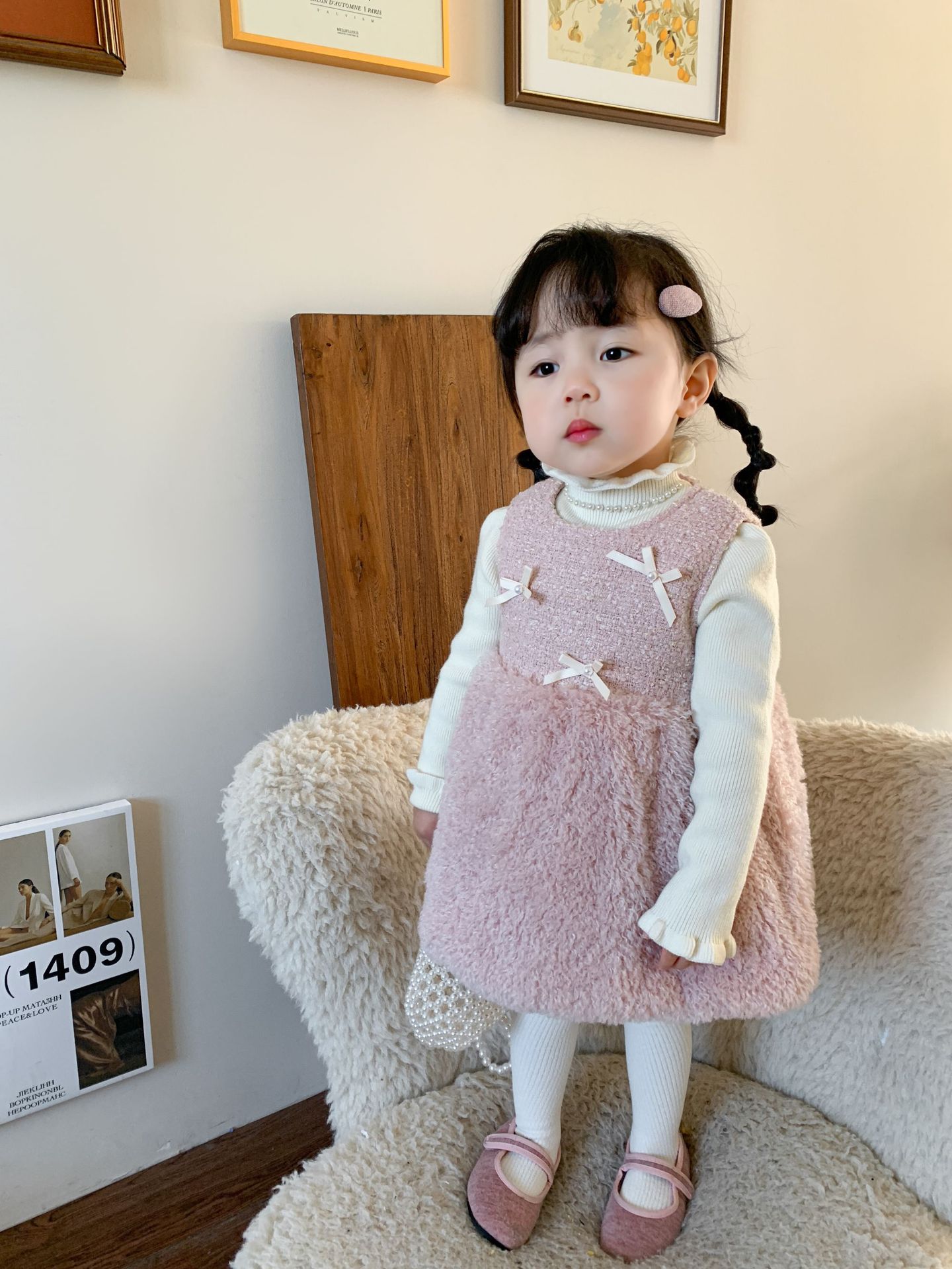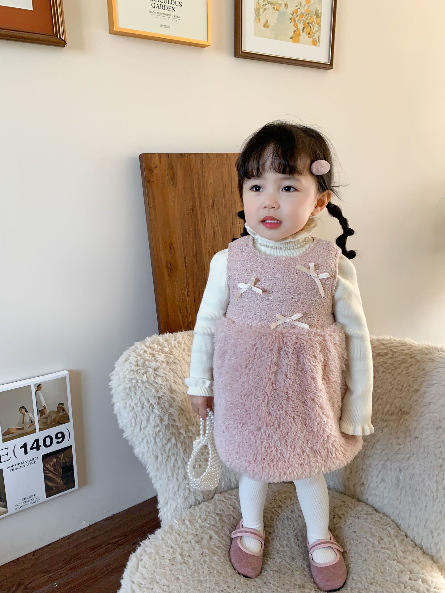 사탕수수 원단 여아 공주 조끼 원피스, 겨울용 누빔 두꺼운 아동 원피스, 작은 프랑스 스타일 아기 원피스스토어 가기