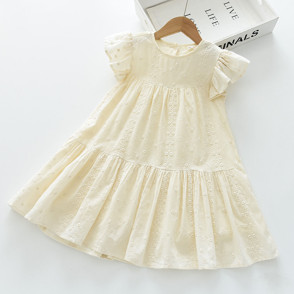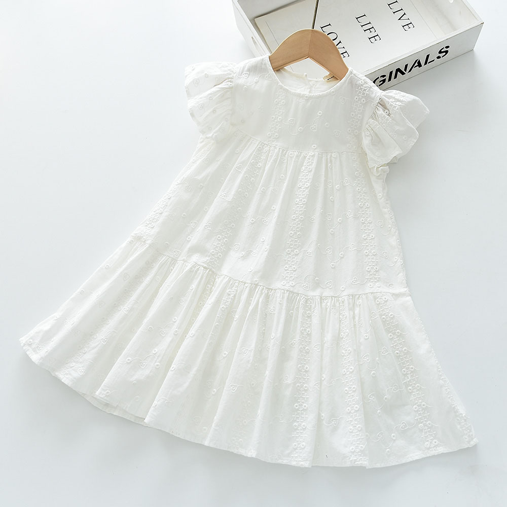 2025夏季新款 花朵绣花 女童圆领纯棉小飞袖背心连衣裙