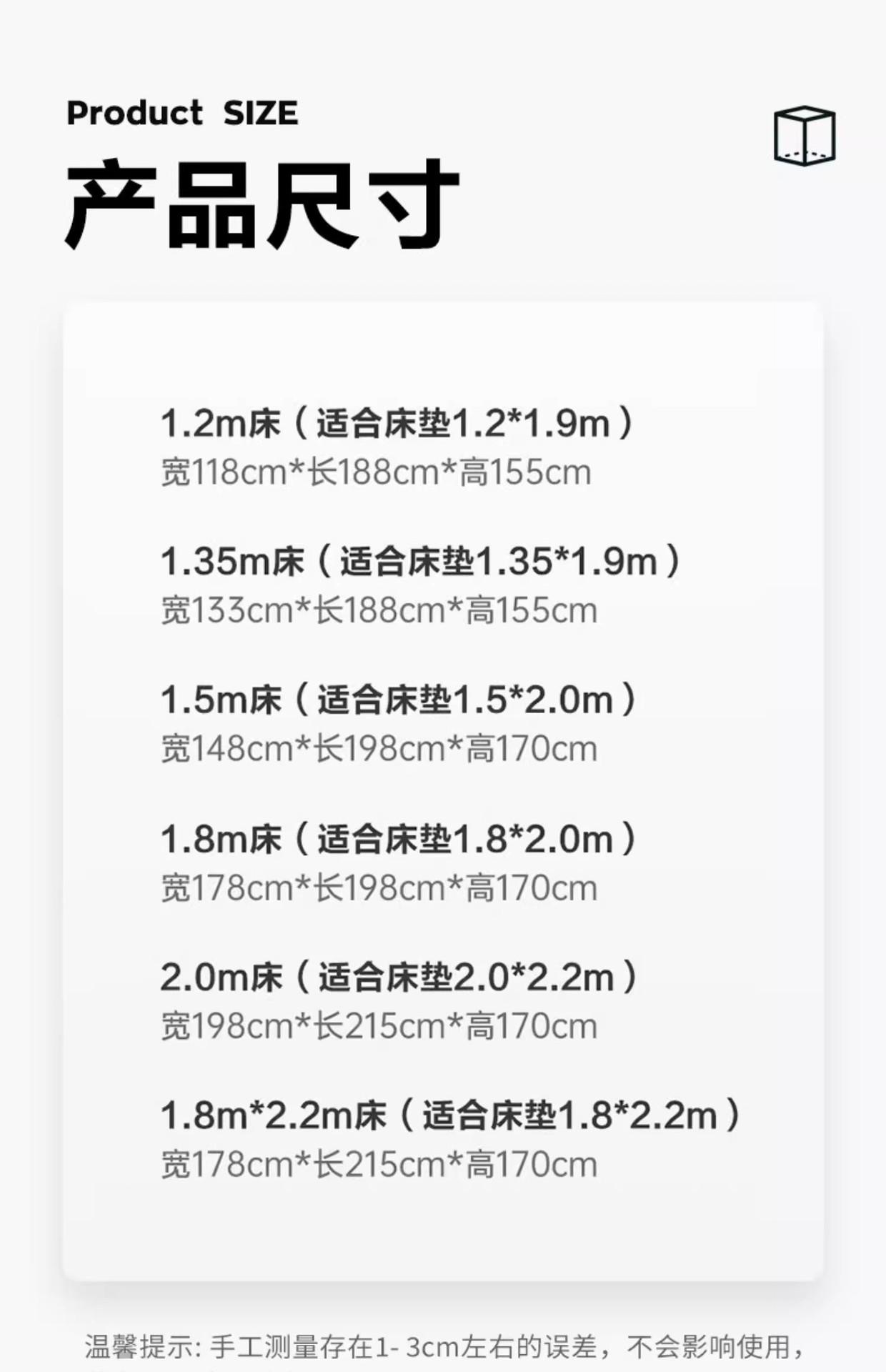 • 1.8m 침대 (매트리스 폭 1.8*길이 2.0m에 적용 가능)