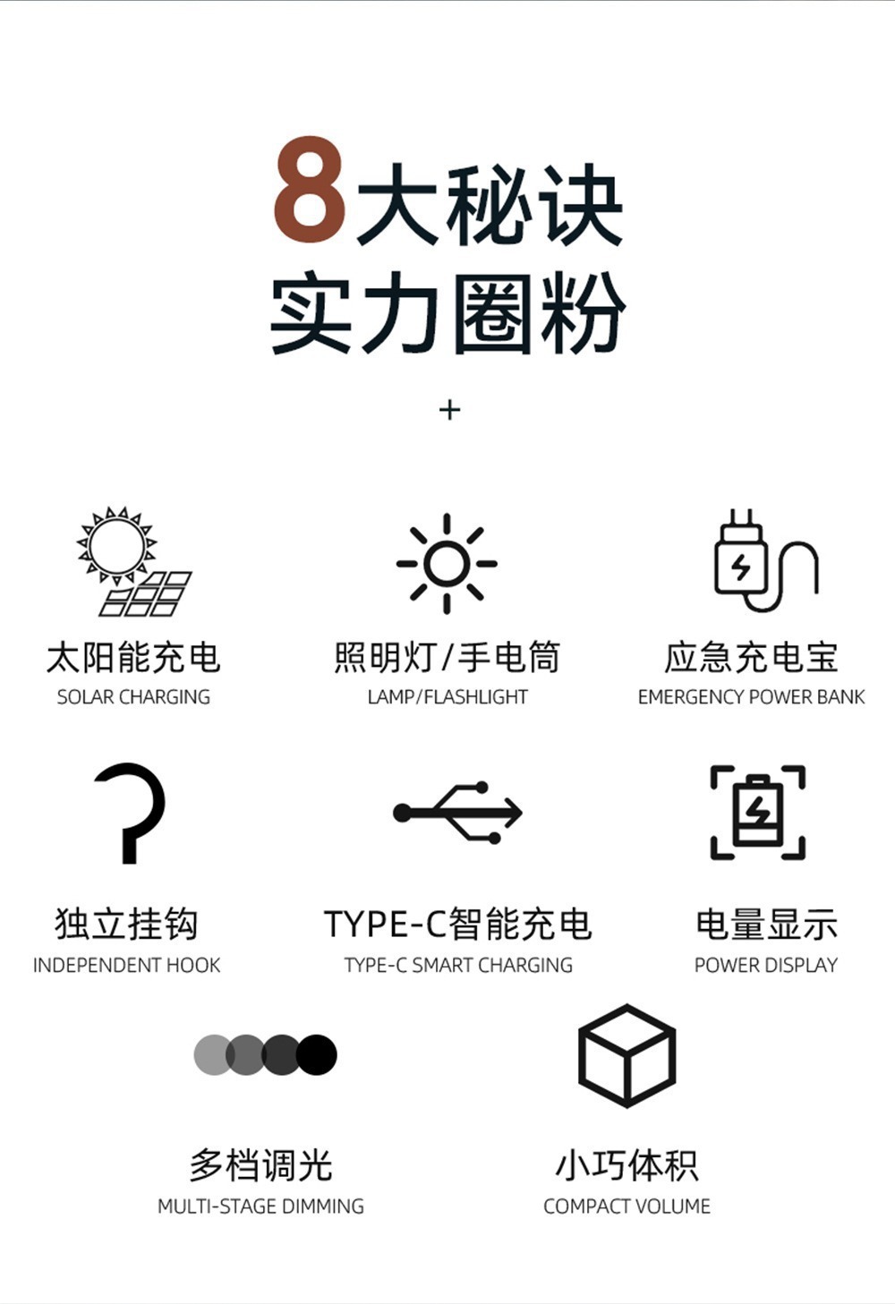 국경 간 새로운 태양 캠핑 조명 캠핑 분위기 빛 LED 다기능 비상 복고풍 충전 야외 교수형 조명
