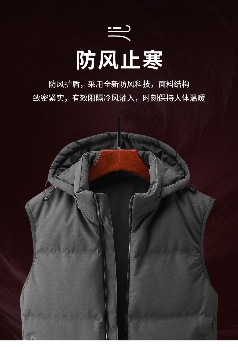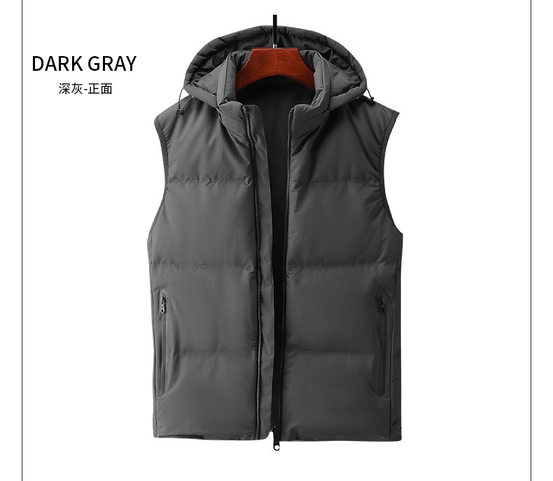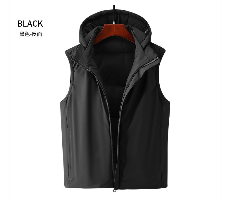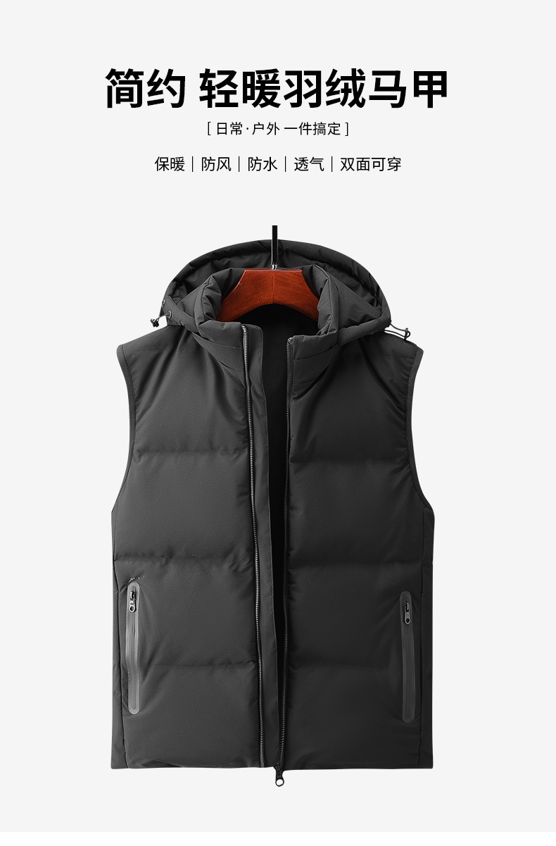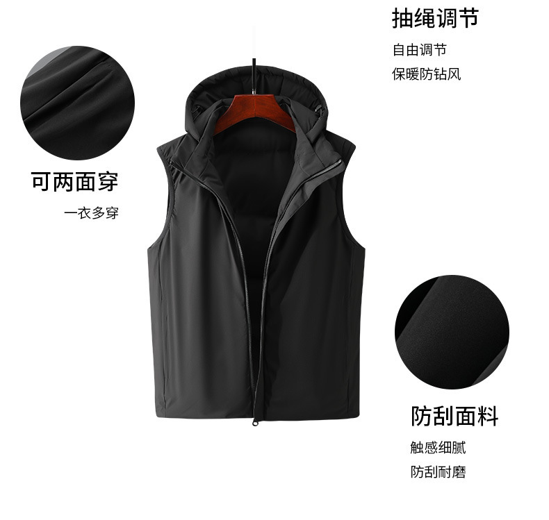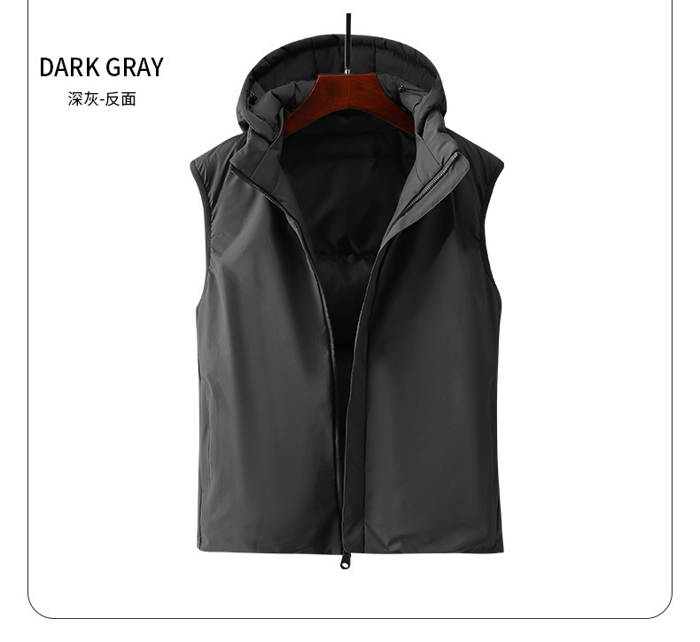 야외 양면 다운 조끼 남자 가을과 겨울 후드 민소매 자켓 따뜻한 방풍 화이트 오리스토어 가기