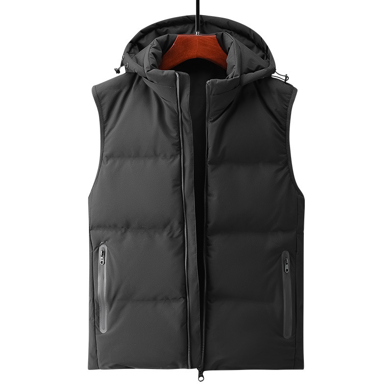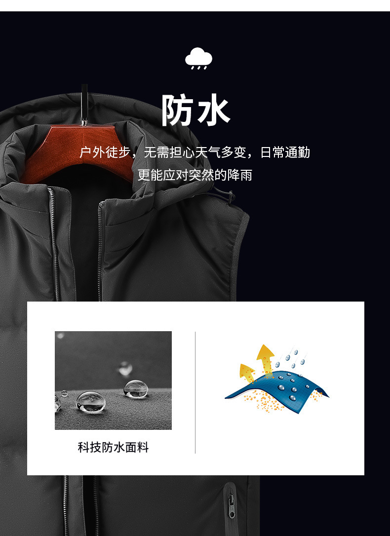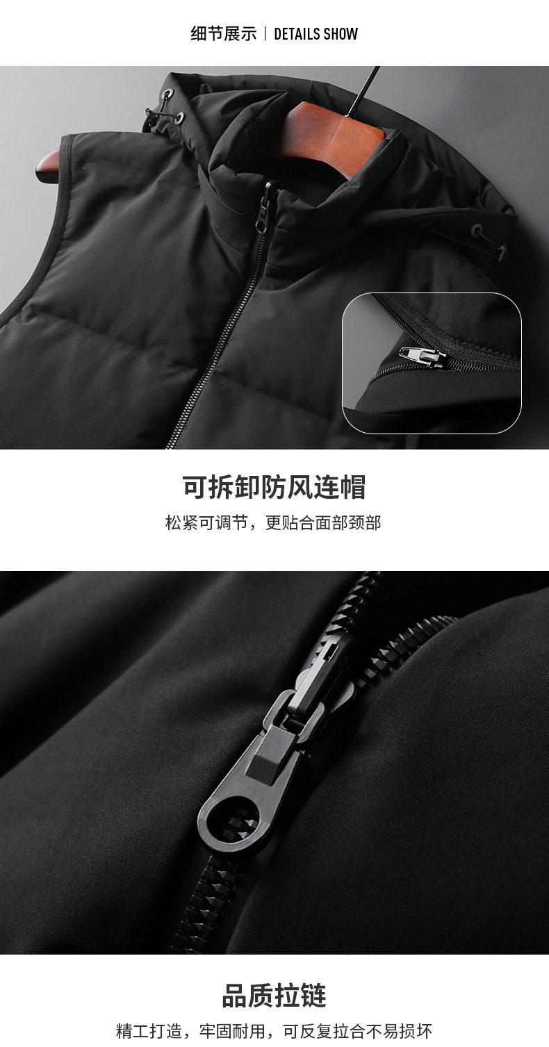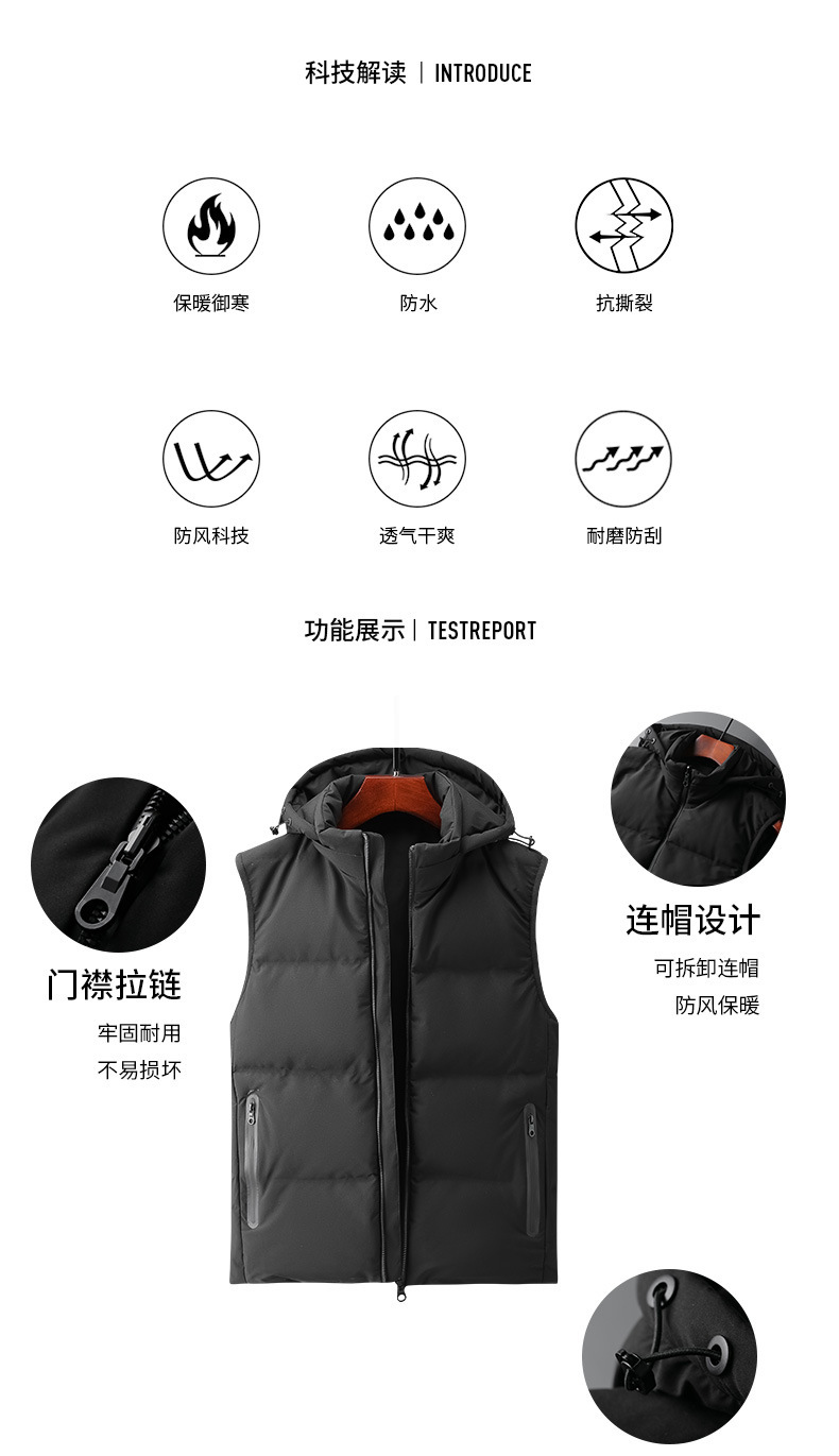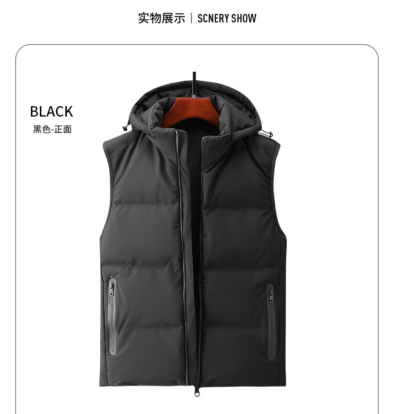 야외 양면 다운 조끼 남자 가을과 겨울 후드 민소매 자켓 따뜻한 방풍 화이트 오리스토어 가기