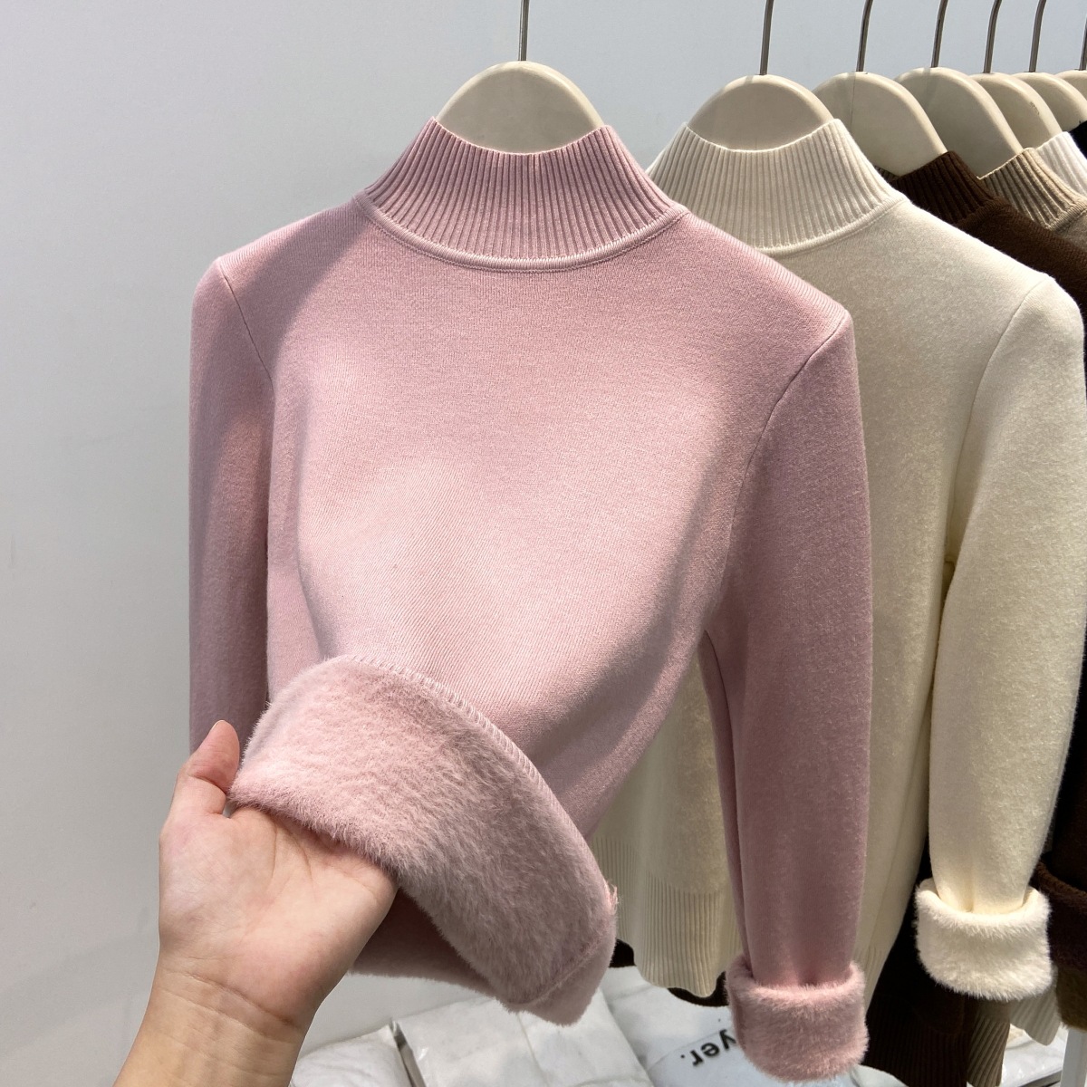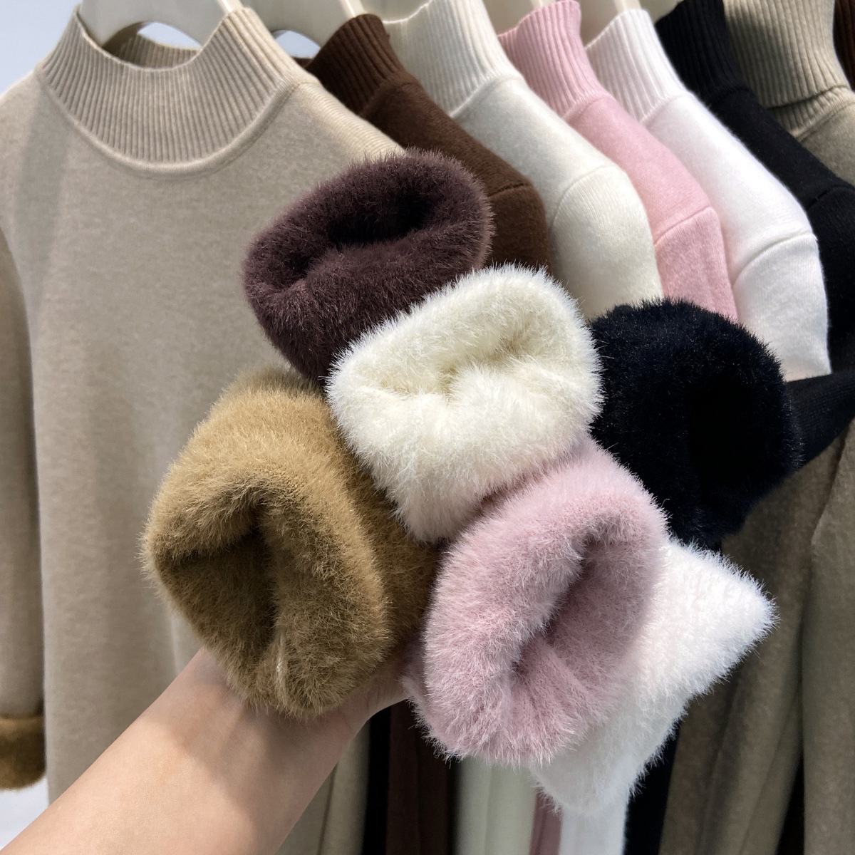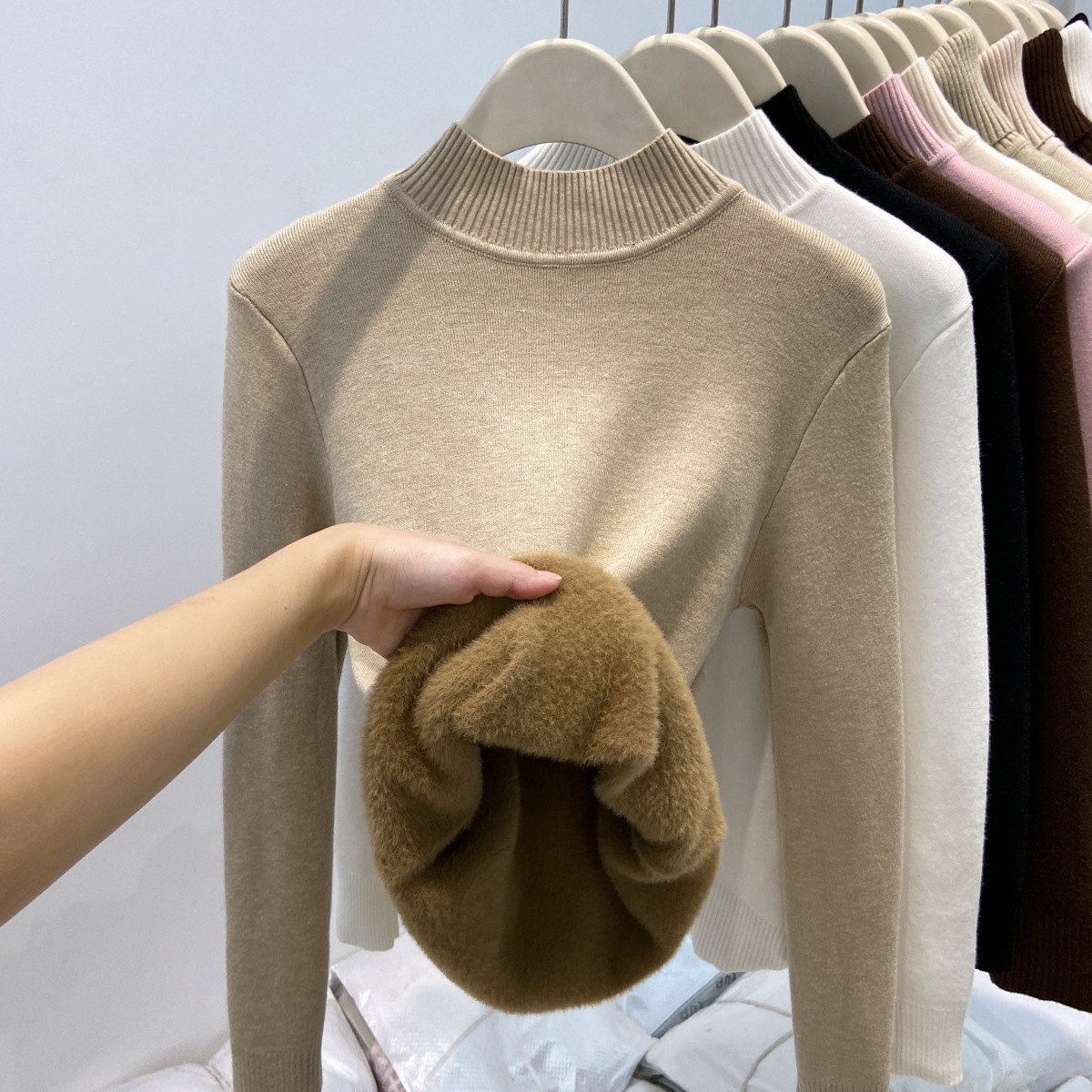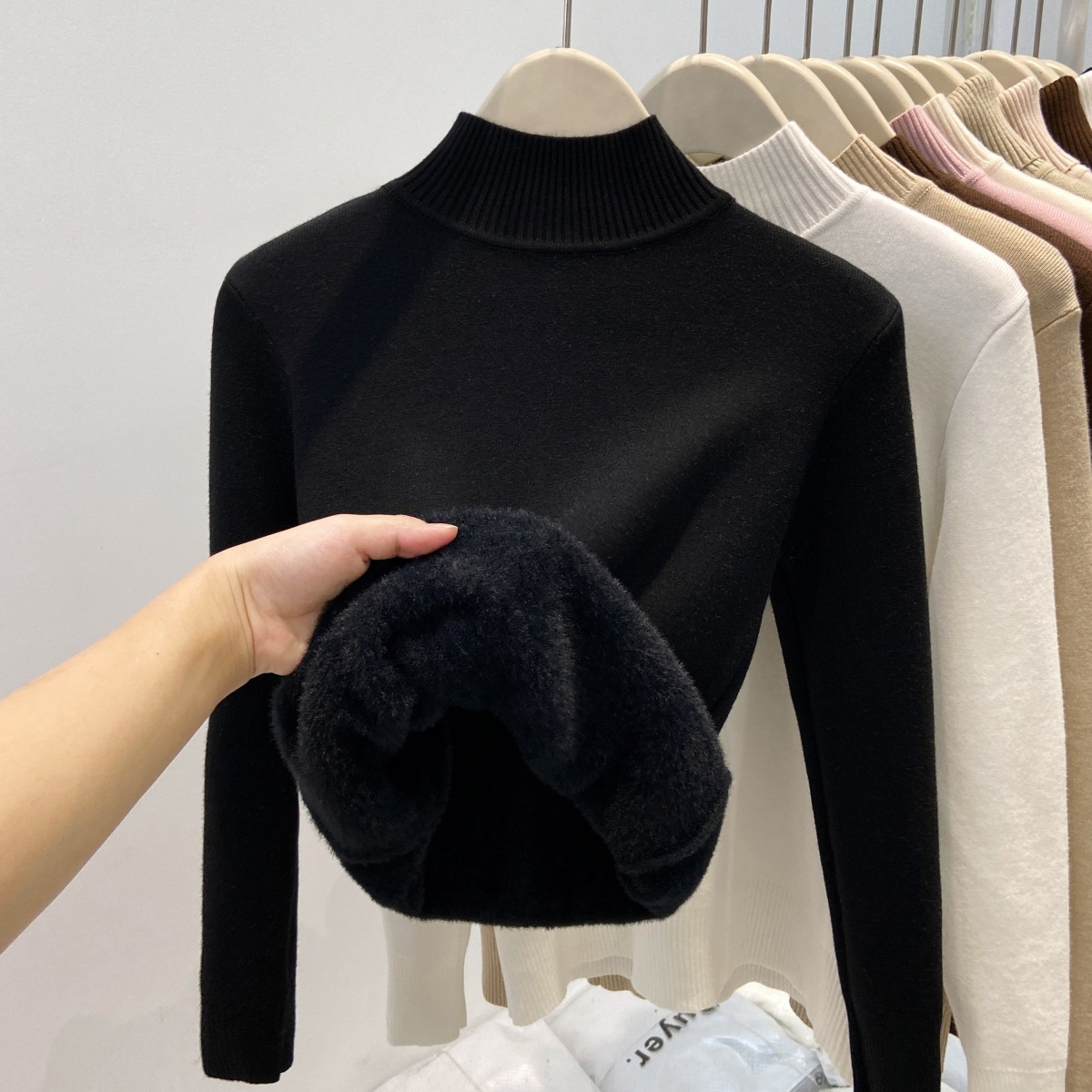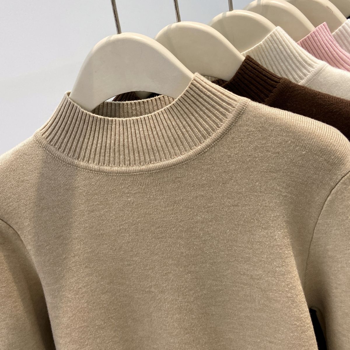 겨울 원피스 벨벳 두꺼운 높은 목 니트베이스 셔츠 여성용 따뜻한 내부 탑 한국식 소프트 왁스 베이직 스웨터