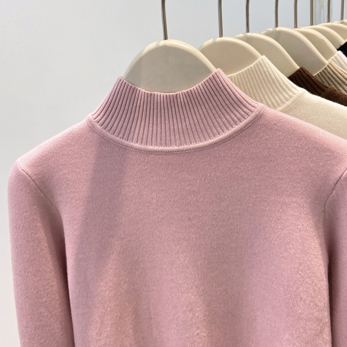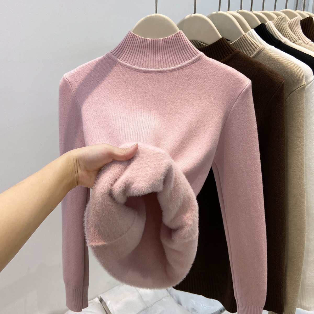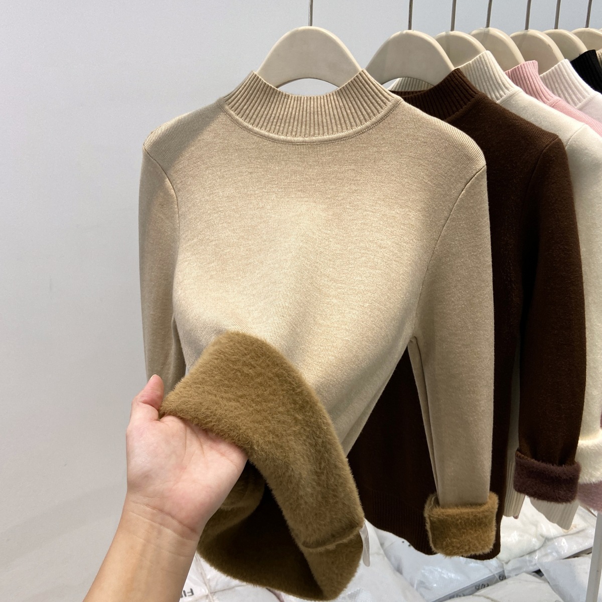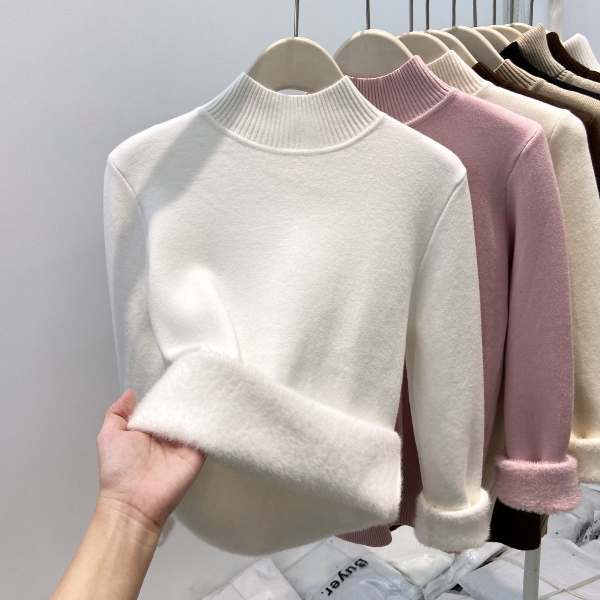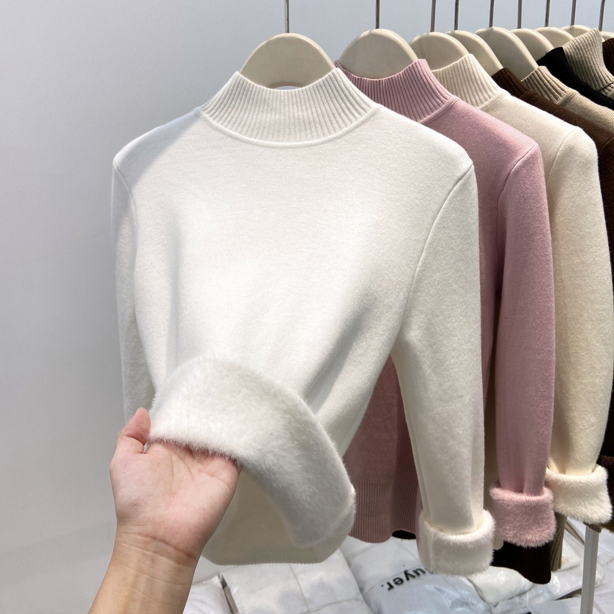 겨울 원피스 벨벳 두꺼운 높은 목 니트베이스 셔츠 여성용 따뜻한 내부 탑 한국식 소프트 왁스 베이직 스웨터