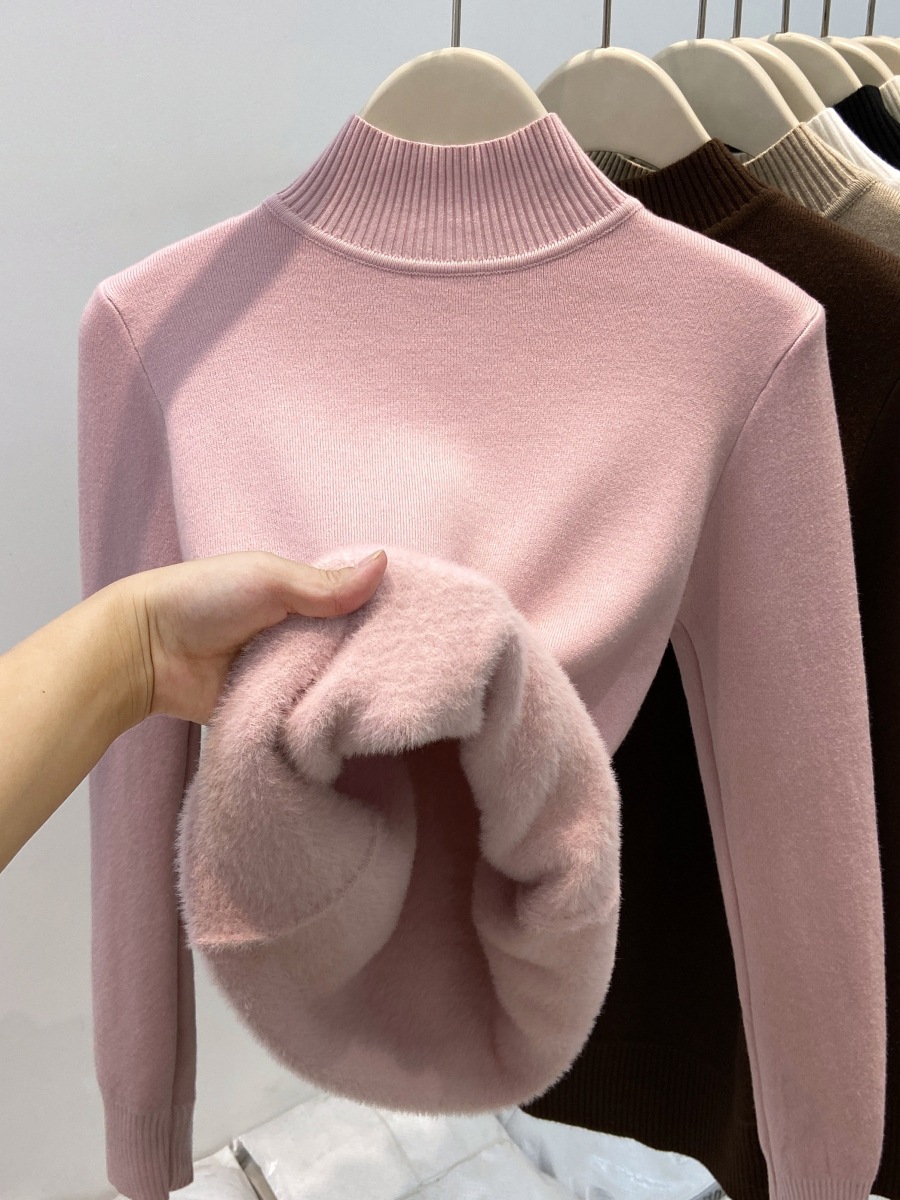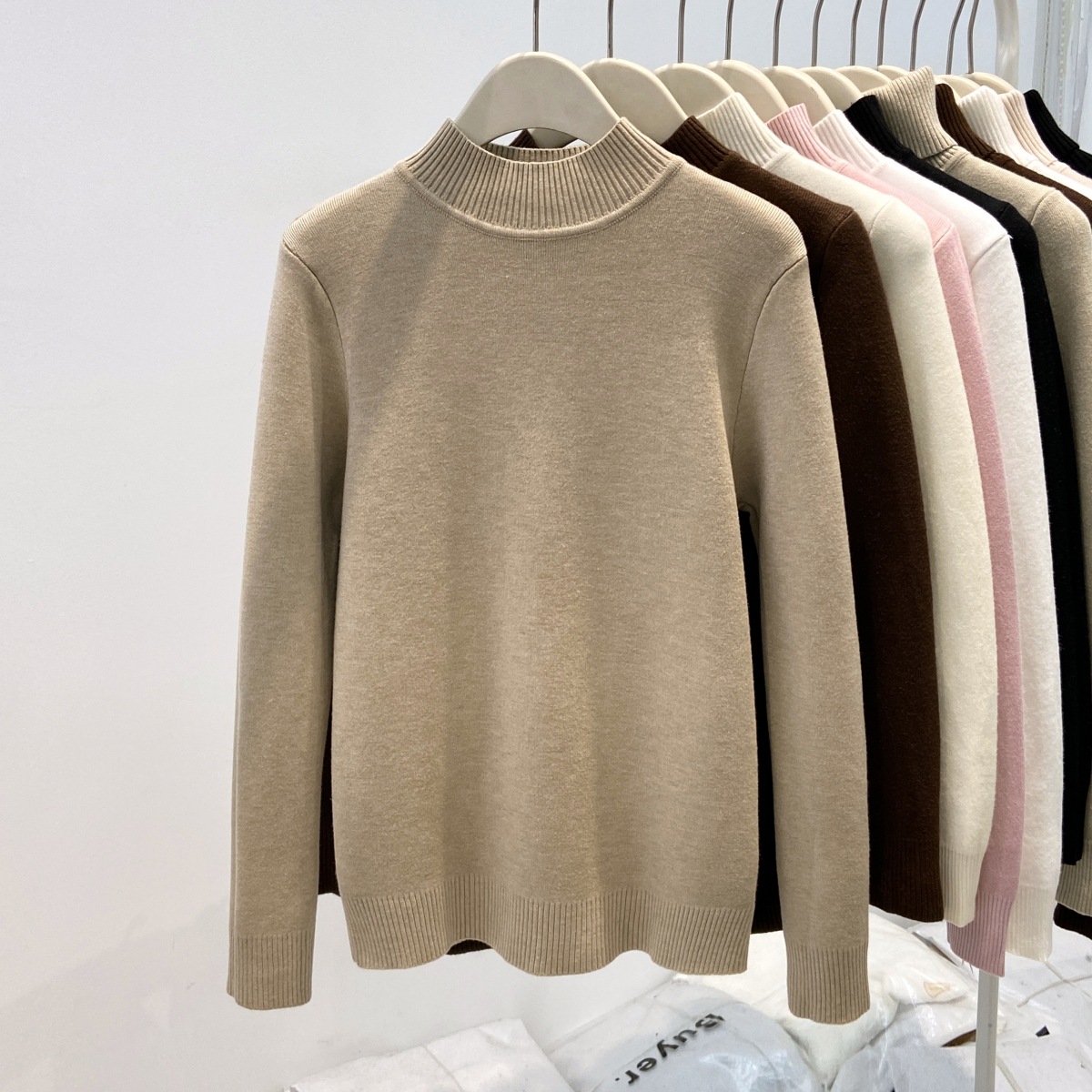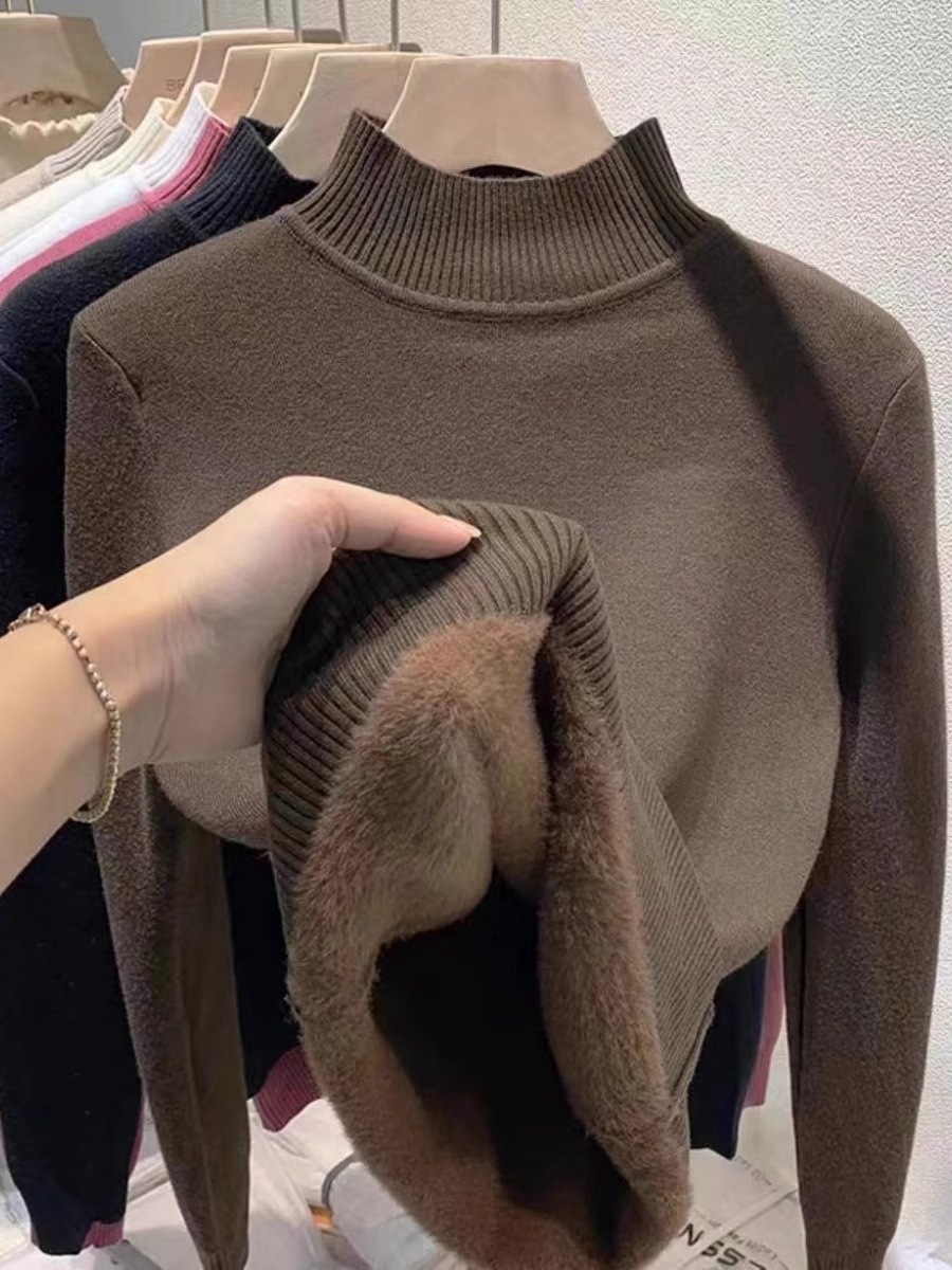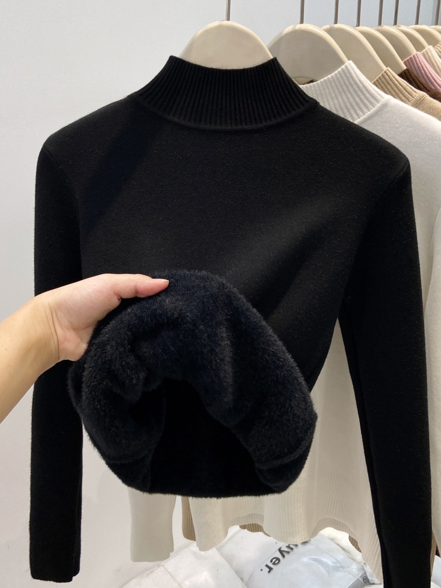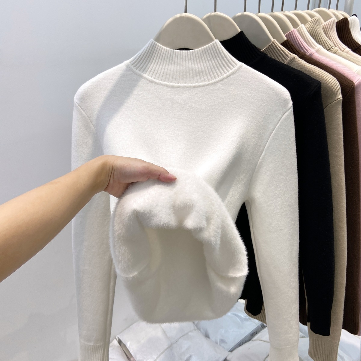 겨울 원피스 벨벳 두꺼운 높은 목 니트베이스 셔츠 여성용 따뜻한 내부 탑 한국식 소프트 왁스 베이직 스웨터