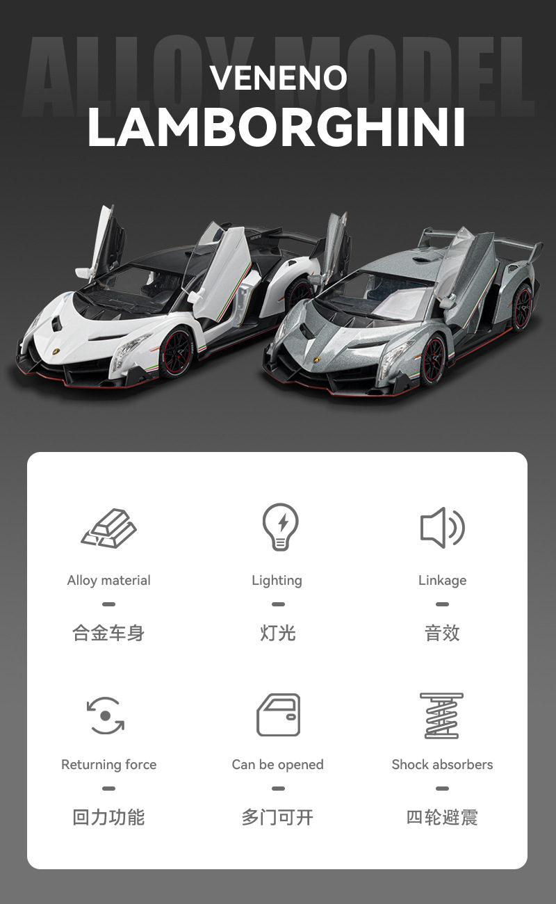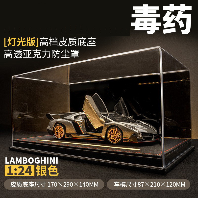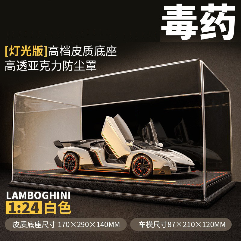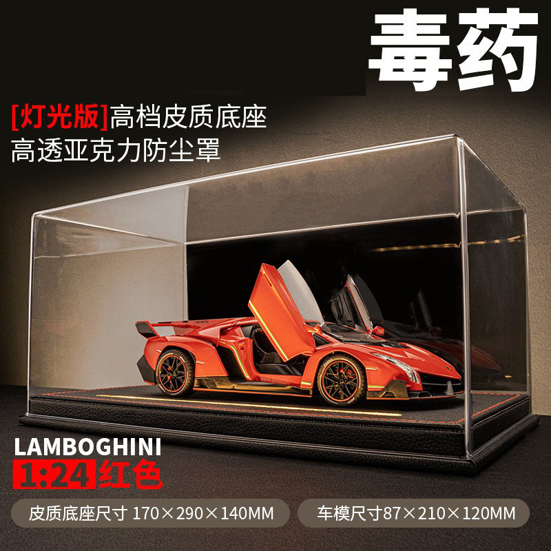 车致合金车模兰博基尼埃文塔多veneno仿真汽车模型一体式高级防尘盒亚克力高透防尘罩带灯送男朋友送老公礼物情人节礼物儿童玩具车生日礼物