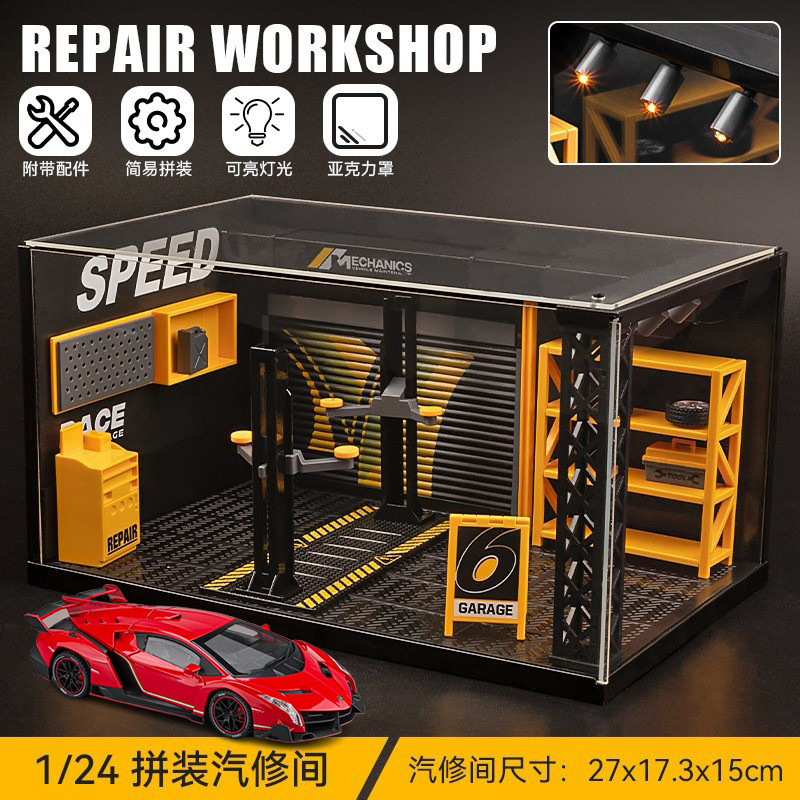 • 람보 포이즌 레드 + 수리 작업장(라이트 및 먼지 커버 포함) 스포츠카