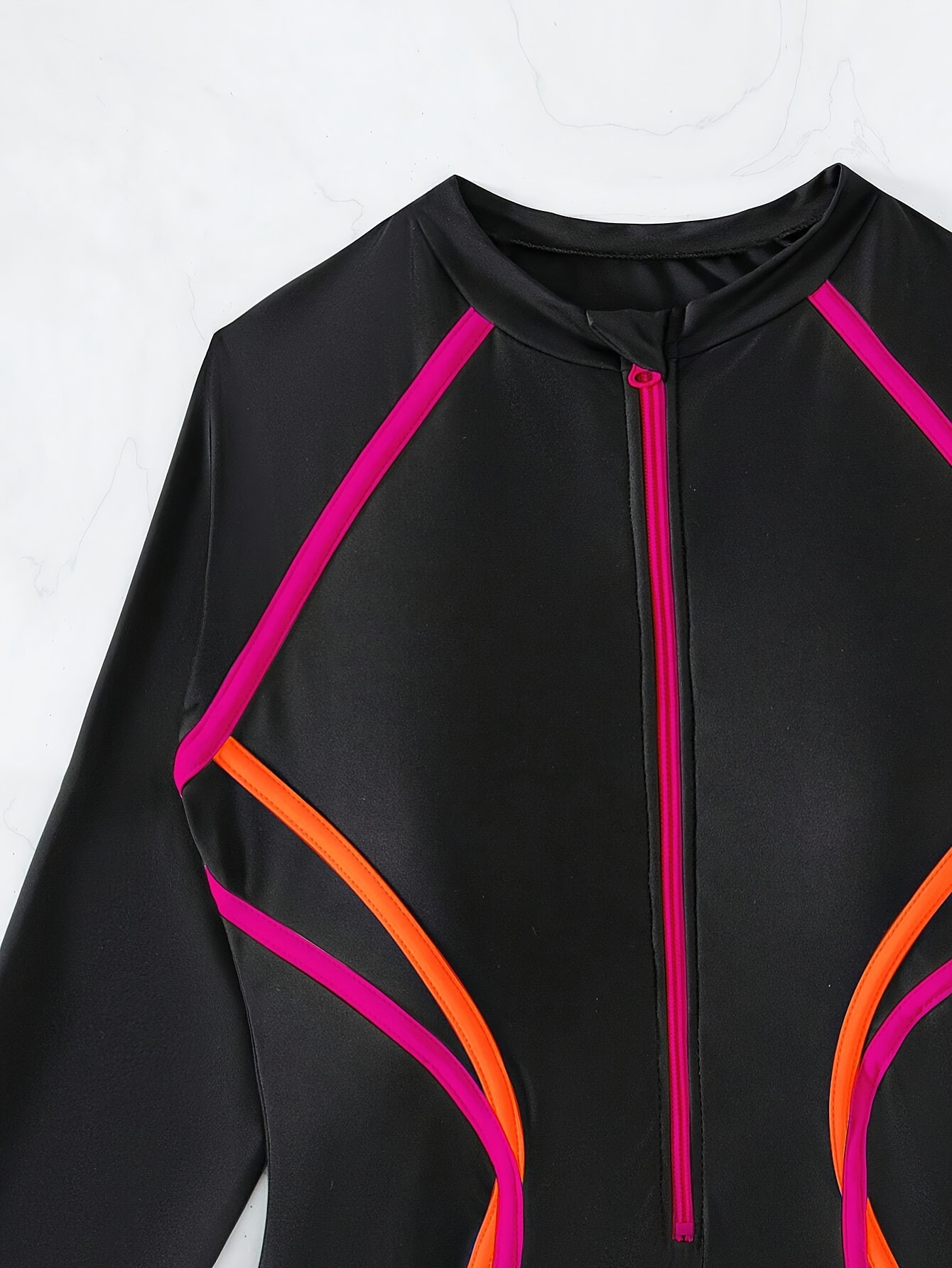 Qianmo 2024 유럽 및 미국 해외 수출용 스노클링 서핑 다이빙 슈트, 여성용 보수적인 블랙 자외선 차단 긴팔 원피스 수영복, 속건성스토어 가기