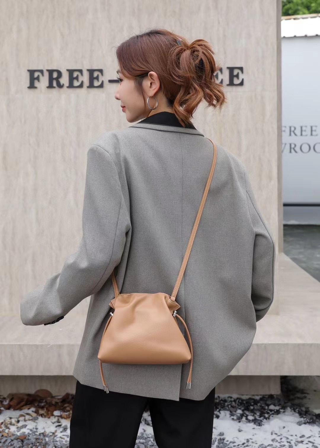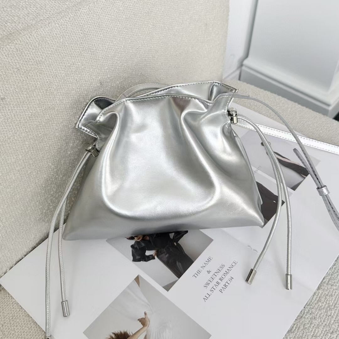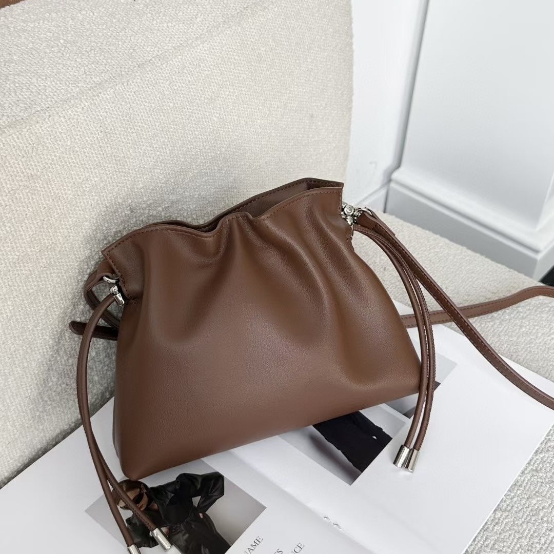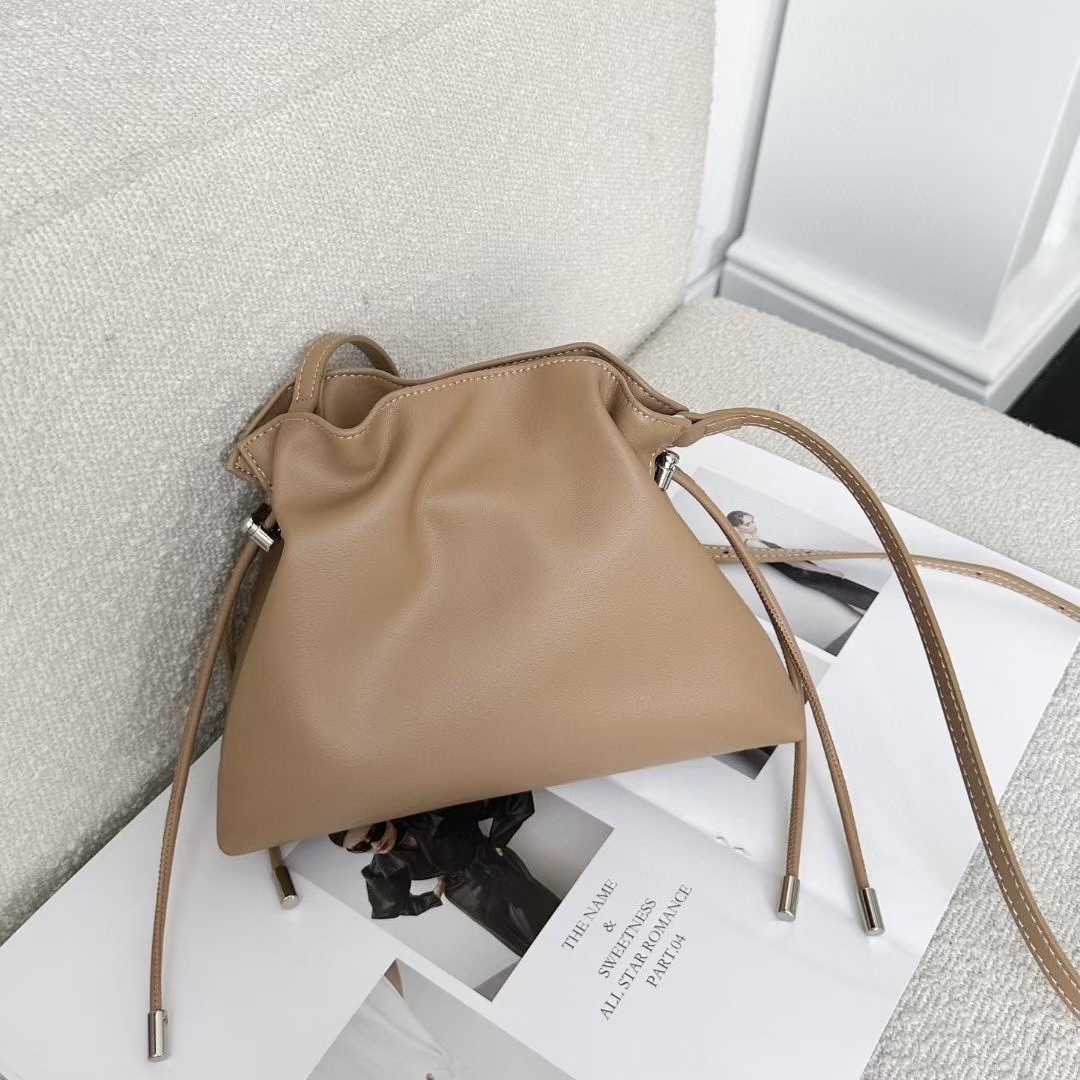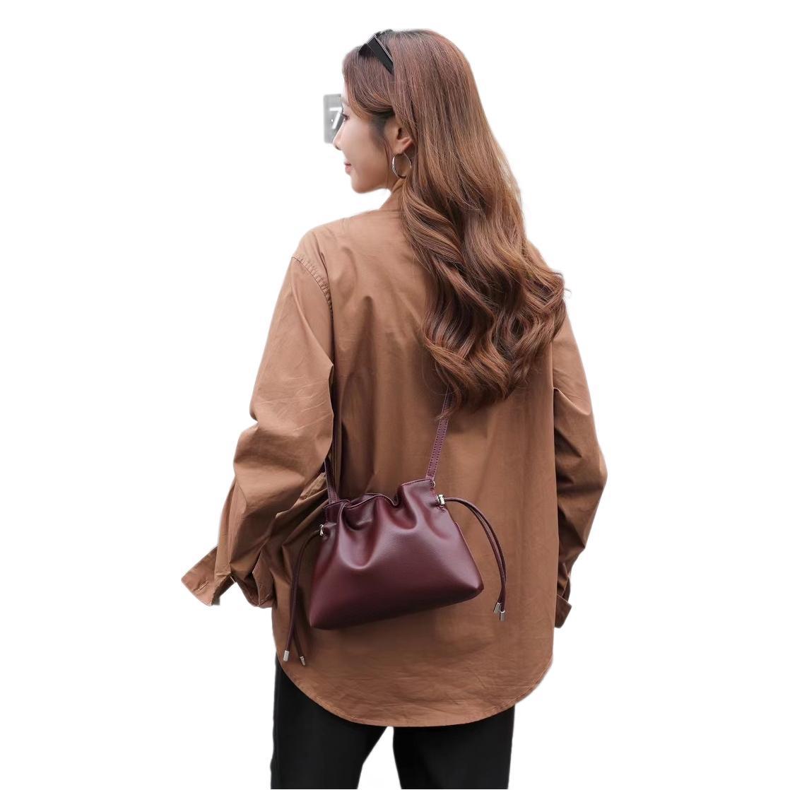 정품 가죽 여성용 가방 핸드백 2024 가을과 겨울 새로운 드로우 스트링 작은 Fu 가방 가죽 주름진 올 매치 숄더 크로스 바디 백